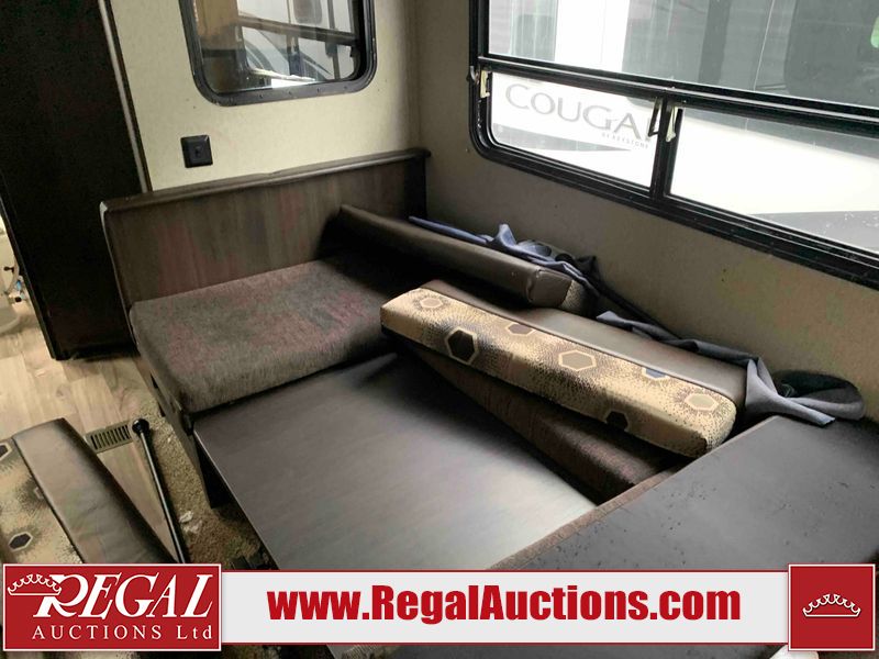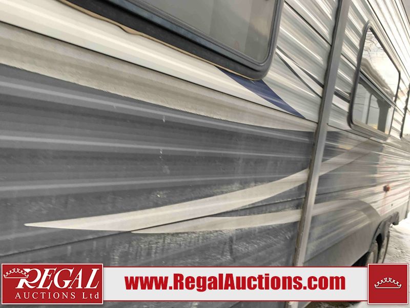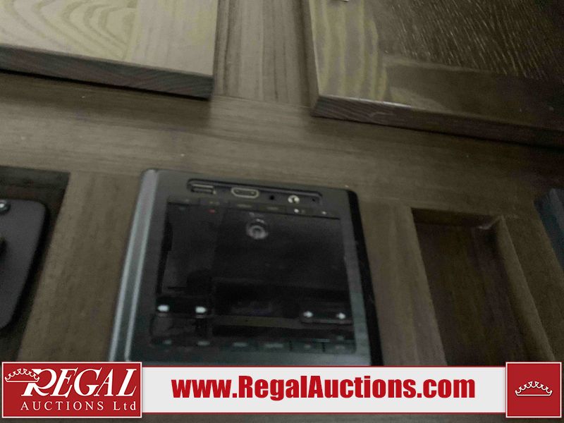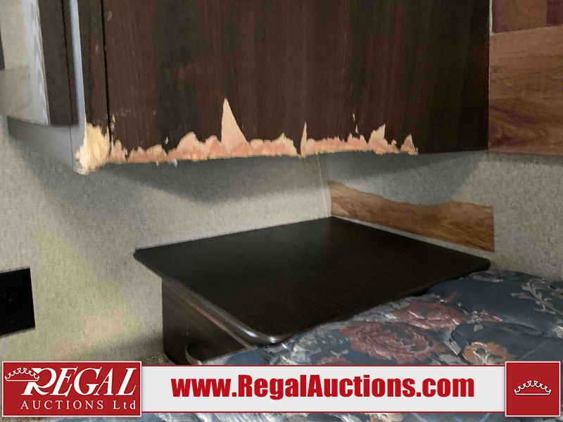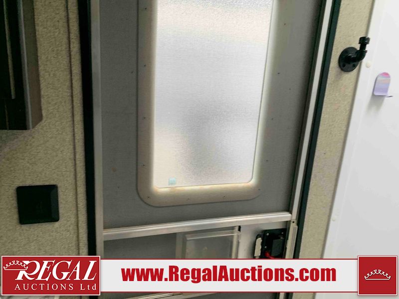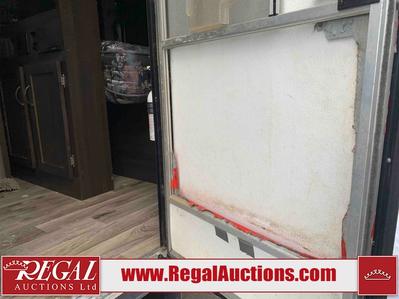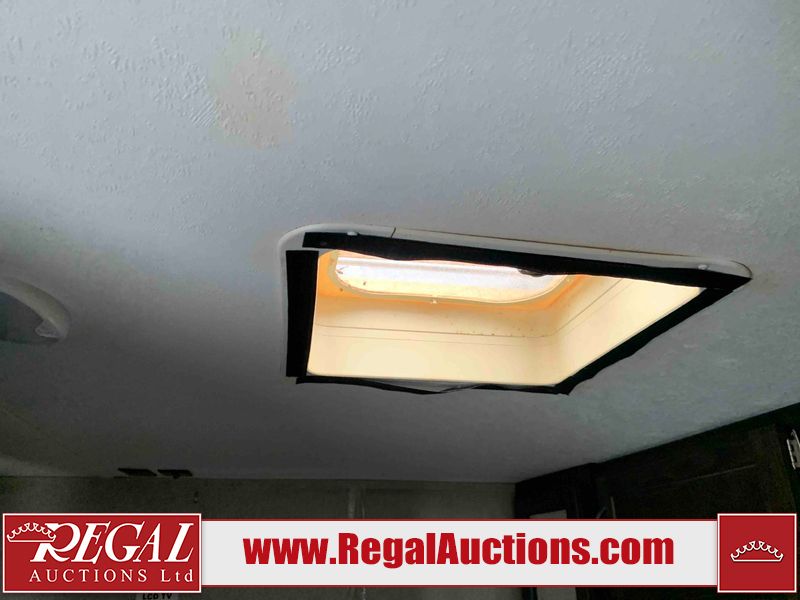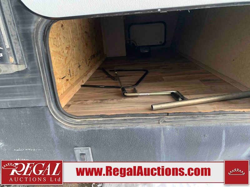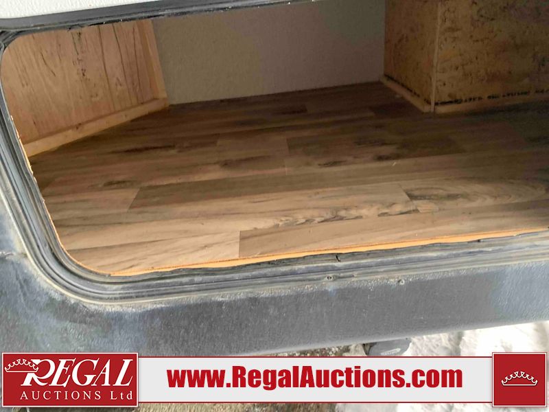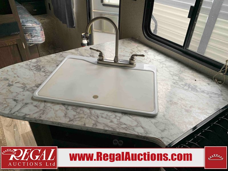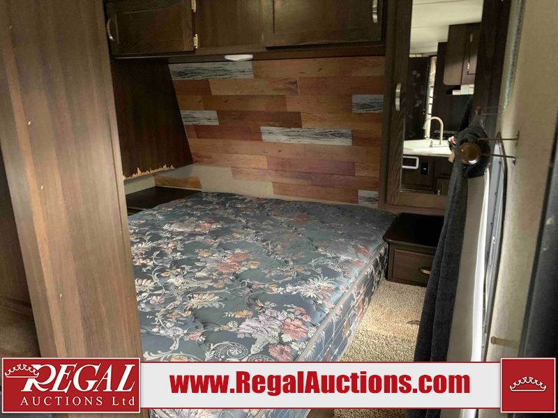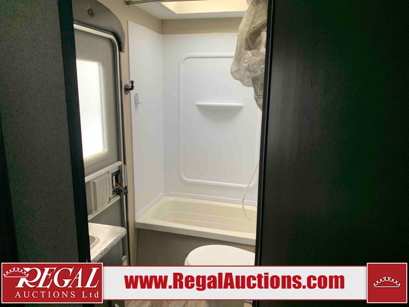 This RV is a 2018 Keystone Springdale 282 model tandem axle bumper pull trailer. It has a double door entry, roof air, and one light out accommodating the living area. The interior is dirty. The screen door is torn. All walls are showing scratches and scuffs. The roof is showing water damage. The master bedroom ceiling fan, and cabinet wall are broken. The right wallpaper trim is peeling. The separating wall has drill holes. The couch is missing. The bunkhouse is missing both mattresses. The bathroom ceiling fan is broken. The exterior walls are made of soft wall aluminum. The front, and left wall are showing hail damage. The left wall is dented. Some decals are peeling. The left fender is separating. The right fender is broken. The right front lower wall is gouged. The battery is dead. The slide out cannot be tested. The battery utility box has been screwed shut. The condition of the battery cannot be determined. This unit is equipped with a battery, and two propane tanks. The tires are mounted to all rims and appear to be in good enough condition for use. This unit is equipped with a microwave, three burner stove top, oven, refrigerator, and a stereo system. The layout consists of a master bedroom in the front, kitchenette/dinette in the center, and a bunkhouse/bathroom in the rear.