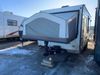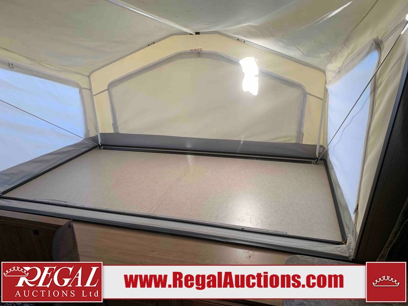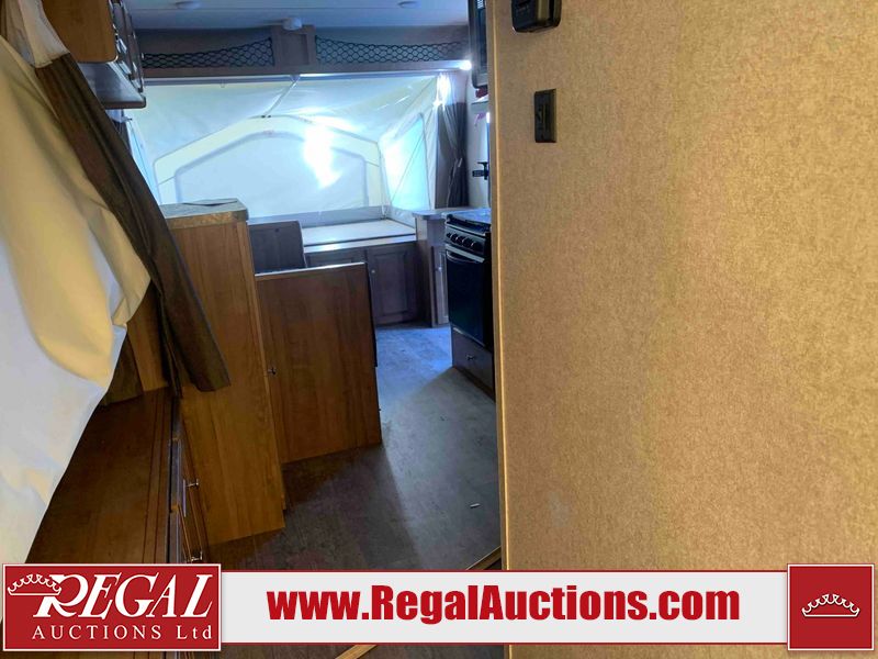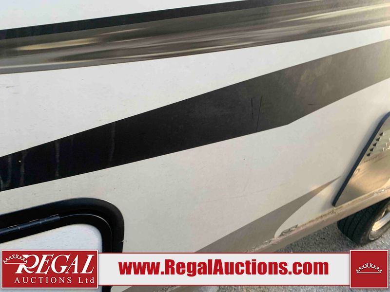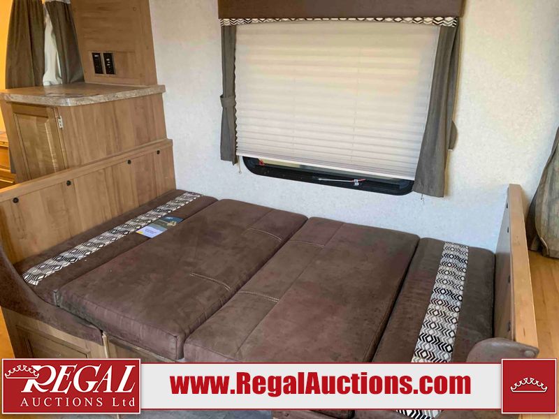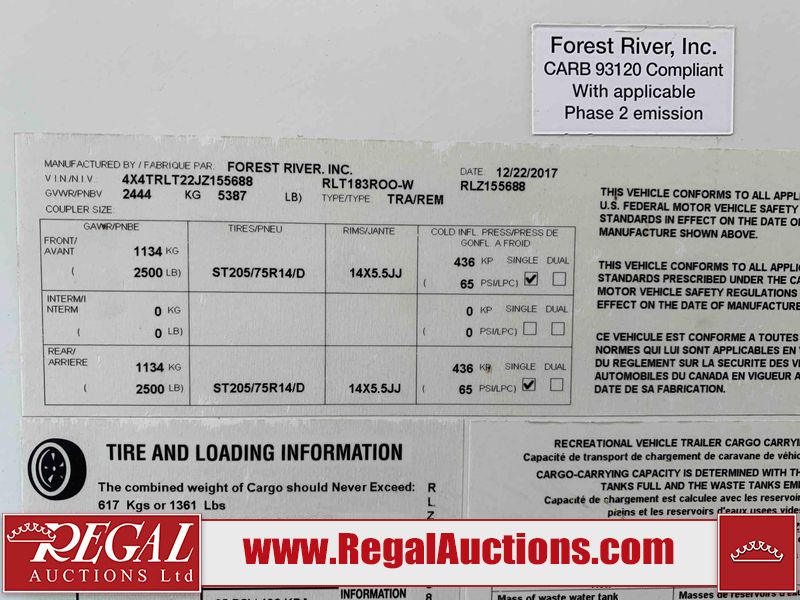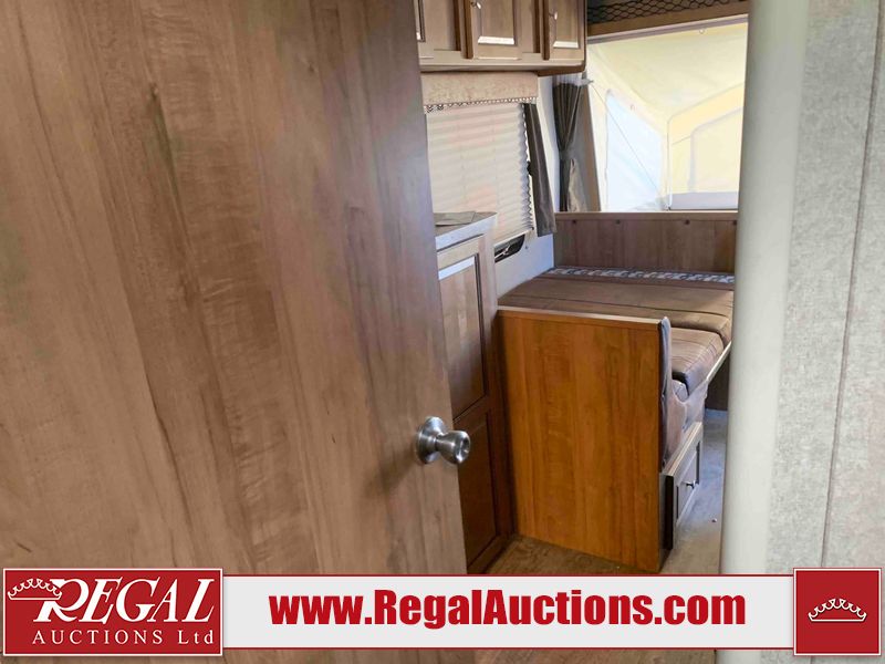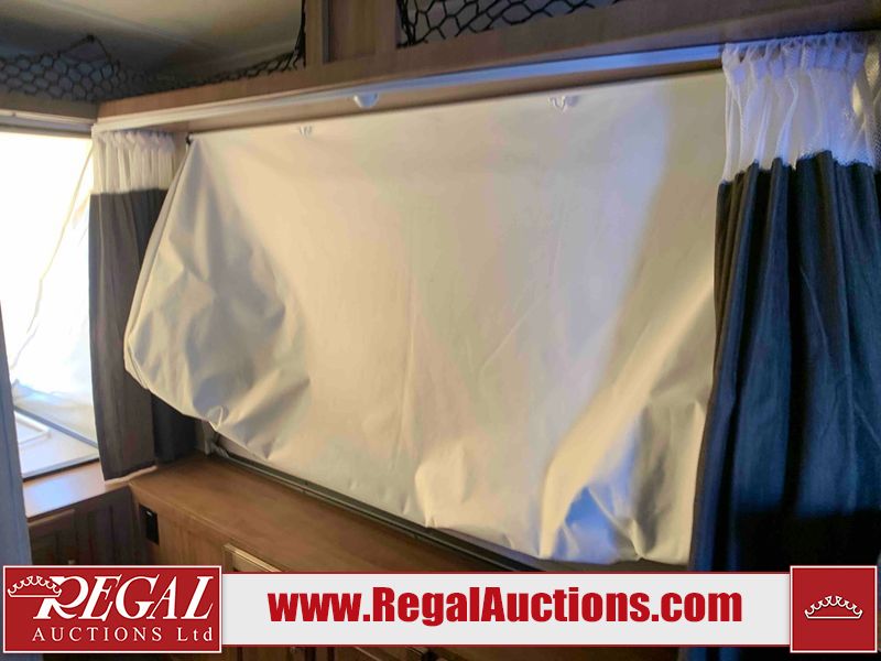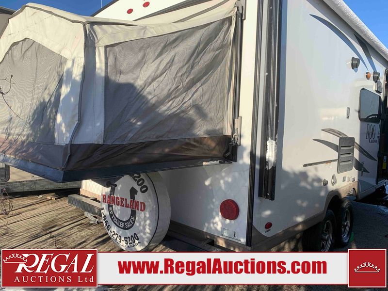 RV is a 2018 Rockwood 183 modelbumper bumper pole travel trailer. This unit has a single door entry, roof air, and three pop out tent slides. The interior is dirty. Some walls are showing scratches and scuffs. There is a corner trim that has been broken off. The exterior bathroom wall is separating. One of the tiedown pivots for the pop out is missing. All three mattresses are missing. Exterior walls are made of hard wall fiberglass. Both the front lower plastics are cracked and broken. All walls are showing scratches and scuffs. Some decals are peeling. The left wall weatherstripping has been poorly resealed. Both fenders are cracked. The entry door trim is gouged. This unit is missing both propane tanks, and a battery. The tires are mounted to steel rims and appear to be in good enough condition for you. This unit is equipped with a three burner stove top, oven, microwave, refrigerator, and a stereo system. The layout consists of a pop out mattress in the front, dinette/kitchenette in the center, and a two-piece pop out/bathroom in the rear.