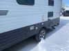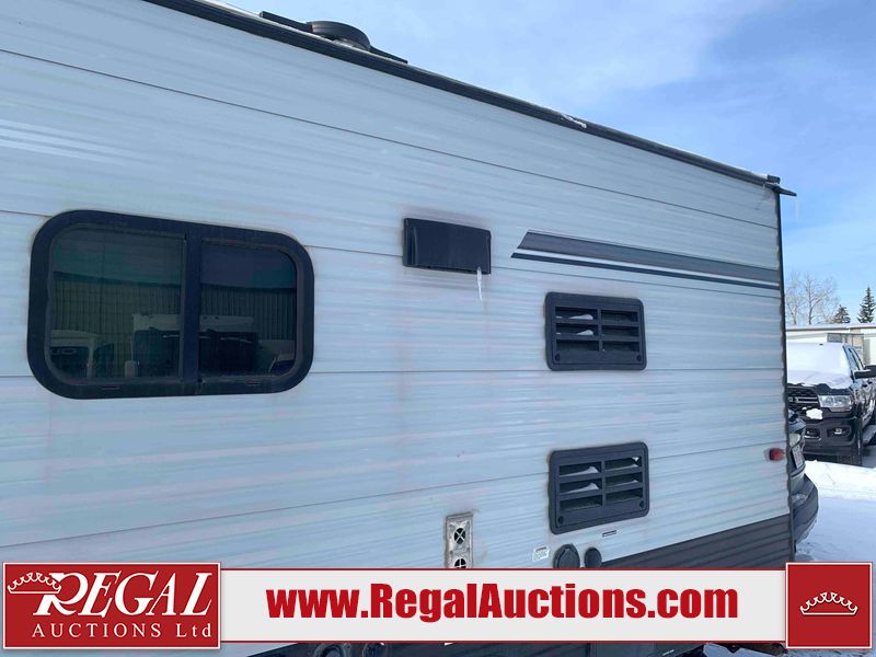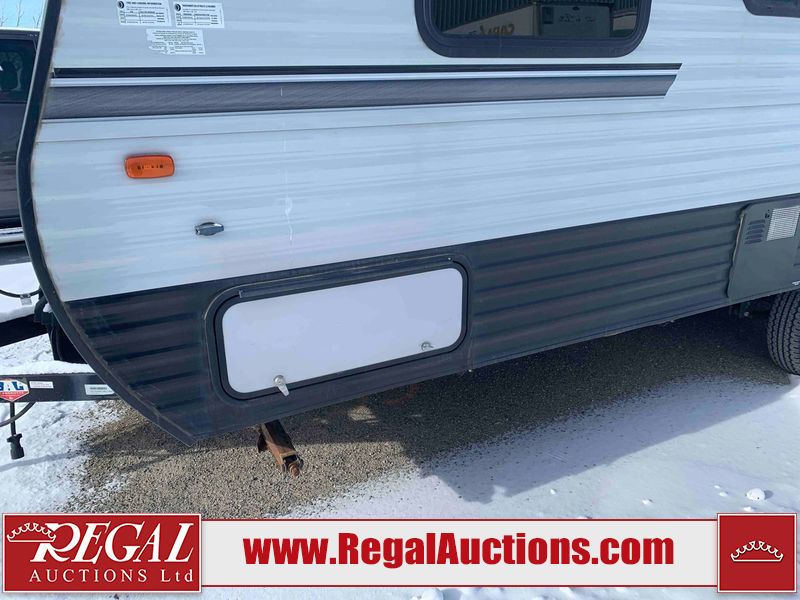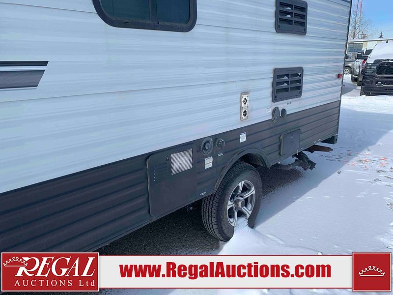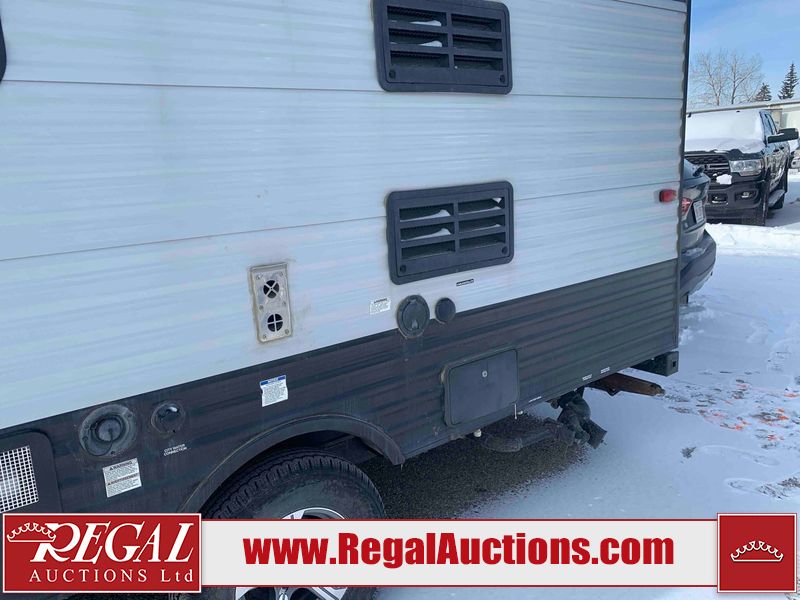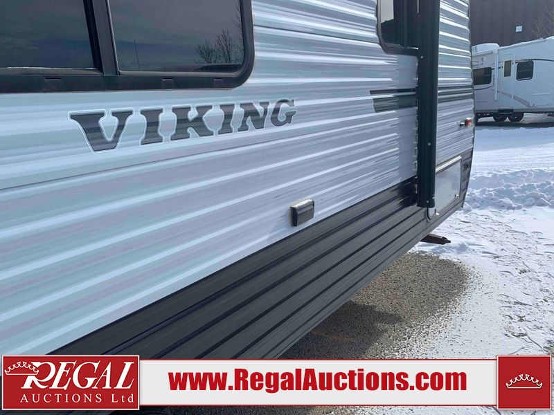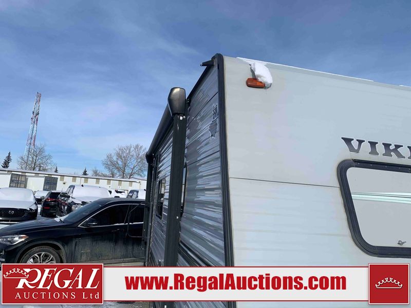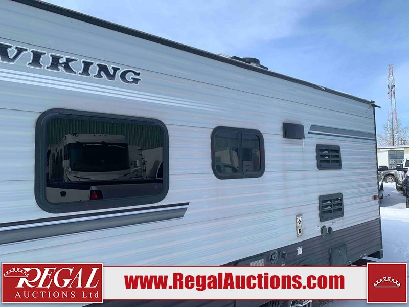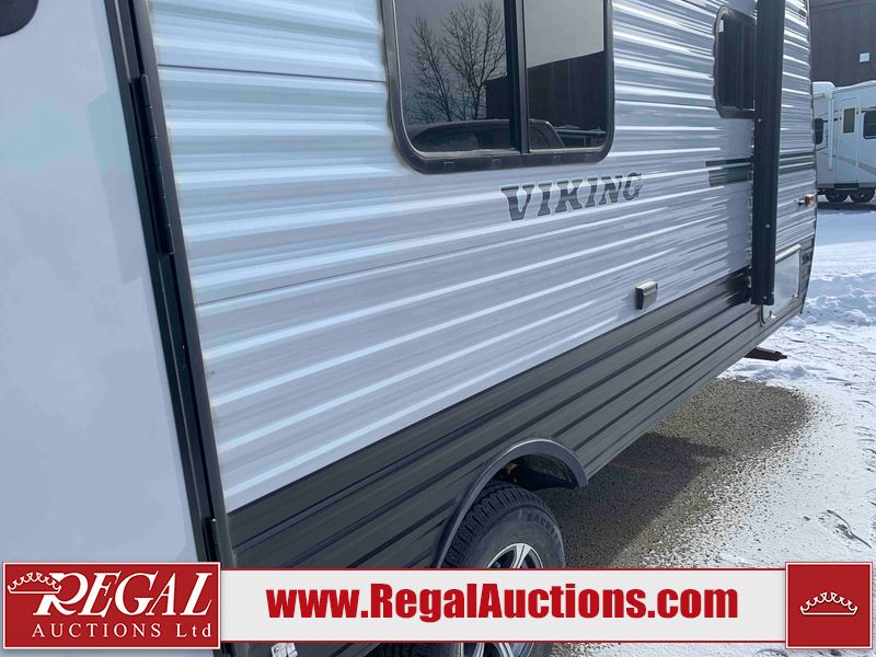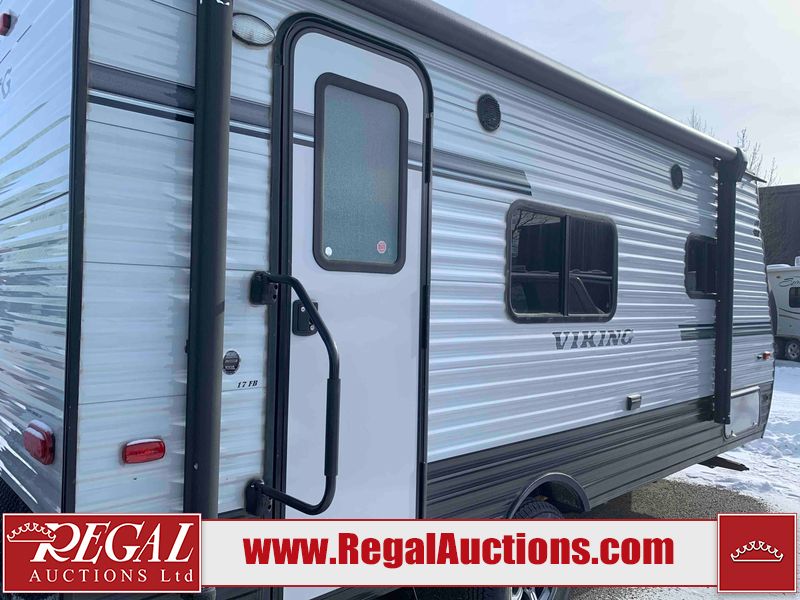 This RV is a 2019 Forest River Viking 17FB model bumper pull trailer. It has a single door entry and roof air. The interior is dirty, there is pet hair around the unit. Some walls are showing chips and scratches. All sky window plastic trims are cracked. The exterior walls are made out of soft wall aluminum. All walls are showing signs of minor dents, minor chips and minor scratches. The unit comes with a battery and a propane tank. The tires are mounted to alloy wheels and appear to be in good enough condition to use. The unit is equipped with a two burner stove top, refrigerator, microwave, and a stereo system. The layout consist of the master bedroom at the front, kitchen kitchenette/dinette at the centre and bathroom at the rear. ??