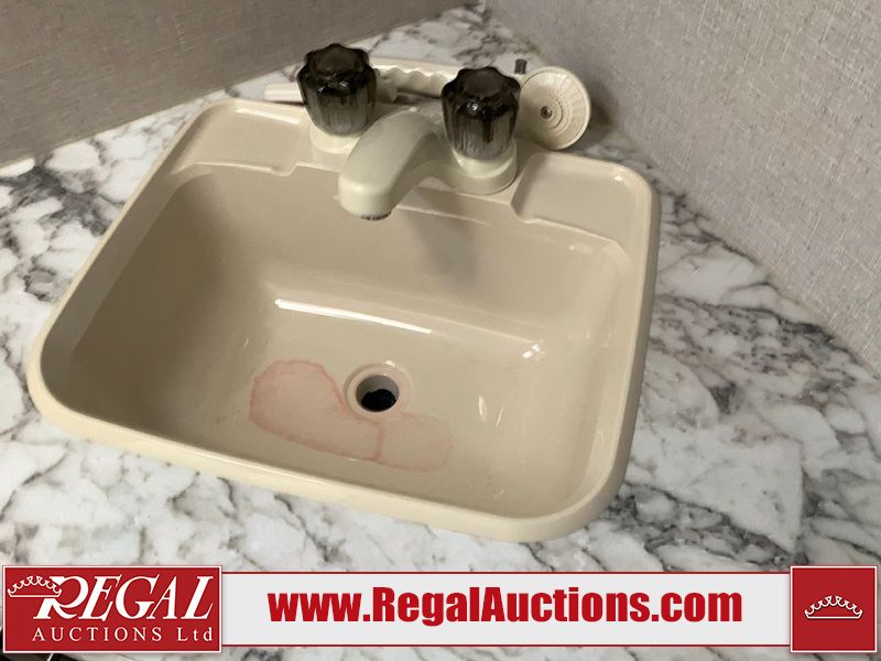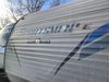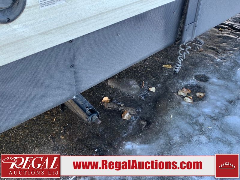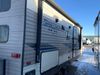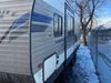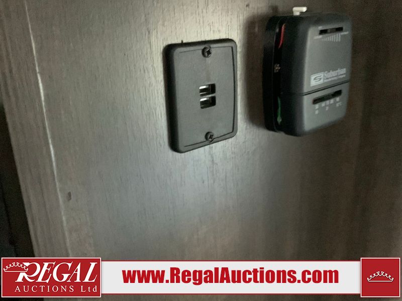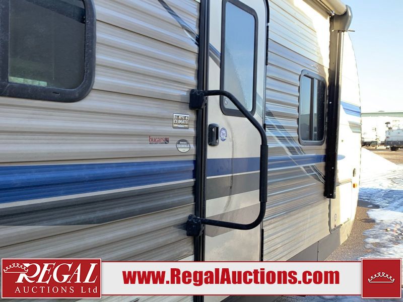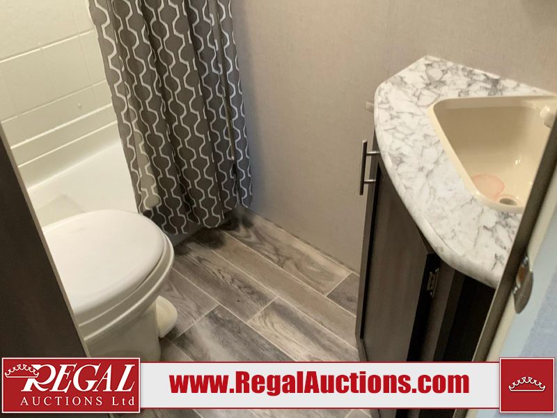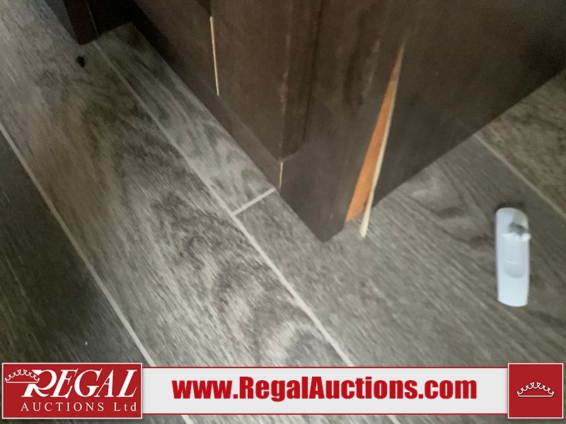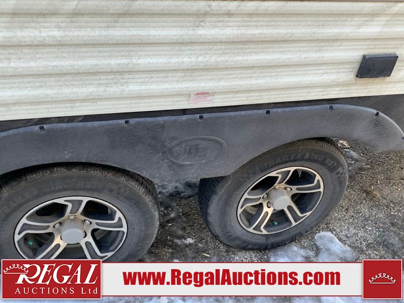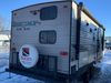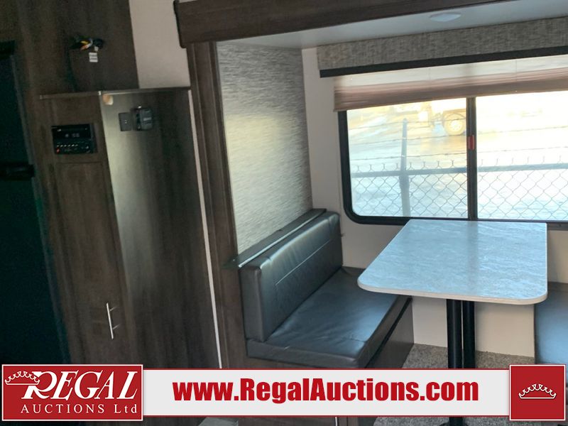 This RV is a 2019 KZ INC. Sportsman LE series 231BHKLE model bumper pull travel trailer. This unit has a single entry door, roof air, and a single slide out accommodating the dinette. The interior is dirty. Some of the wooden trim edges are curling and healing. The wallpaper is peeling. There are scratches and scuffs on the cabinets. The exterior walls are made of soft wall aluminum. The plastic side fenders have cracks. The lower metal trim panel has dents. The sidewall have light scuffs. The front wall corner trim is peeling. This unit is equipped with two propane tanks and a single battery. Alloy rims are mounted, the tires appear to be in good enough condition for use. This unit is equipped with a stereo system, three burner gas stove top, oven, microwave and a refrigerator. This unit also has exterior speakers, and a foldable rear cargo rack. The layout consist of a master bed at the front, a kitchen/dinette at the center and a bunkhouse/washroom at the rear.