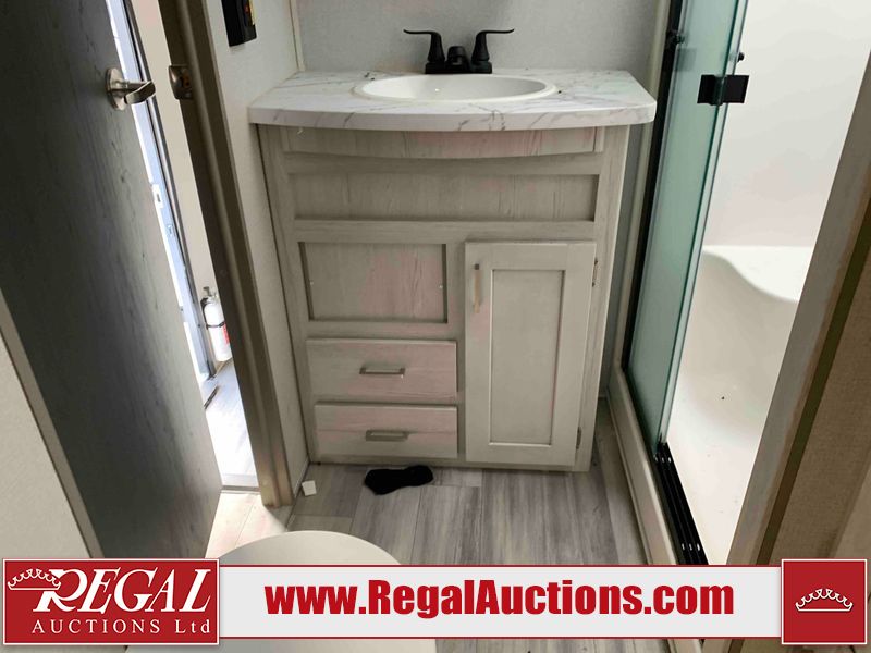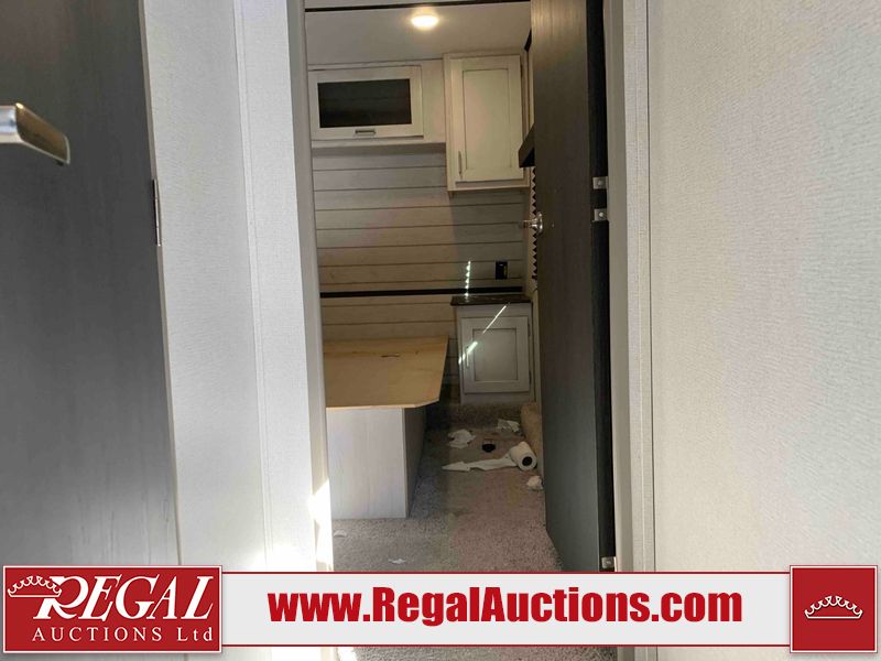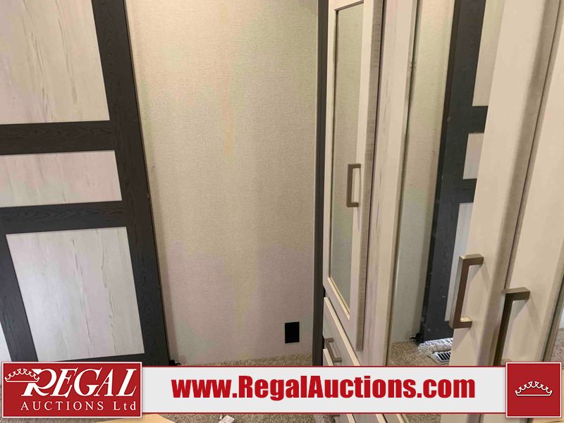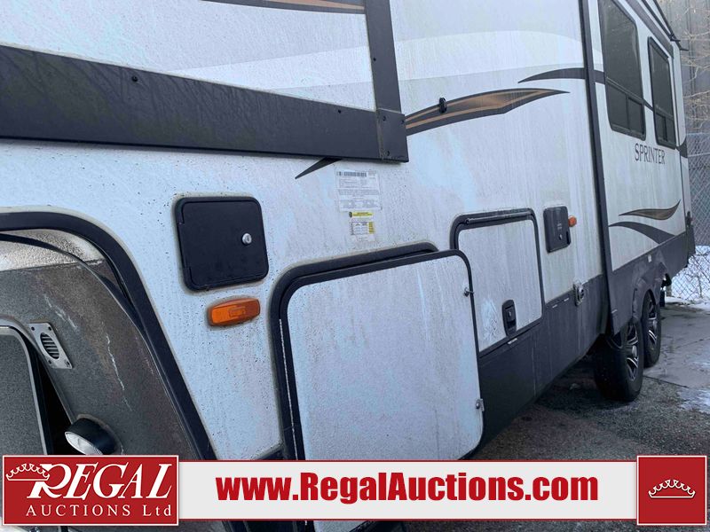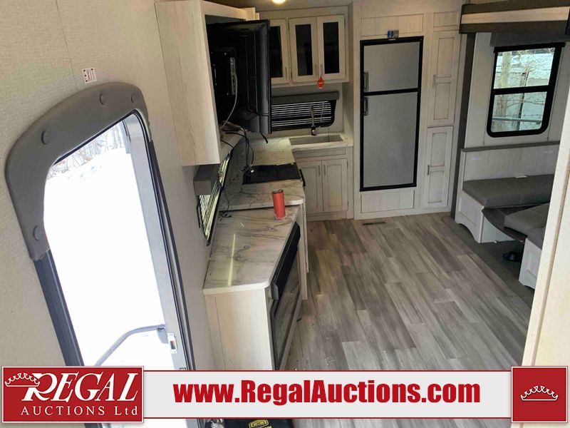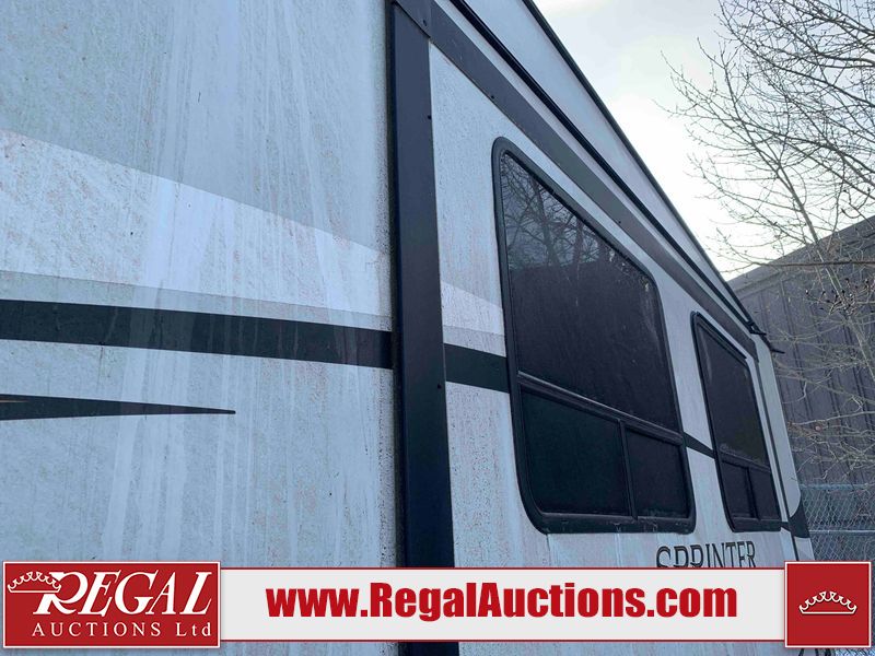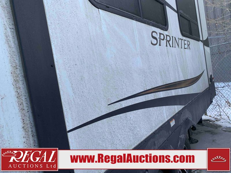 This RV is a 2022 Keystone sprinter SR 25 ML22 model fifth wheel trailer. It has a single door entry, roof air, and two slide outs accommodating the living area and master bedroom. The interior is dirty, some walls are showing minor chips, minor scratches and minor scuffs. Some walls are showing peeling wallpaper. The slide out wooden trim is warped. The bathroom sky vent trim is cracked. The walls in the master bedroom are stained. The exterior walls are made out of hard wall fiberglass. Some walls showing scratches, and scuffs. It is equipped with a battery and missing the propane tanks. It has an exterior refrigerator in one of the compartments. The Tires are mounted to alloy wheels and appear to be in good enough condition to use. This unit is equipped with a television, electric fireplace, microwave, three stove burner top, oven, refrigerator, and a stereo. They lay out consist of the master bedroom/bathroom at the front, and a kitchenette/dinette at the rear. ?