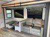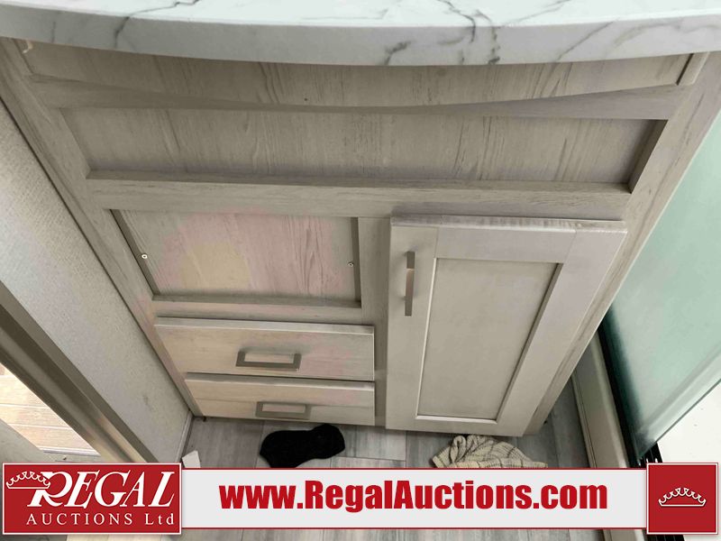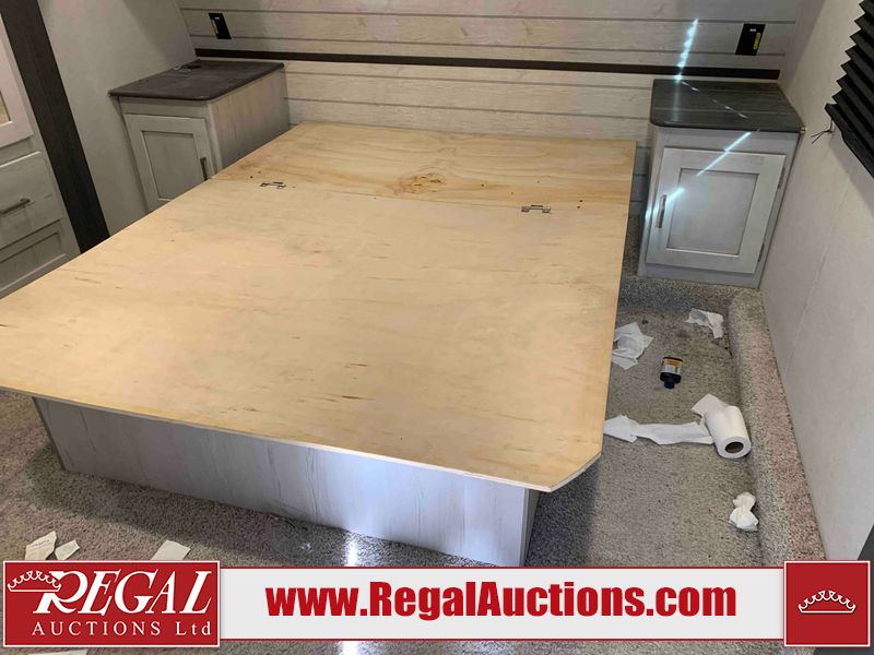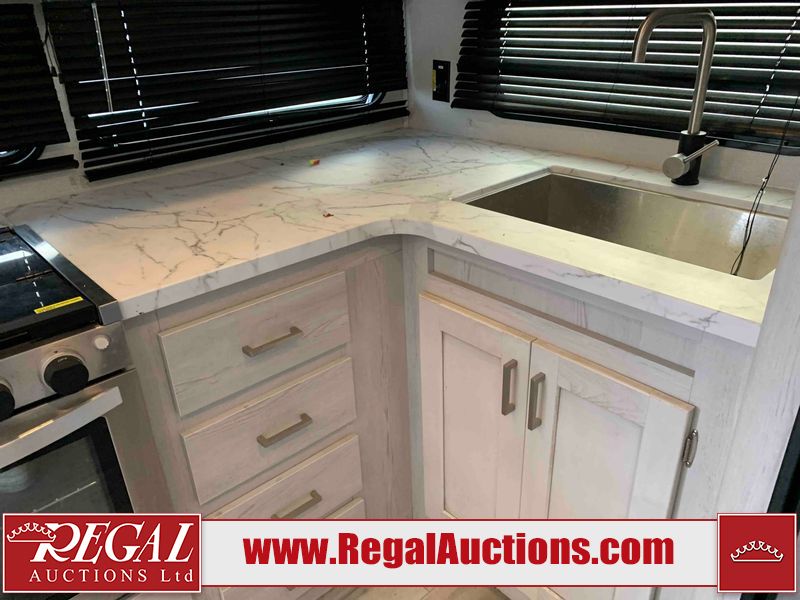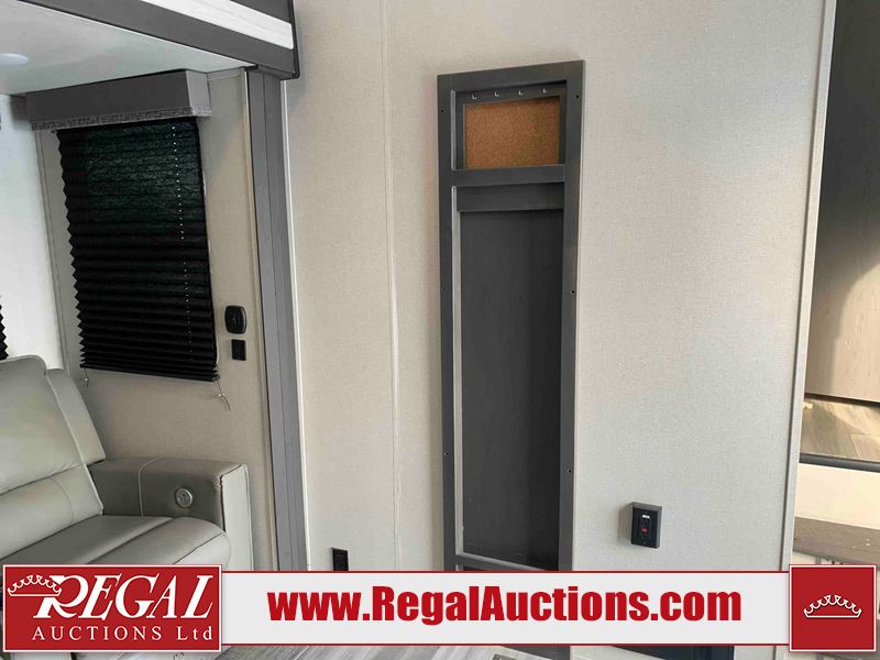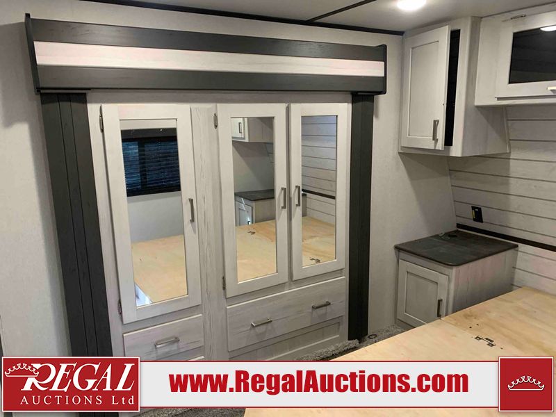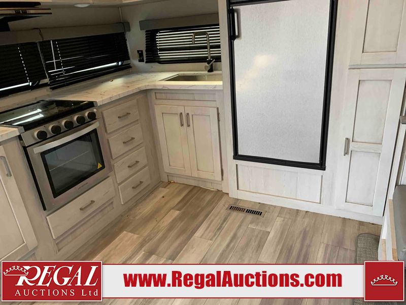 This RV is a 2022 Keystone sprinter SR 25 ML22 model fifth wheel trailer. It has a single door entry, roof air, and two slide outs accommodating the living area and master bedroom. The interior is dirty, some walls are showing minor chips, minor scratches and minor scuffs. Some walls are showing peeling wallpaper. The slide out wooden trim is warped. The bathroom sky vent trim is cracked. The walls in the master bedroom are stained. The exterior walls are made out of hard wall fiberglass. Some walls showing scratches, and scuffs. It is equipped with a battery and missing the propane tanks. It has an exterior refrigerator in one of the compartments. The Tires are mounted to alloy wheels and appear to be in good enough condition to use. This unit is equipped with a television, electric fireplace, microwave, three stove burner top, oven, refrigerator, and a stereo. They lay out consist of the master bedroom/bathroom at the front, and a kitchenette/dinette at the rear. ?