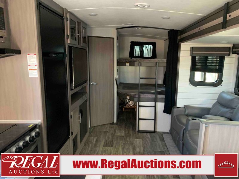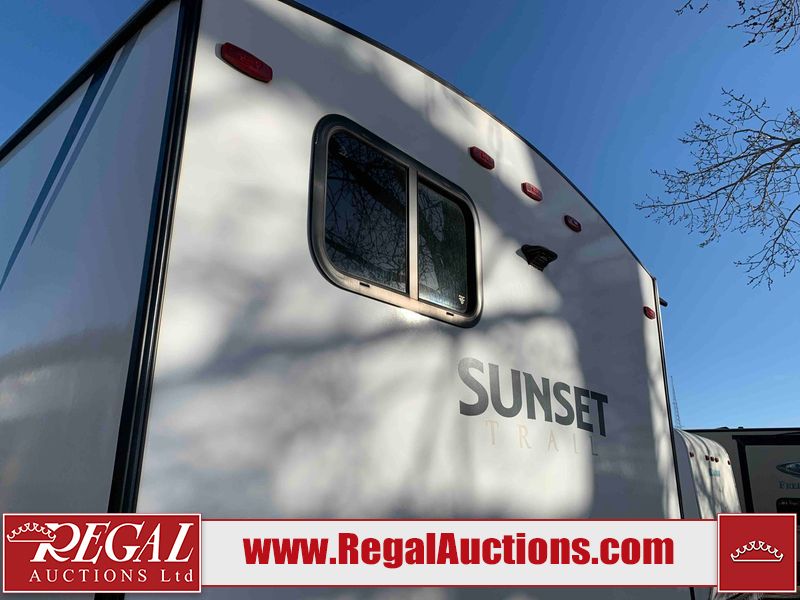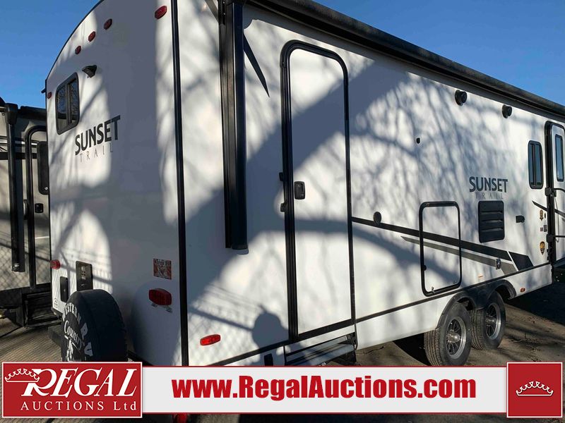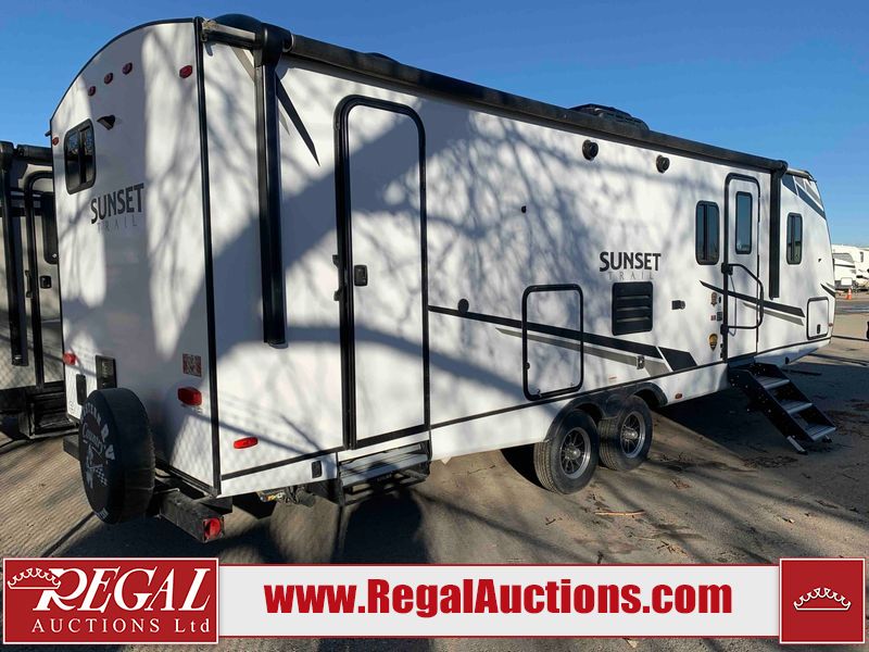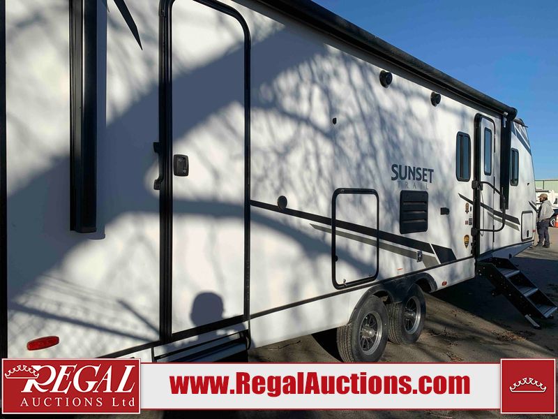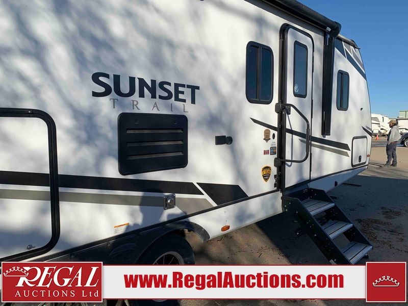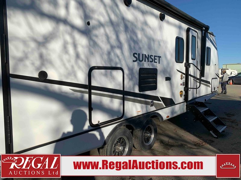 This unit is a 2022 Keystone Sunset Trail 272BH model tandem axle bumper pool trailer. It has a dual door entry, roof air, and a single slide out accommodating the living area. The interior is clean and seem to be in good condition. The bedroom and dinette trim is separating. The exterior walls are made out of hard wall fiberglass. Some walls are showing scratches/scuffs. The slide out is misaligned and may need adjustment. This unit is equipped with two propane tanks and a battery. The tires are mounted to all rims and appear to be in good enough condition for use. This unit is equipped with a three burner stove, top, microwave, refrigerator, and a television. The layout consists of a master bedroom at the front/kitchen at the center and a bunkhouse/bathroom at the rear.