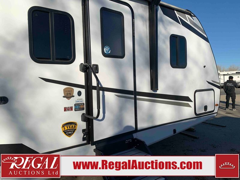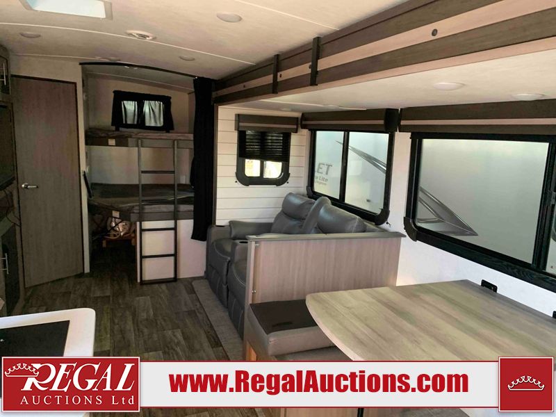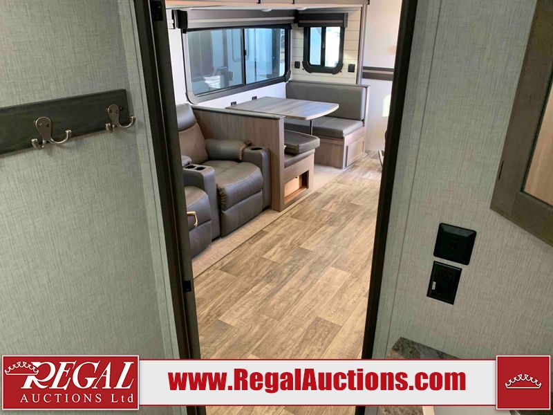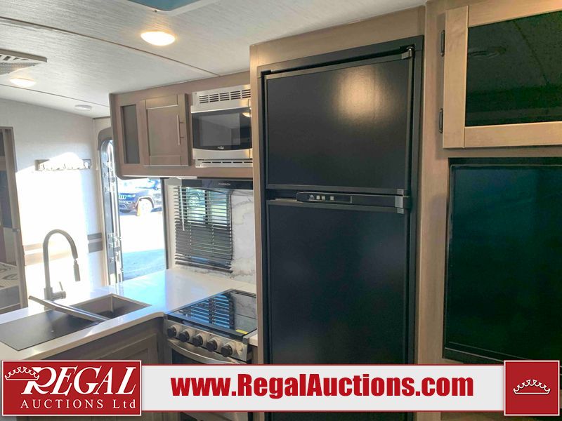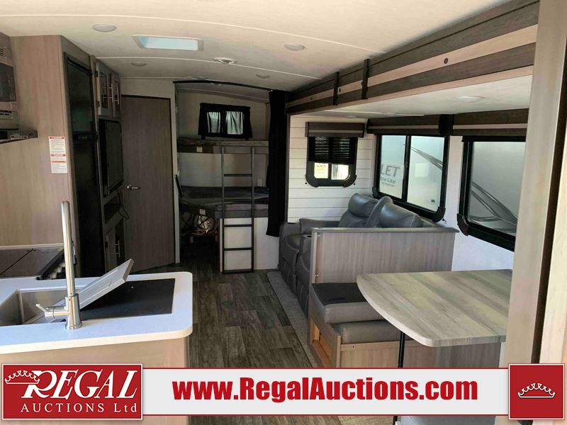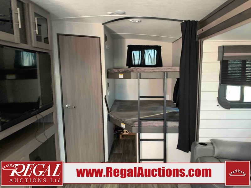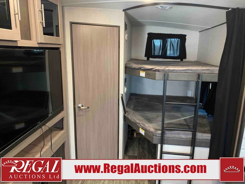 This unit is a 2022 Keystone Sunset Trail 272BH model tandem axle bumper pool trailer. It has a dual door entry, roof air, and a single slide out accommodating the living area. The interior is clean and seem to be in good condition. The bedroom and dinette trim is separating. The exterior walls are made out of hard wall fiberglass. Some walls are showing scratches/scuffs. The slide out is misaligned and may need adjustment. This unit is equipped with two propane tanks and a battery. The tires are mounted to all rims and appear to be in good enough condition for use. This unit is equipped with a three burner stove, top, microwave, refrigerator, and a television. The layout consists of a master bedroom at the front/kitchen at the center and a bunkhouse/bathroom at the rear.