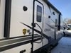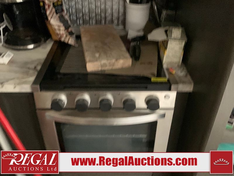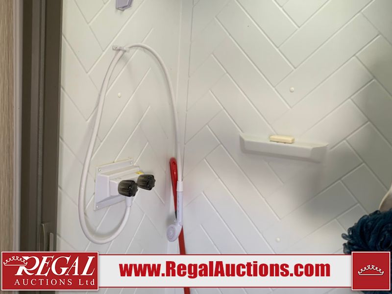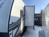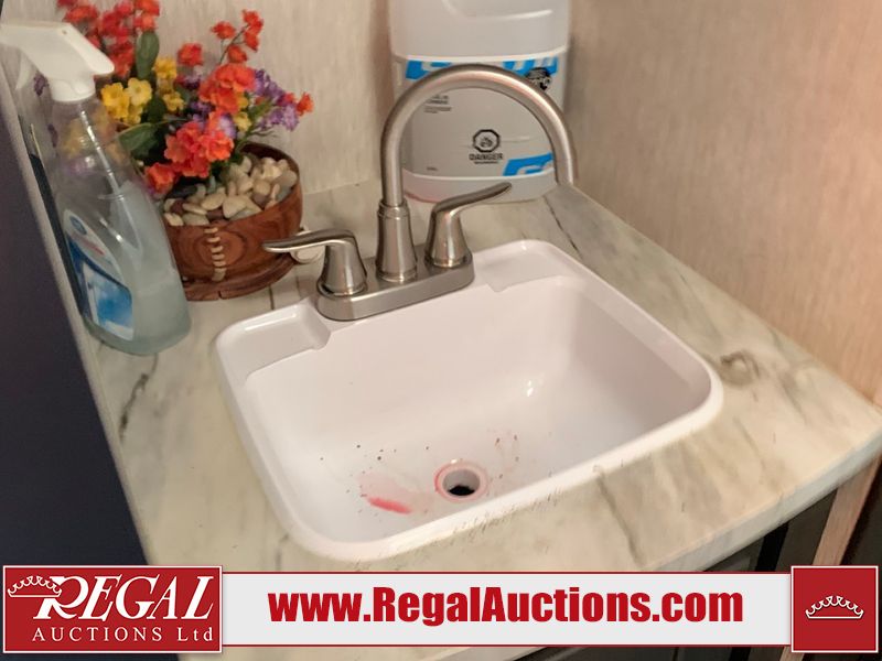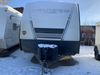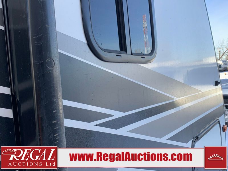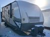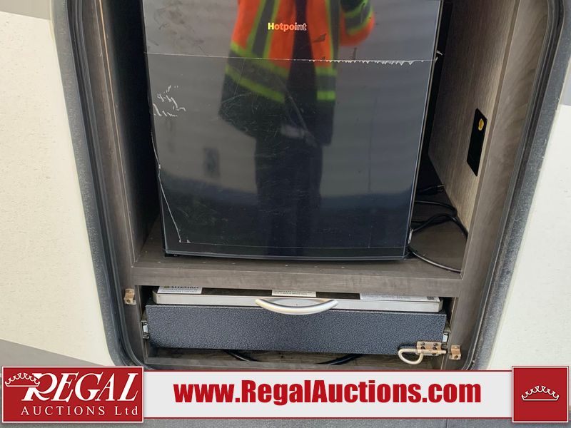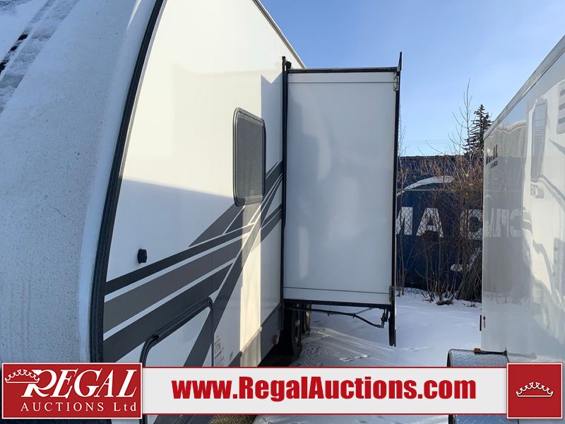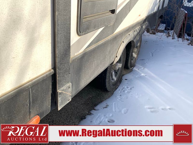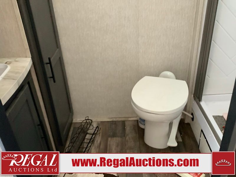 This RV is a 2023 crossroads cruiser series 22 RB model bumper pull travel trailer. This unit has a single entry door, roof air and a single slide out accommodating the living area/kitchen. The interior is dirty and full of personal items. Some of the wooden trim has scratches and scrapes. The exterior walls are made of hard wall fiberglass. The front panel has light. There are scuffs on both side panels. The slide out is operational. Alloy rims are mounted, the tires have plenty of tread remaining. The unit unit unit is equipped with two batteries and two propane tanks. The layout consist of a master bedroom at the front a kitchen/living area at the center and a washroom at the rear. This unit is equipped with a three burner stove top, oven, microwave, refrigerator, and a flatscreen television. It also has a exterior kitchen with a mini refrigerator and a two burner stove top.
