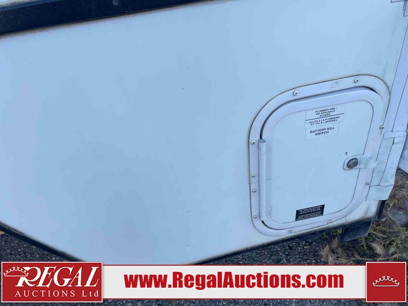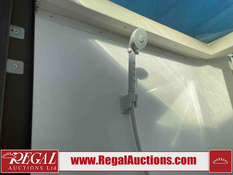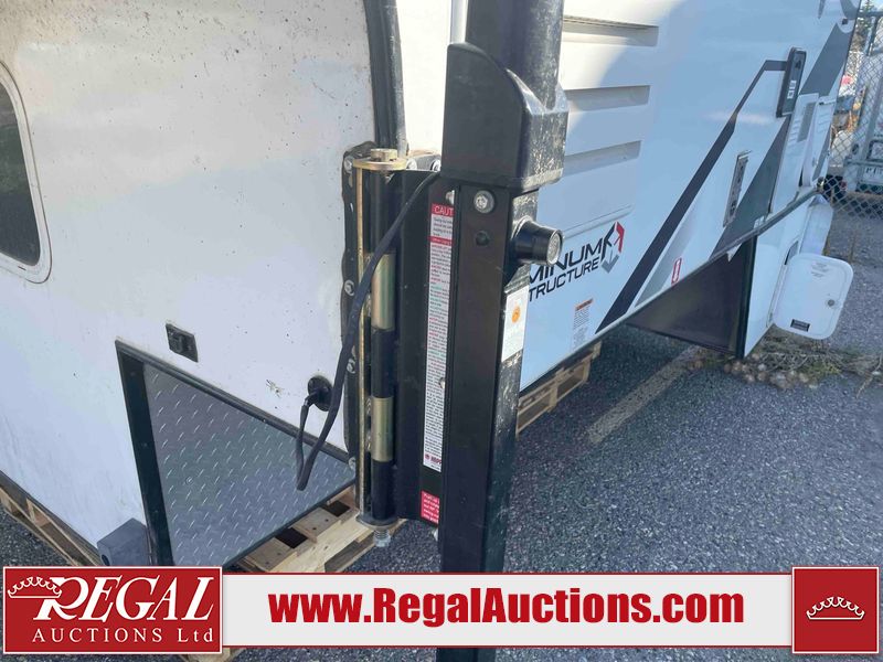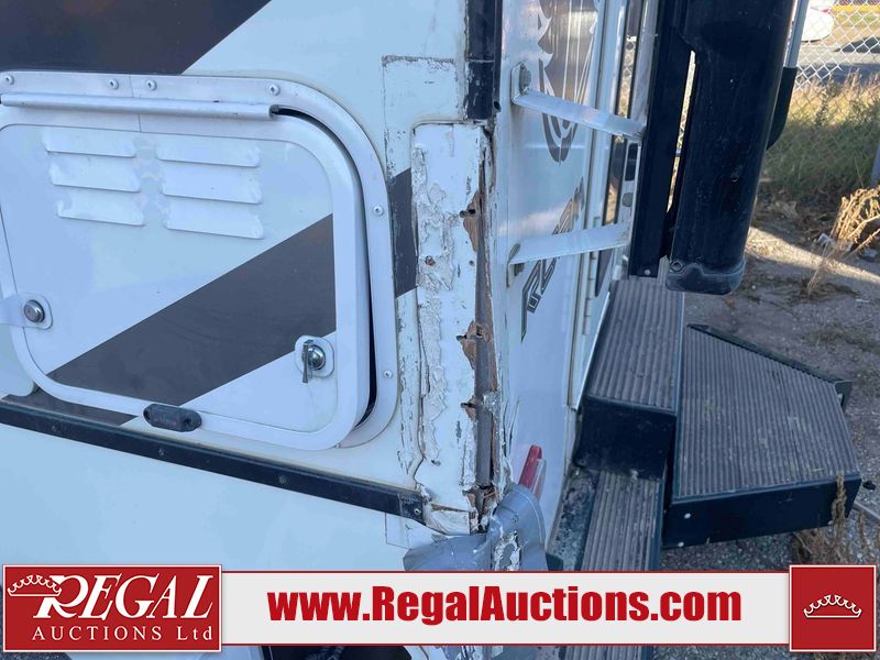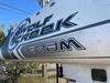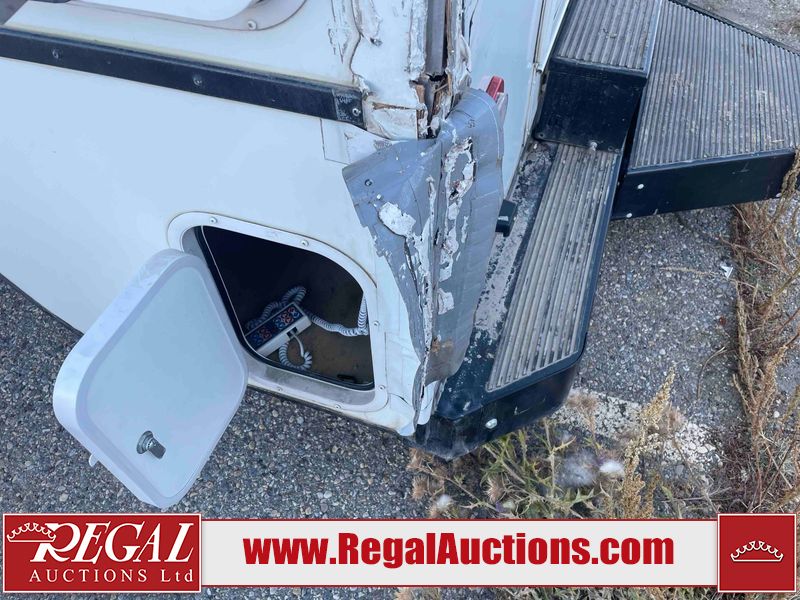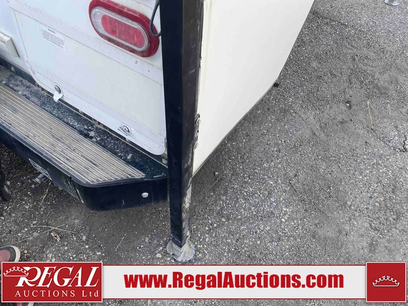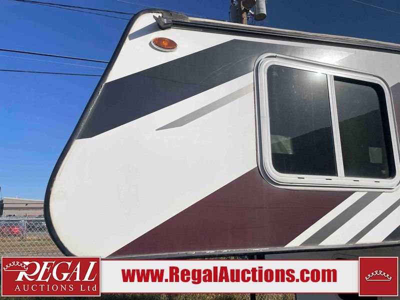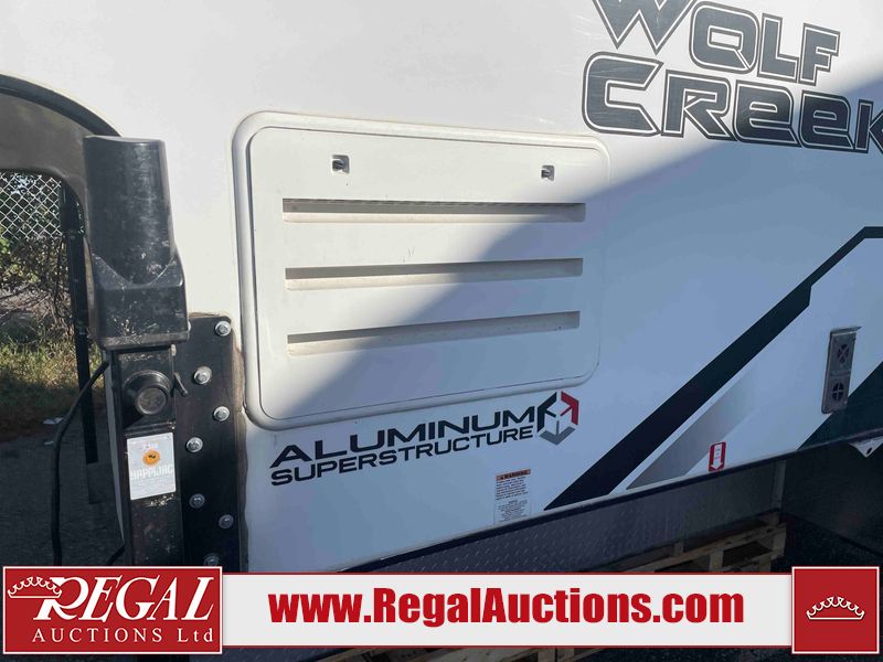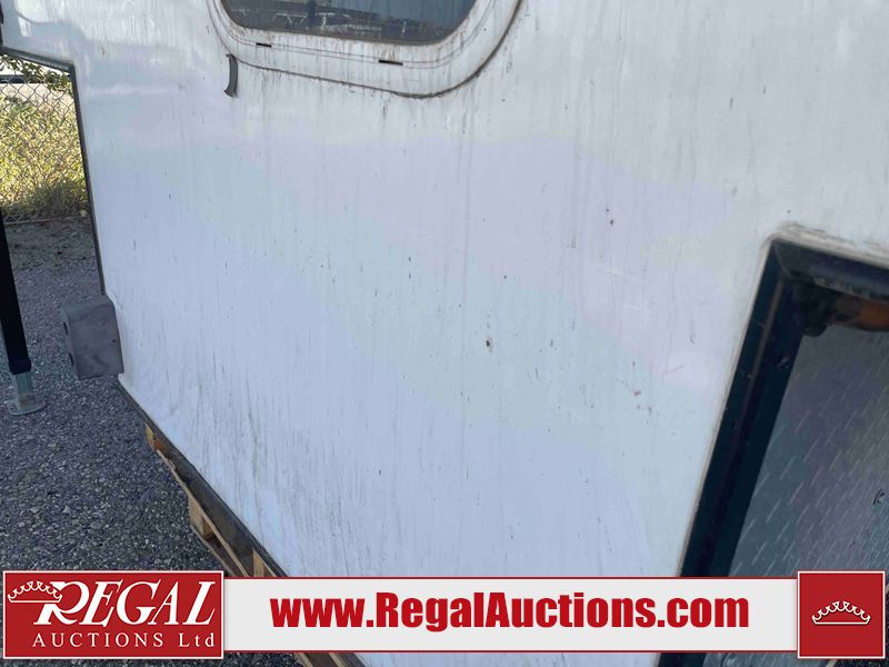 This RV is a 2023 Northwood Wolf Creek 890 model truck camper. It has a single door entry, and roof air. The interior is dirty. Some walls have scuffs and scratches. One of the dinette cushion trims is separating. The bedroom ceiling trim has nail holes. The exterior walls are made of hard wall fiberglass. There are chips and scratches on all walls. Most weatherstripping has been poorly resealed. The left rear wall is cracked and separating. The right wall has peeling paint. The left rear leveling jack has been removed, the pin appears to be damaged. This unit is equipped with two batteries, two propane tanks, refrigerator, three burner stove, top, oven, microwave, stereo system, and a solar system. The layout consists of a bad/bathroom in the front, and a kitchenette/dinette in the rear.
