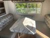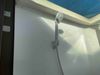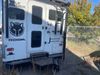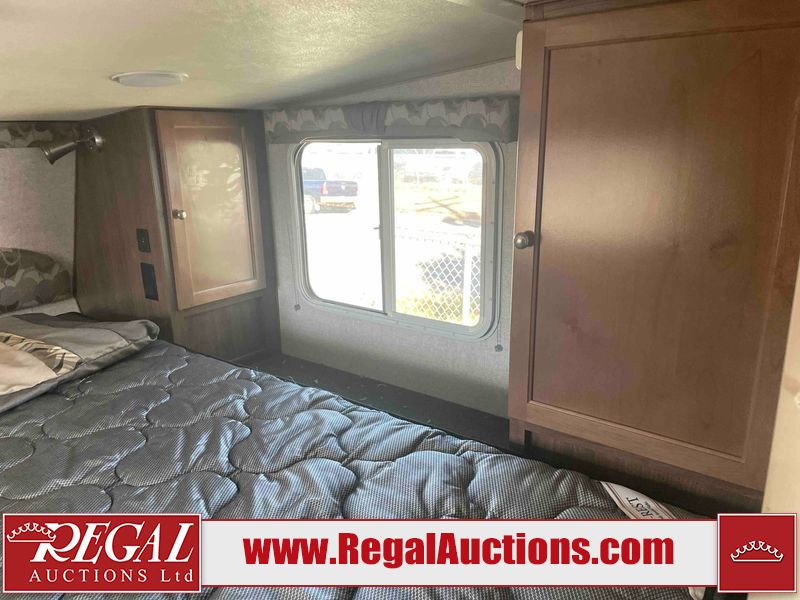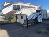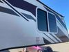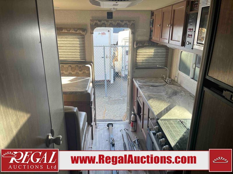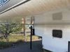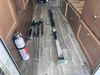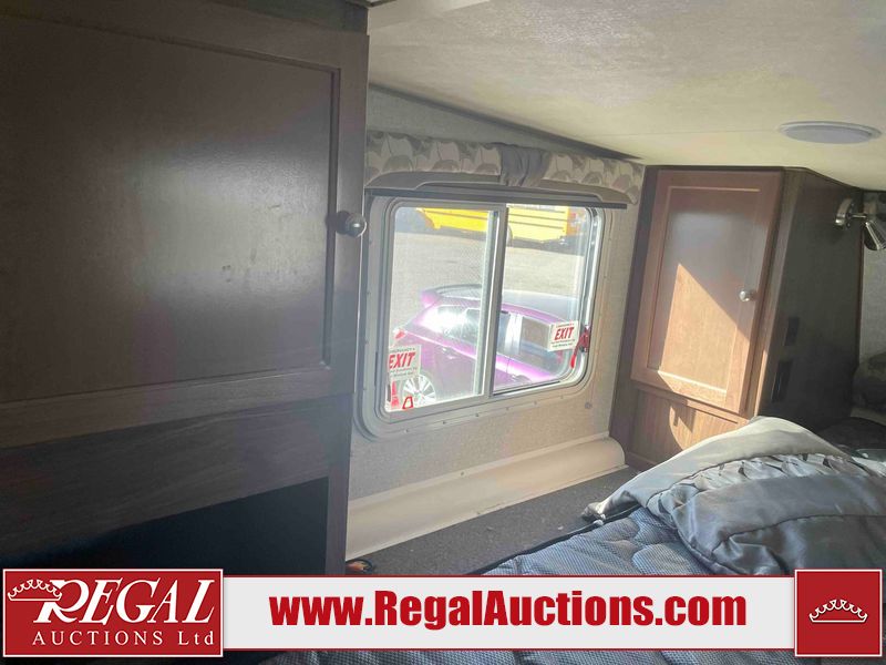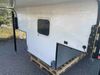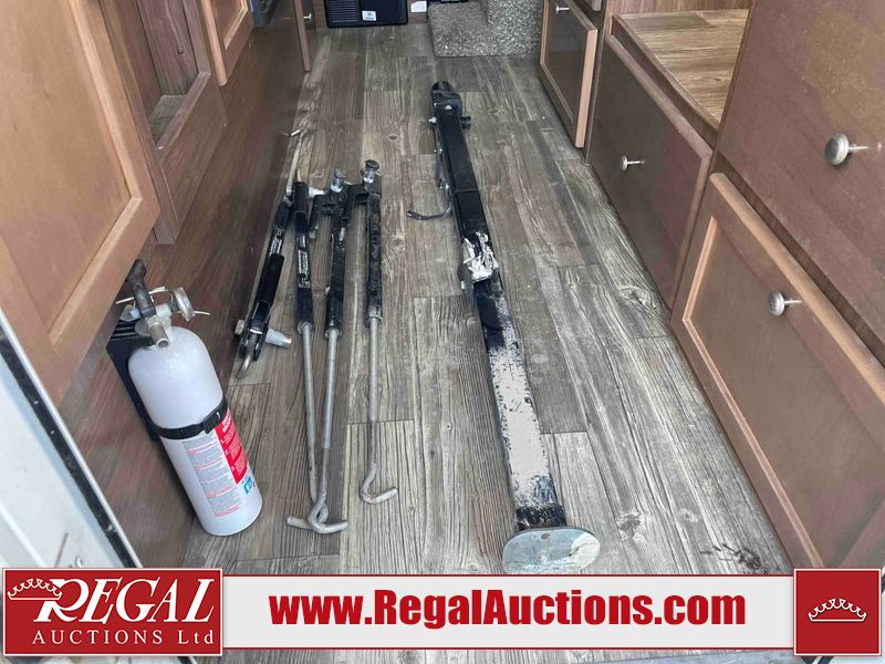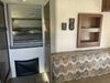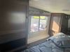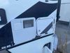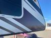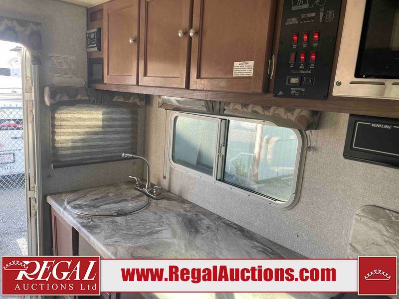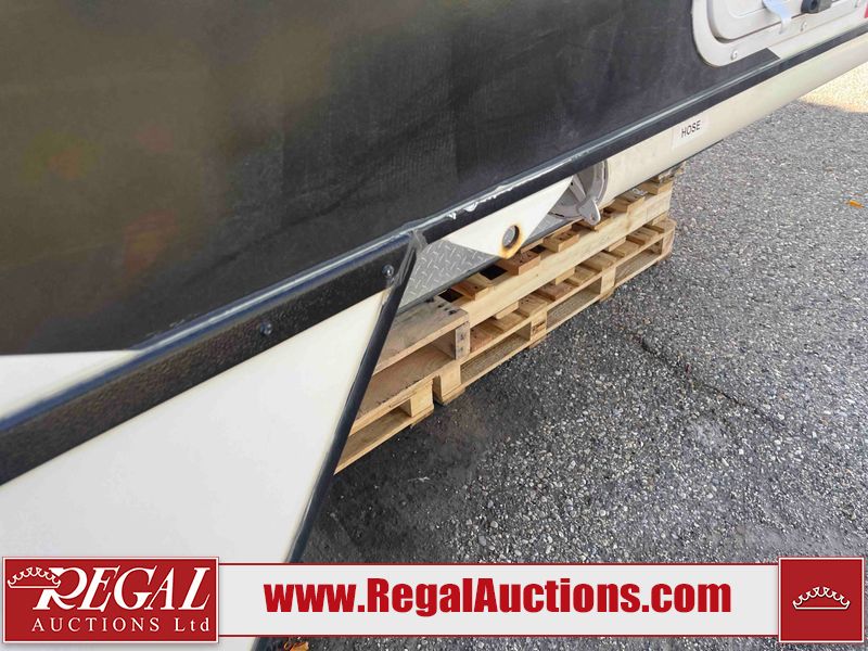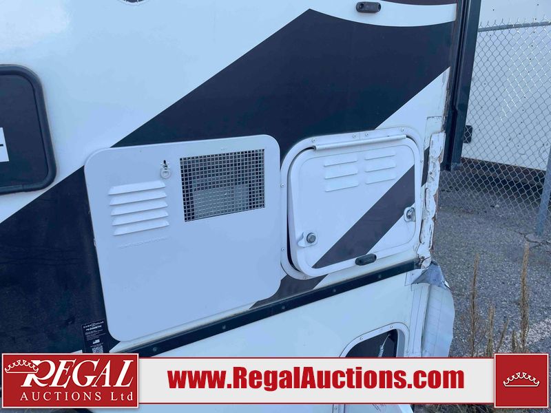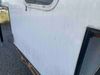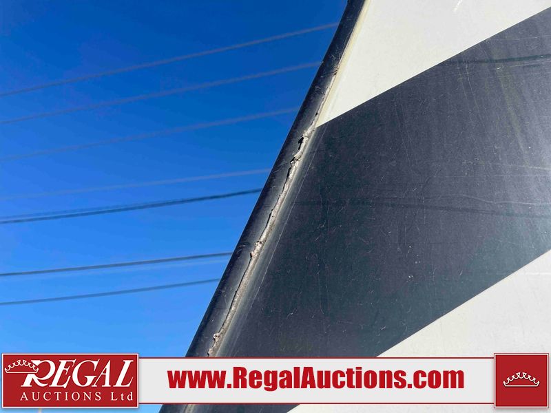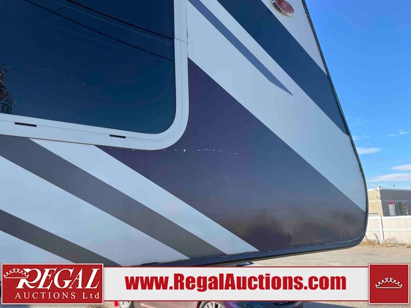 This RV is a 2023 Northwood Wolf Creek 890 model truck camper. It has a single door entry, and roof air. The interior is dirty. Some walls have scuffs and scratches. One of the dinette cushion trims is separating. The bedroom ceiling trim has nail holes. The exterior walls are made of hard wall fiberglass. There are chips and scratches on all walls. Most weatherstripping has been poorly resealed. The left rear wall is cracked and separating. The right wall has peeling paint. The left rear leveling jack has been removed, the pin appears to be damaged. This unit is equipped with two batteries, two propane tanks, refrigerator, three burner stove, top, oven, microwave, stereo system, and a solar system. The layout consists of a bad/bathroom in the front, and a kitchenette/dinette in the rear.