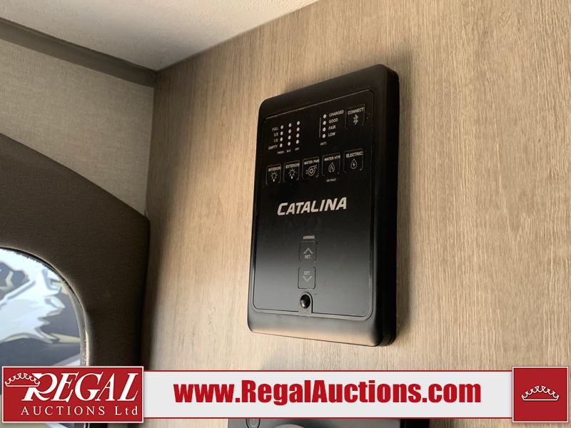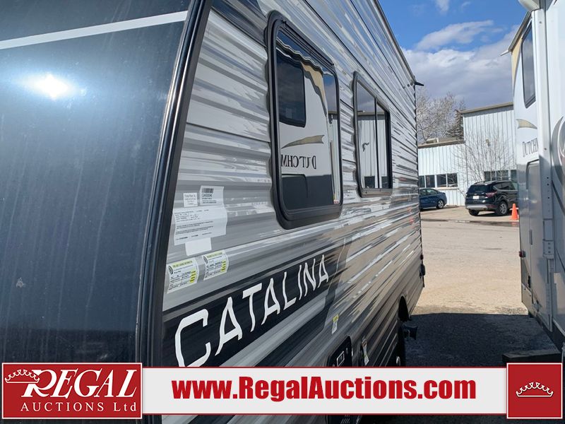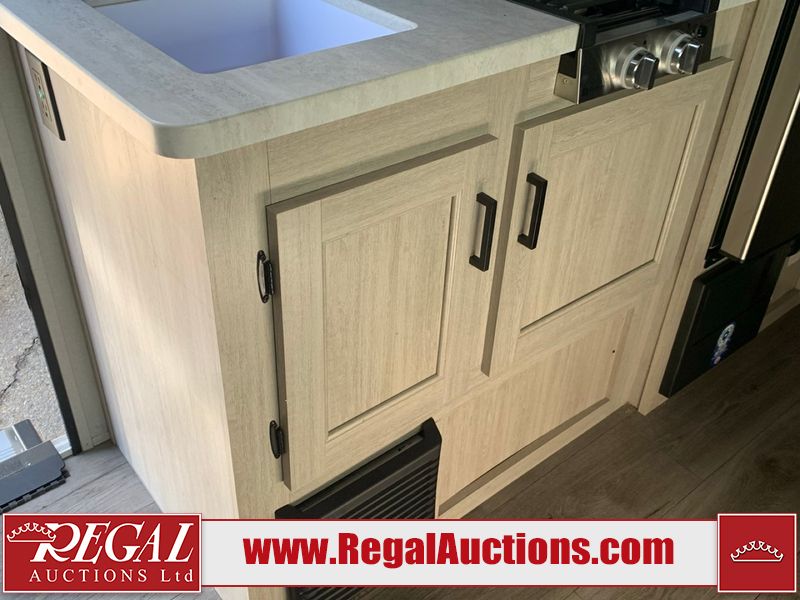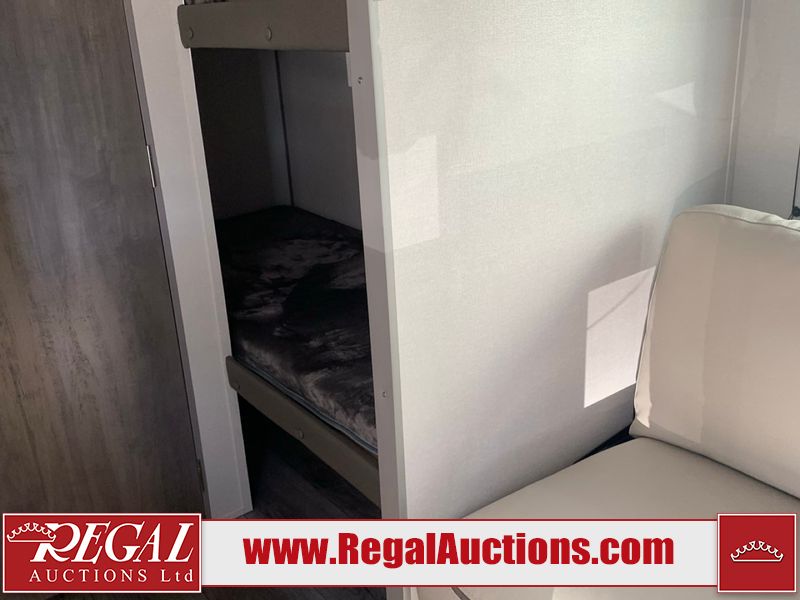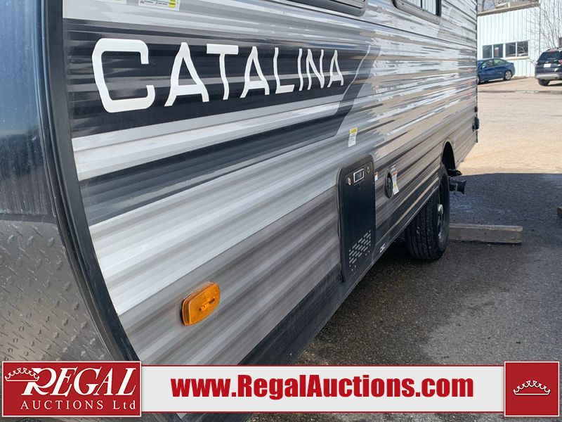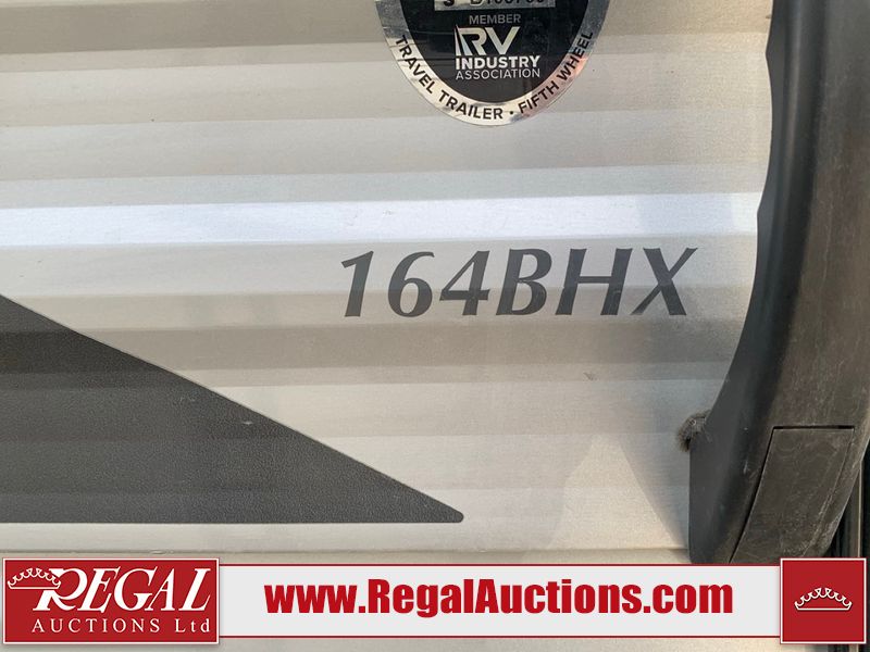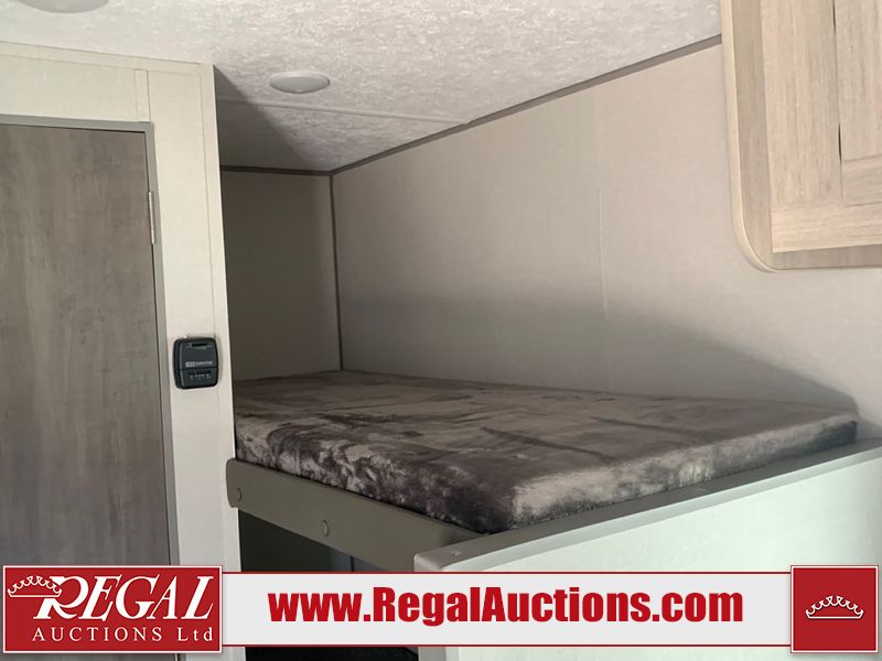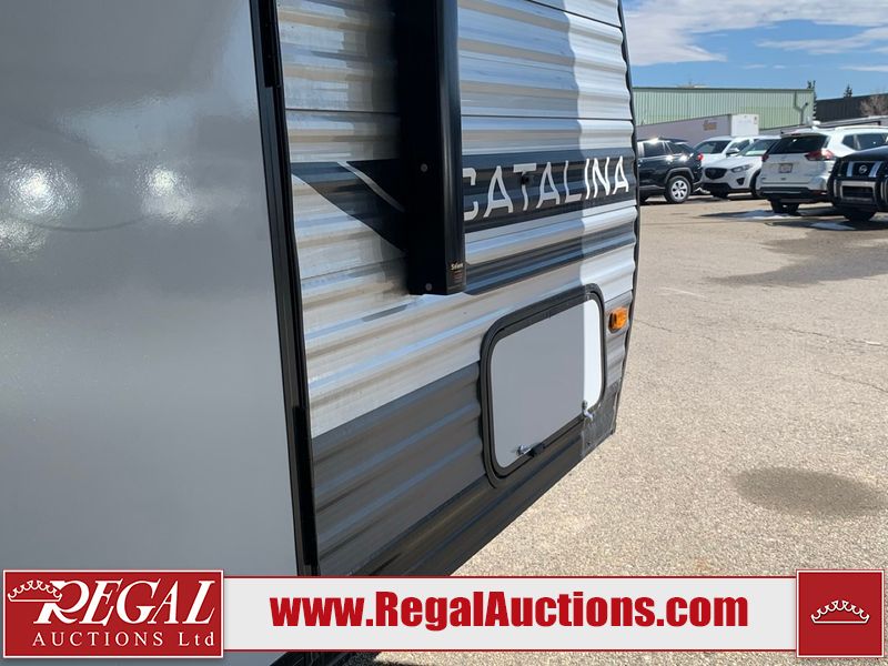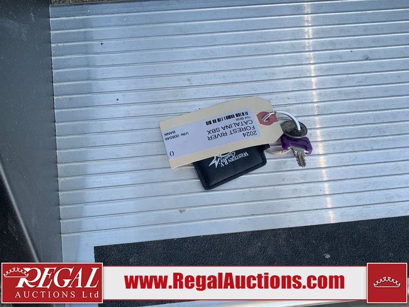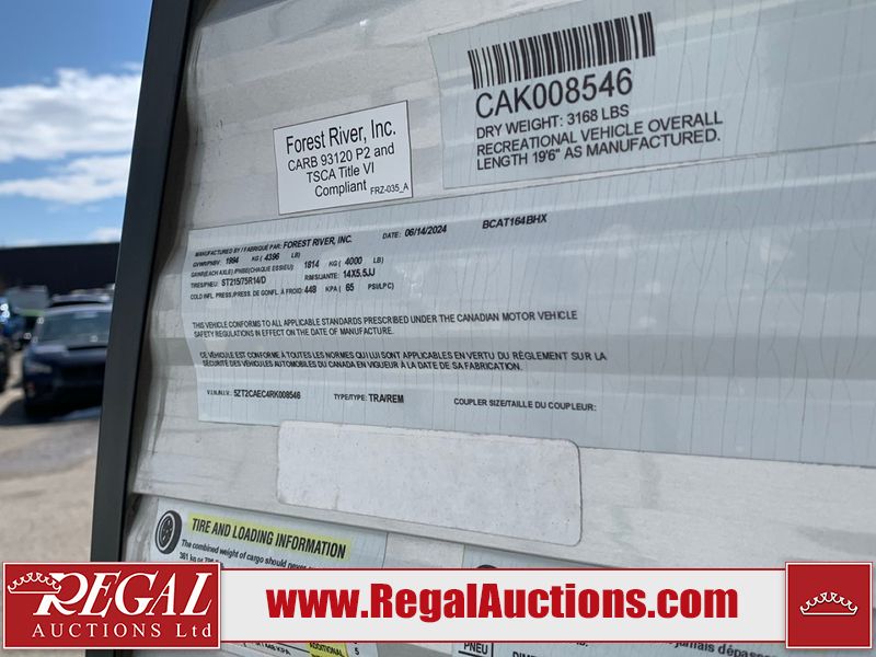 This RV is a 2024 Forest River Catalina SBX 164BHX model single axle bumper pull trailer. It has a single door entry and roof air. The interior is clean. There are some stains on the floor. The refrigerator has a dent. The exterior walls are made out of soft wall aluminum. There are minor scratches around the RV. This unit is missing the battery and propane tank. The tires are mounted to steel wheels and appear to be in good enough condition for use. This unit is equipped with a stereo, microwave, two burner stove top, and a refrigerator. The layout consists of the master bedroom in the front, living area/kitchenette in the centre, and a bunkhouse/bathroom at the rear.