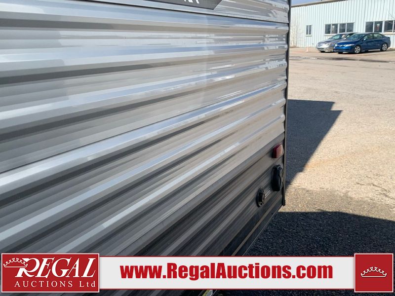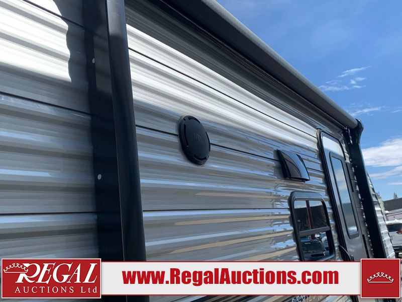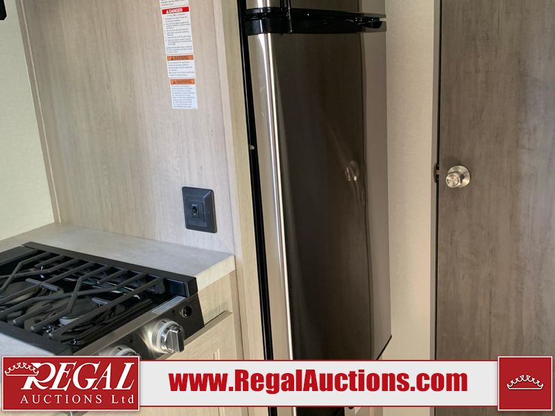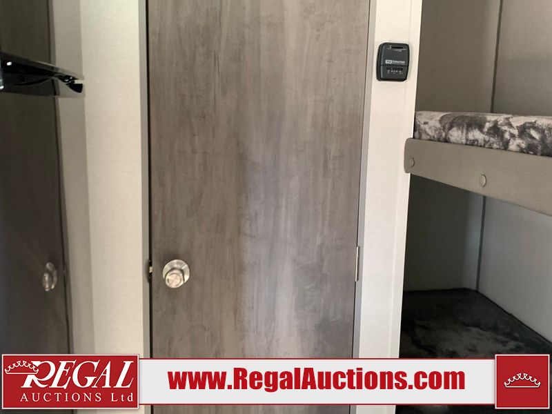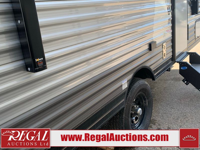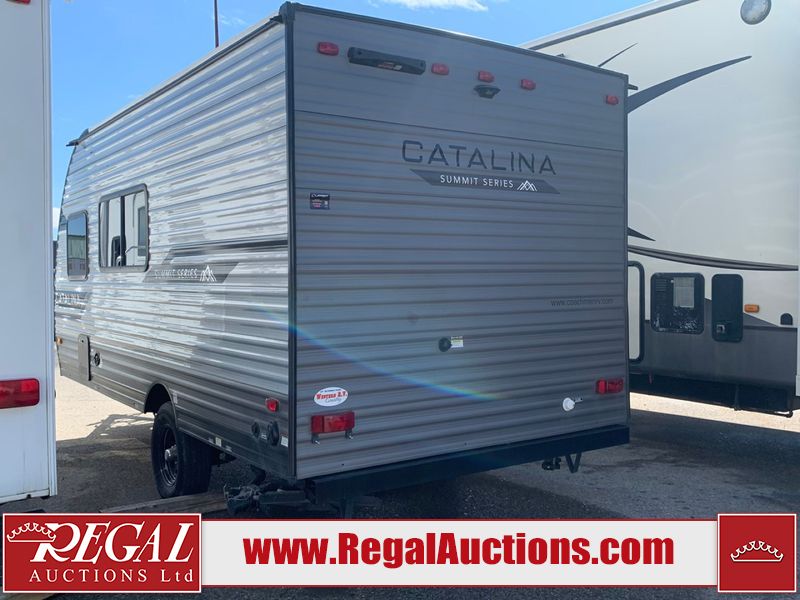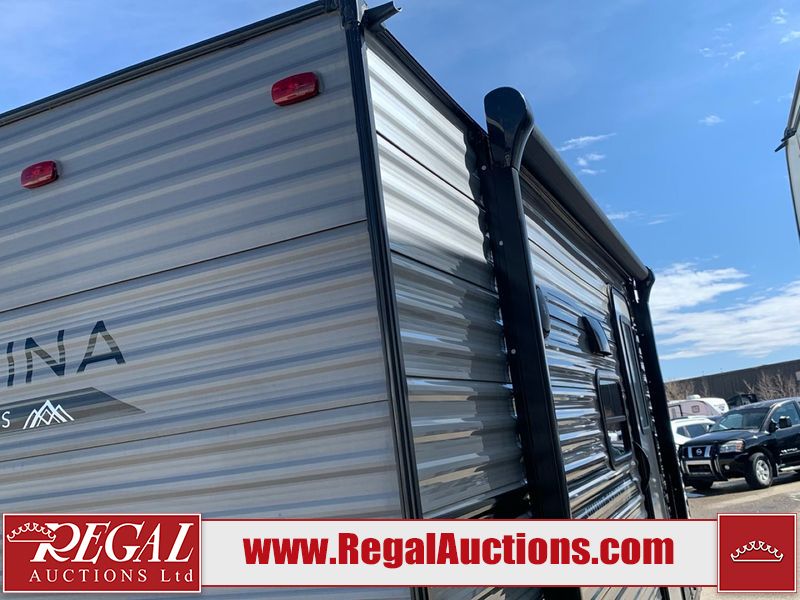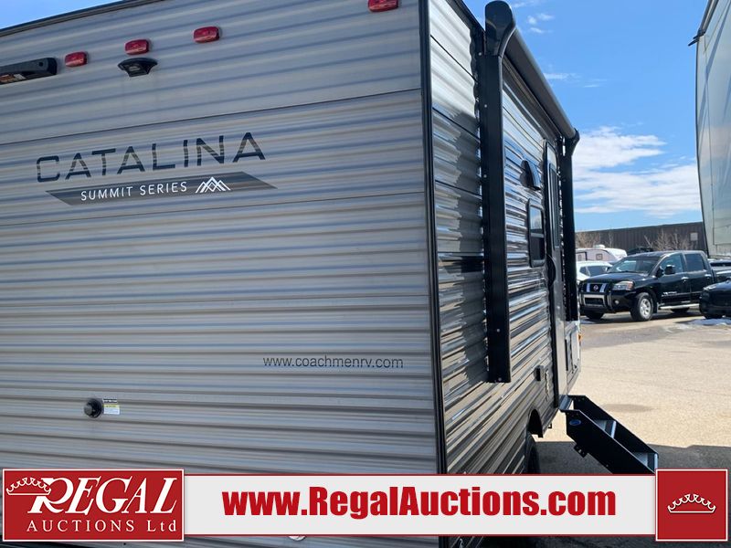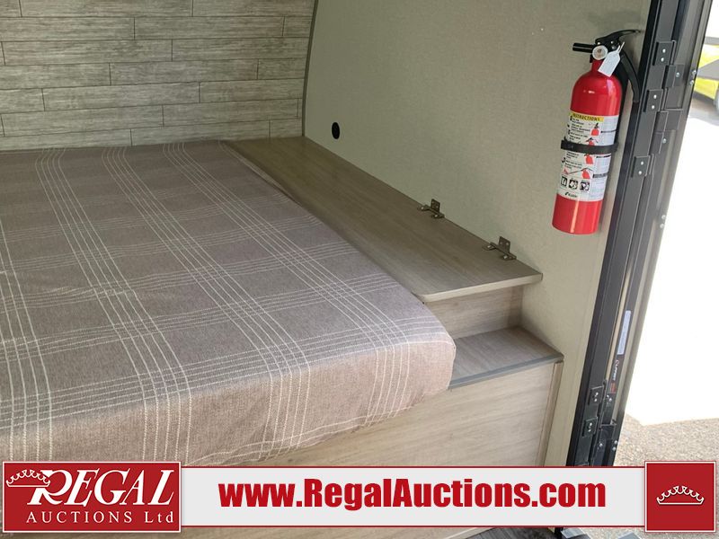 This RV is a 2024 Forest River Catalina SBX 164BHX model single axle bumper pull trailer. It has a single door entry and roof air. The interior is clean. There are some stains on the floor. The refrigerator has a dent. The exterior walls are made out of soft wall aluminum. There are minor scratches around the RV. This unit is missing the battery and propane tank. The tires are mounted to steel wheels and appear to be in good enough condition for use. This unit is equipped with a stereo, microwave, two burner stove top, and a refrigerator. The layout consists of the master bedroom in the front, living area/kitchenette in the centre, and a bunkhouse/bathroom at the rear.