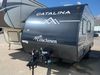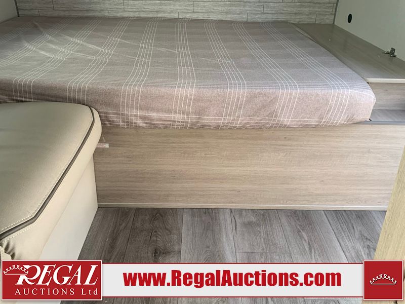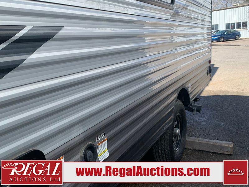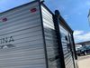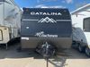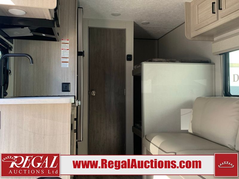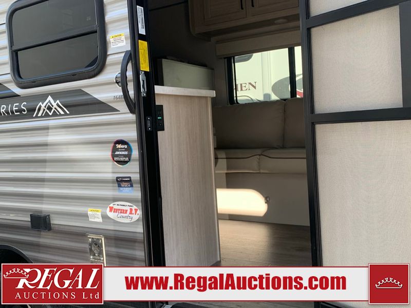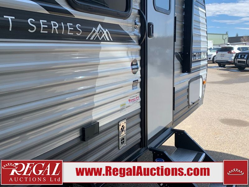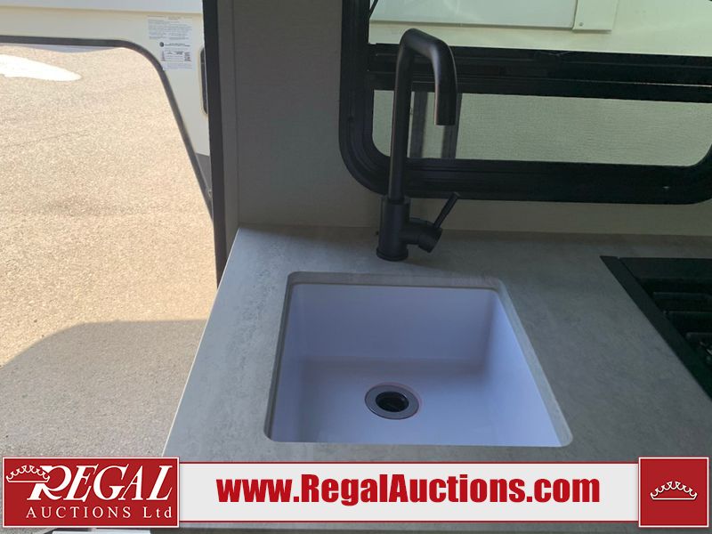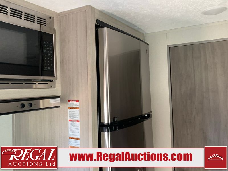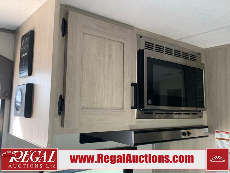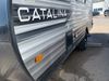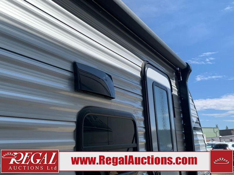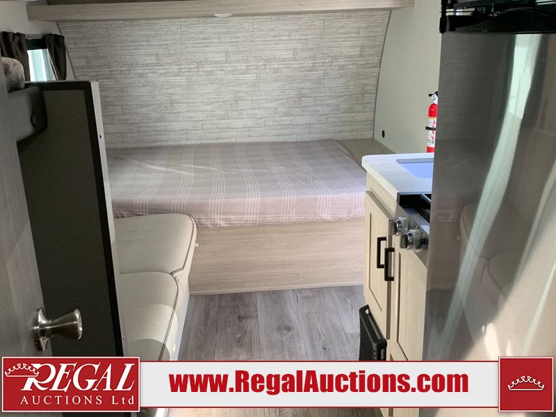 This RV is a 2024 Forest River Catalina SBX 164BHX model single axle bumper pull trailer. It has a single door entry and roof air. The interior is clean. There are some stains on the floor. The refrigerator has a dent. The exterior walls are made out of soft wall aluminum. There are minor scratches around the RV. This unit is missing the battery and propane tank. The tires are mounted to steel wheels and appear to be in good enough condition for use. This unit is equipped with a stereo, microwave, two burner stove top, and a refrigerator. The layout consists of the master bedroom in the front, living area/kitchenette in the centre, and a bunkhouse/bathroom at the rear.