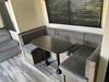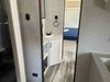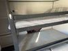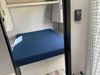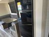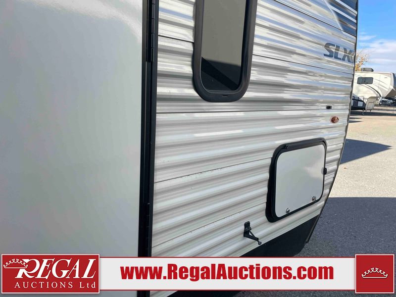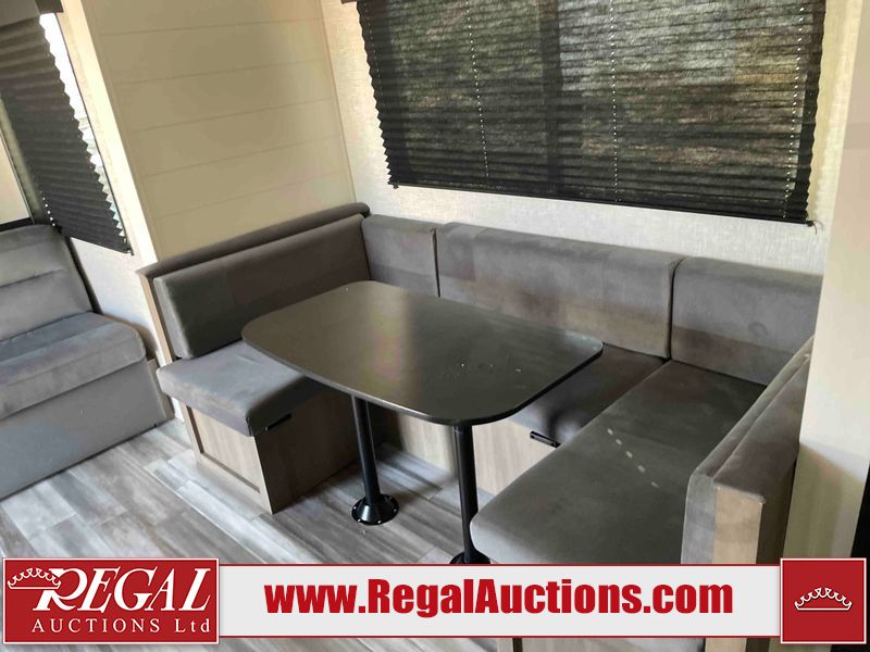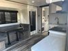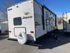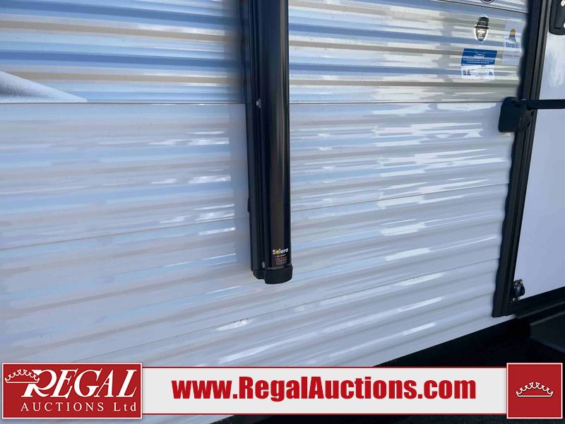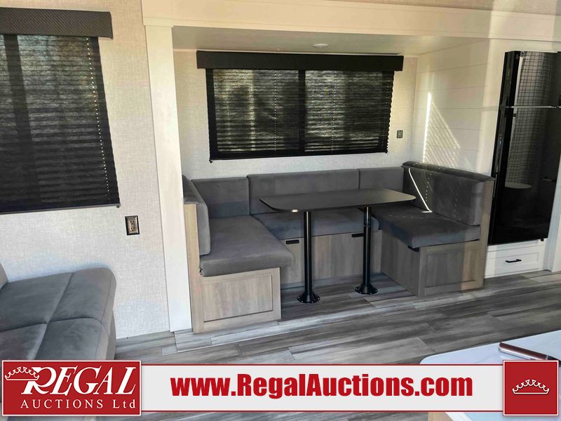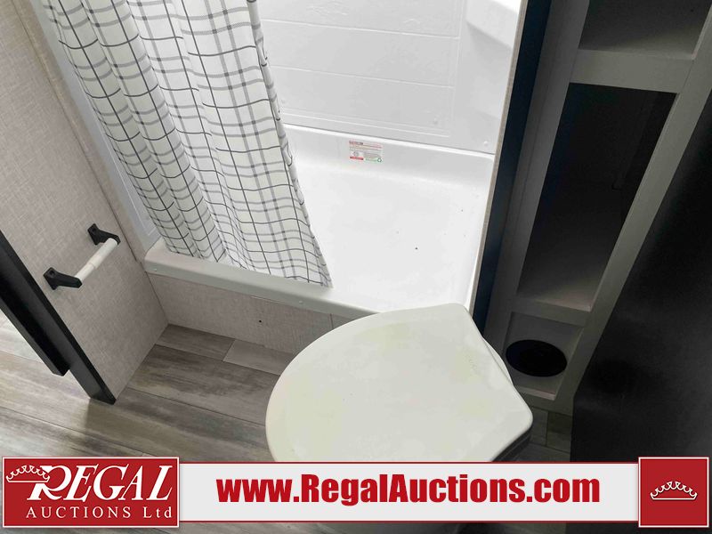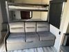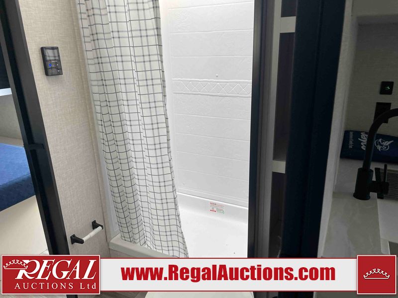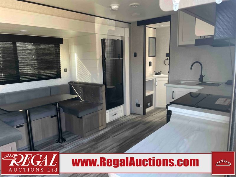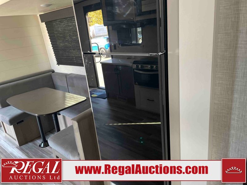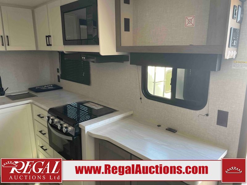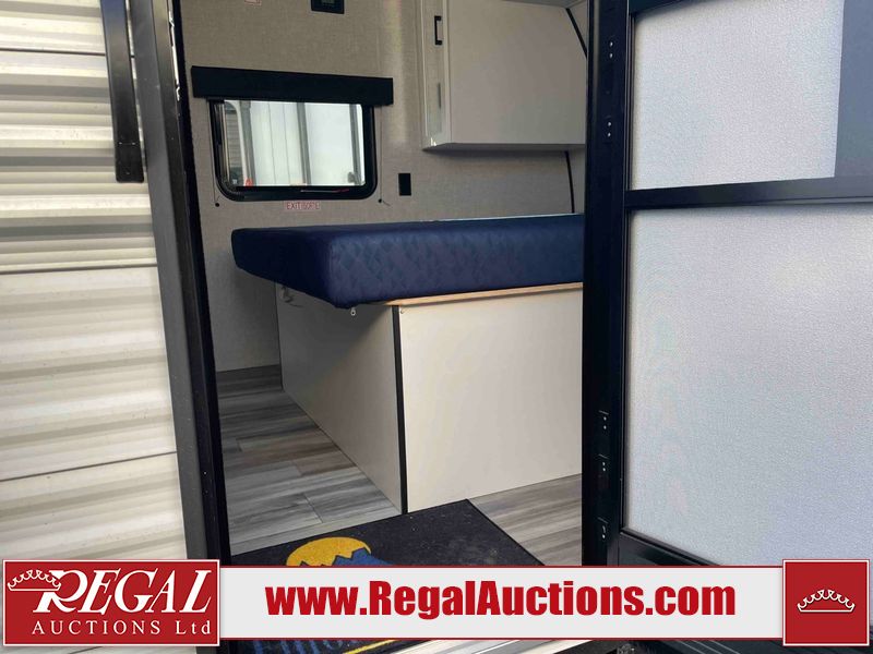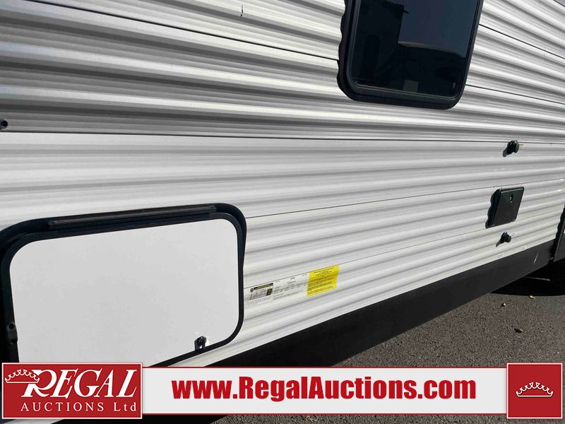 This RV is a 2025 Jayco flight 287BHSW model tandem axle bumper pull trailer. It has two entry doors, roof air and a single slide out accommodating the living area. The interior is dirty. Some walls are showing scratches and scuffs. One of the kitchen cabinets is misaligned. Some wallpaper is peeling. The refrigerator wall is warped. The exterior walls are made of soft wall aluminum. All walls have scratches and scuffs. The left side fender trim is separating. The right side wall has some dents. This unit gets power with external power applied. The tires are mounted to alloy rims and appear to be a good enough condition for use. This unit is equipped with two propane tanks, battery, refrigerator, microwave, three burner stove top, oven and a stereo system. The layout consists of a master bedroom/bathroom in the front, kitchenette/dinette in the center and a bunkhouse in the rear.