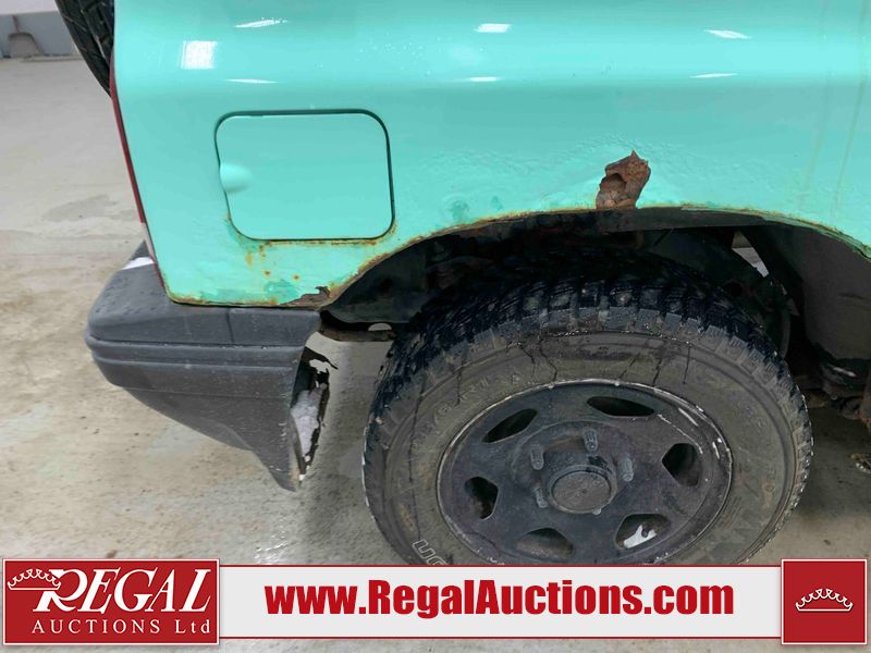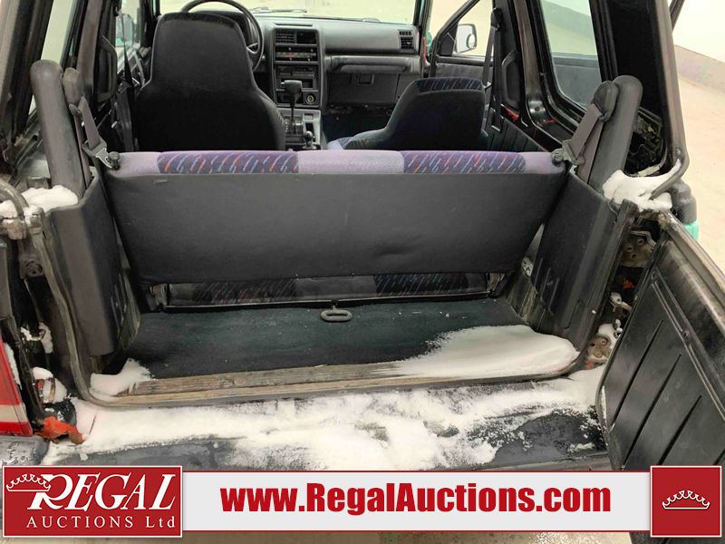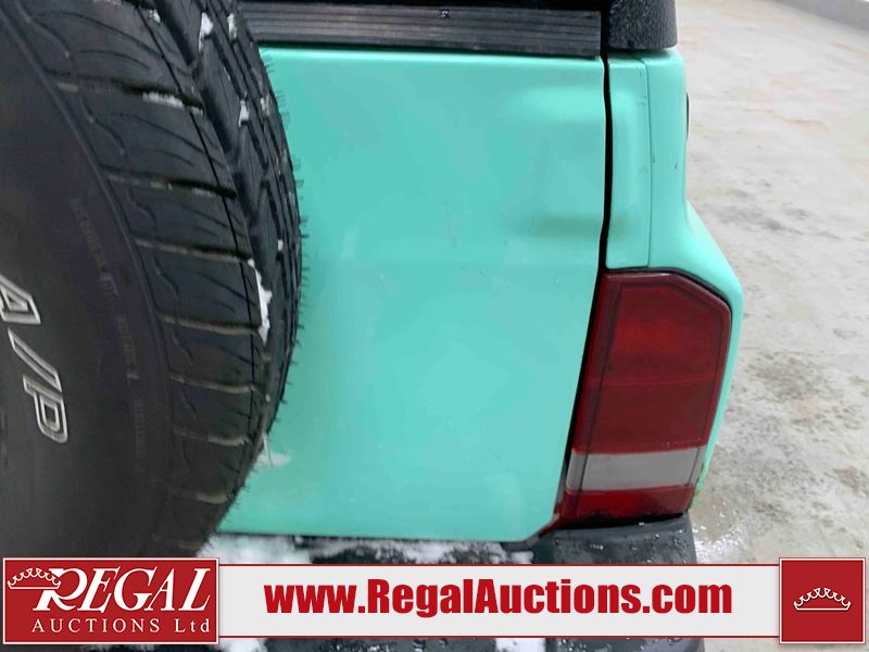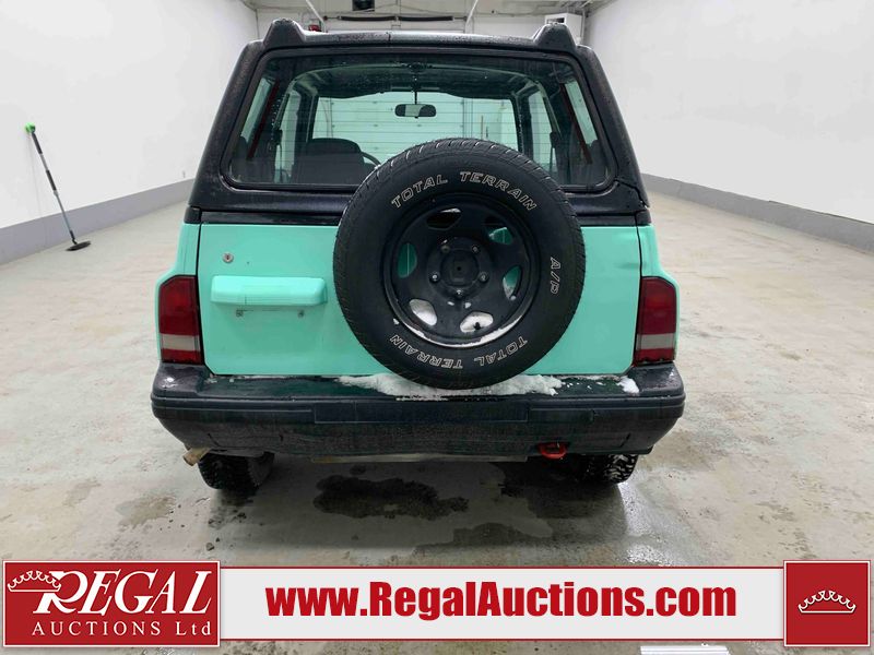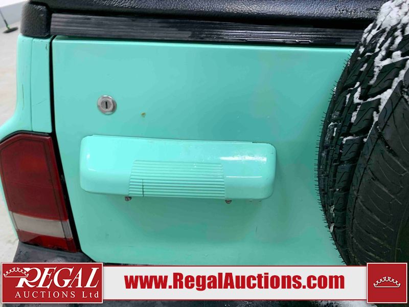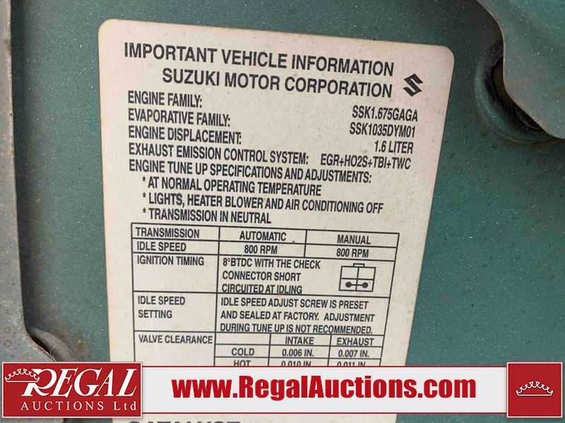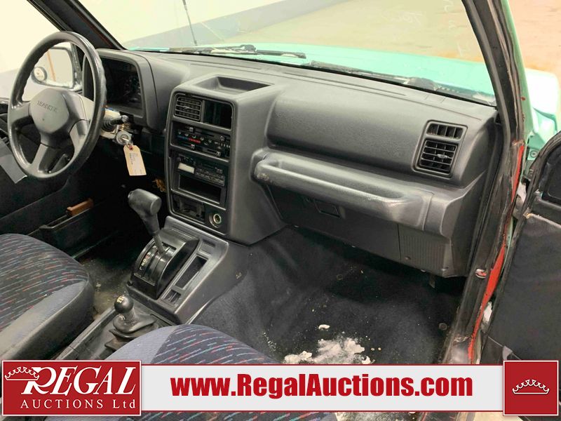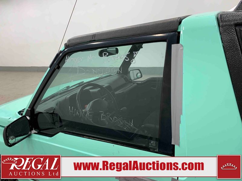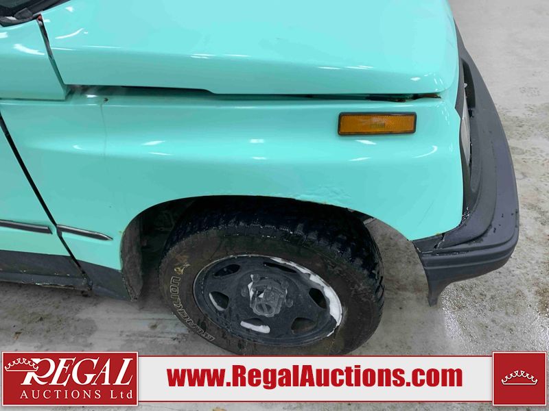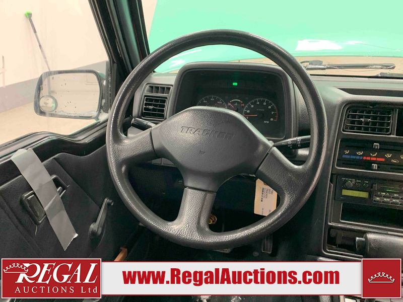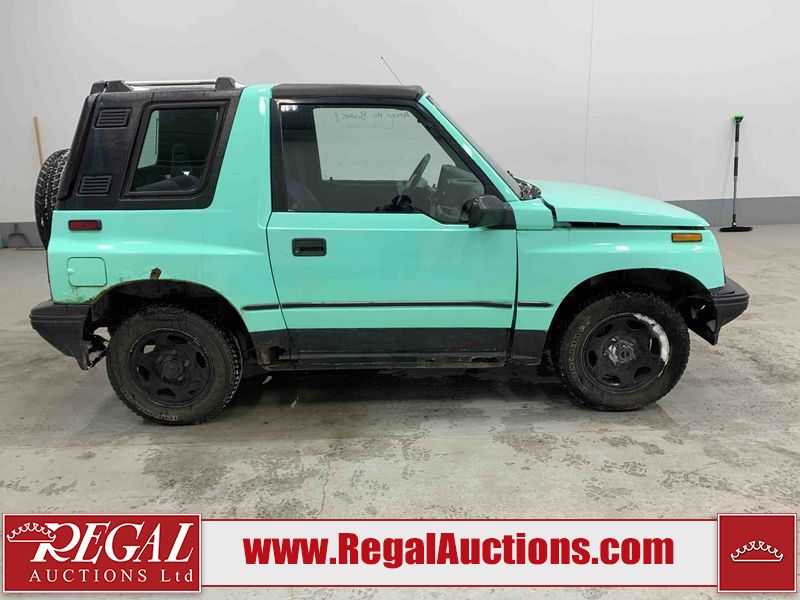 This 1992 GEO TRACKER CLEMENTINE 2D UTILITY 4WD is powered by a 1.6 liter 4 cylinder gasoline engine and an automatic transmission. It is equipped with four wheel drive. The SUV has seats for 4 people. The mileage is average considering the SUV's age. The vehicle does not have power windows, power locks, or air conditioning. The vehicle has some mechanical problems. The battery is dead. The vehicle requires a boost to start and may require a booster pack in order to stay running. The brakes are weak. (See Footnote 1) The body looks to be in fair condition overall. There is substantial rust on the left rear fender and right rear fender. There is noteworthy dent damage on the hood. There is a fair amount of rust on the left front fender and right front fender. There are slight chips on the front bumper. There are scratches on the front bumper and rear bumper. There is dent damage on the left front fender. The interior looks to be in good condition overall. The driver's seat is worn. The windshield is cracked. All of the tires have lots of tread remaining. This SUV is being sold by an automotive broker. The vehicle will be sold with the following declarations: Auctioneer Announcement "*DRIVER DOOR HINGE BROKE**REMOVABLE HARD TOP* *WEAK BRAKES*TOW RECOMMENDED*". Footnotes: 1) We've identified some mechanical problems with the vehicle. However, the vehicle has not undergone a mechanical inspection and our findings are not to be considered a complete evaluation of the vehicle's mechanical condition. Review our Buyer Protection Policy to see how Regal Auctions protects you from undisclosed mechanical problems. Regal Auctions Ltd. makes no guarantee or warranty, either express or implied, with respect to the data provided in this report. The information has been provided from the consignor and from sources generally believed to be reliable, however the accuracy of this information cannot be guaranteed by Regal Auctions.