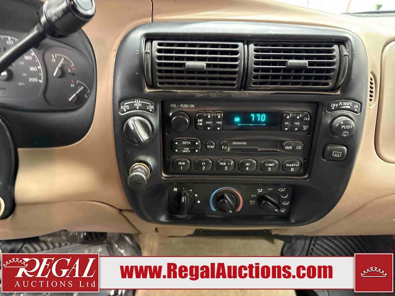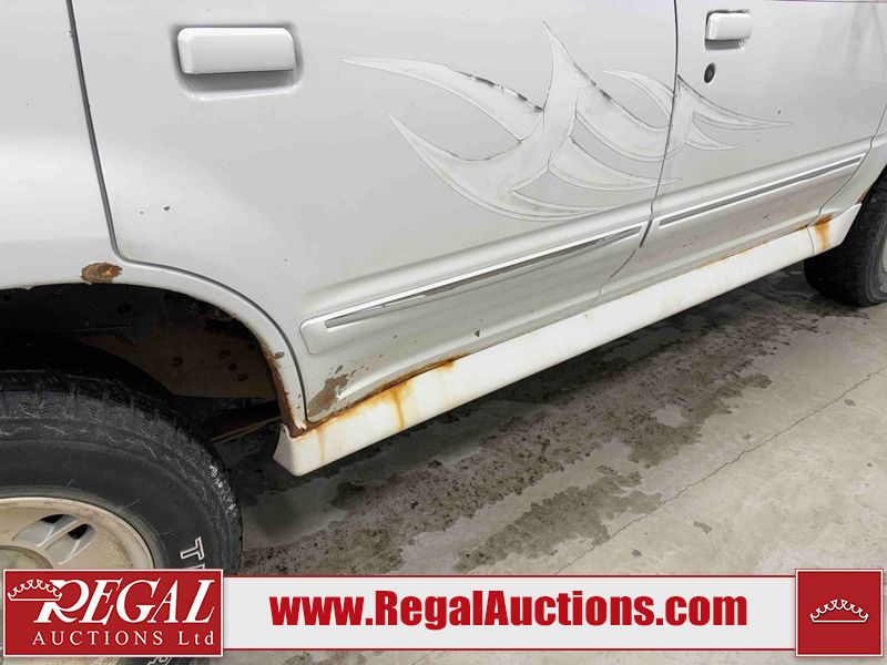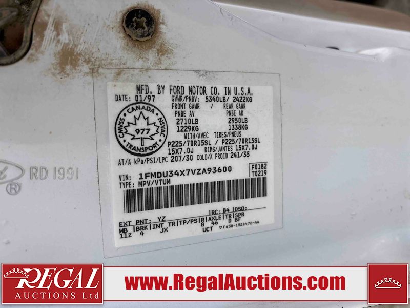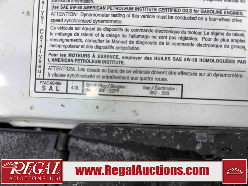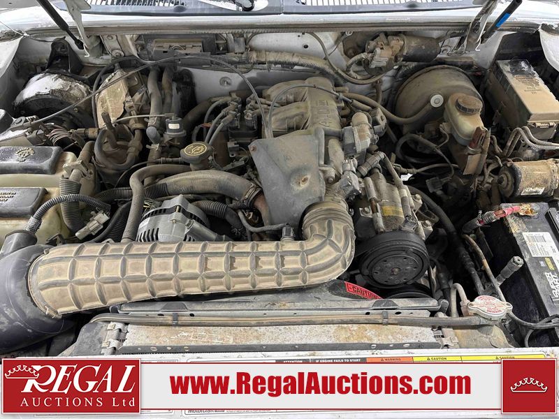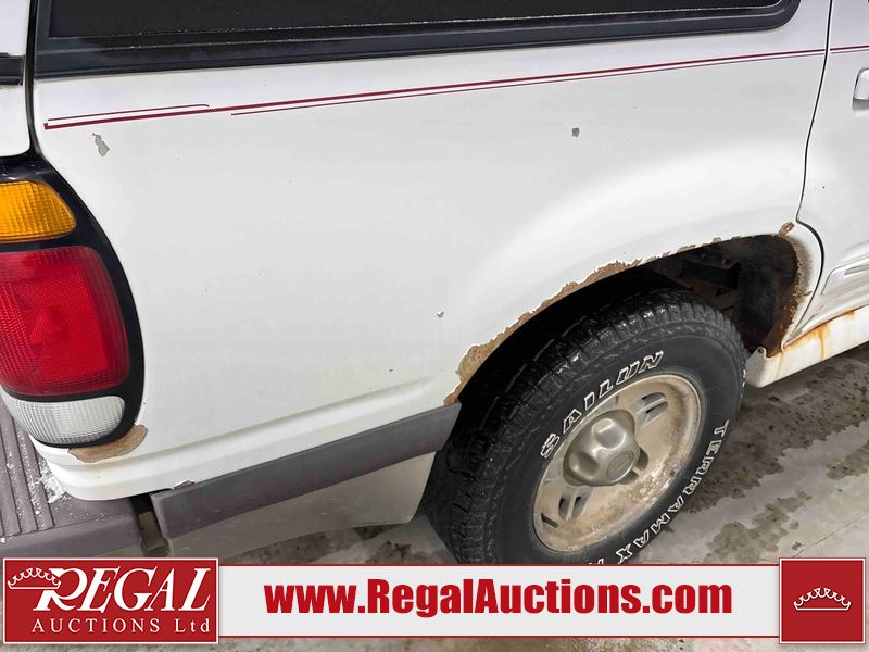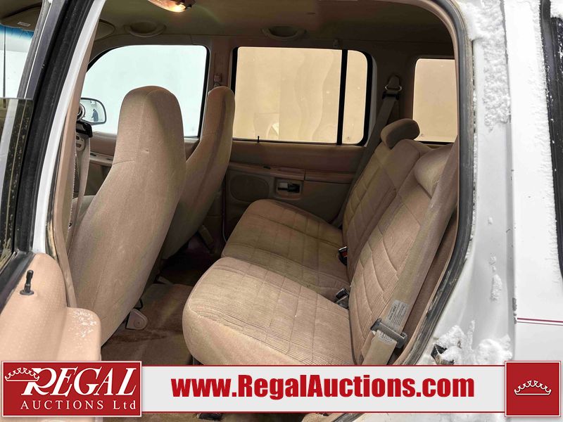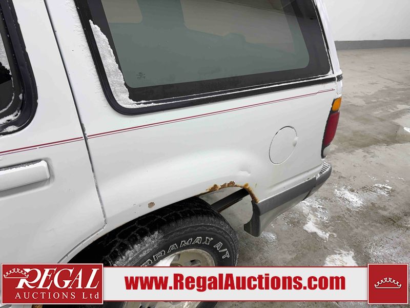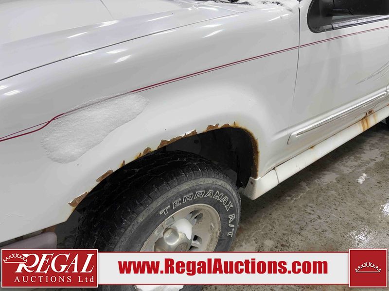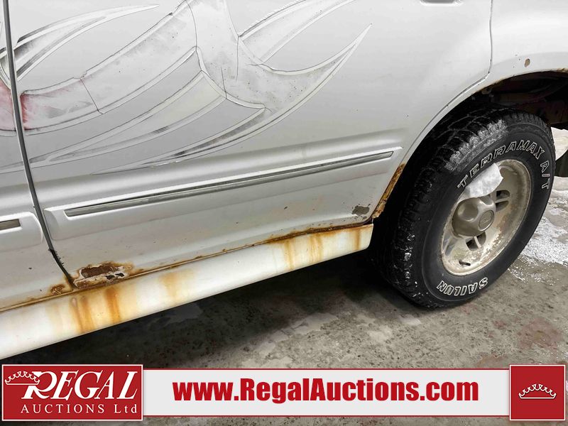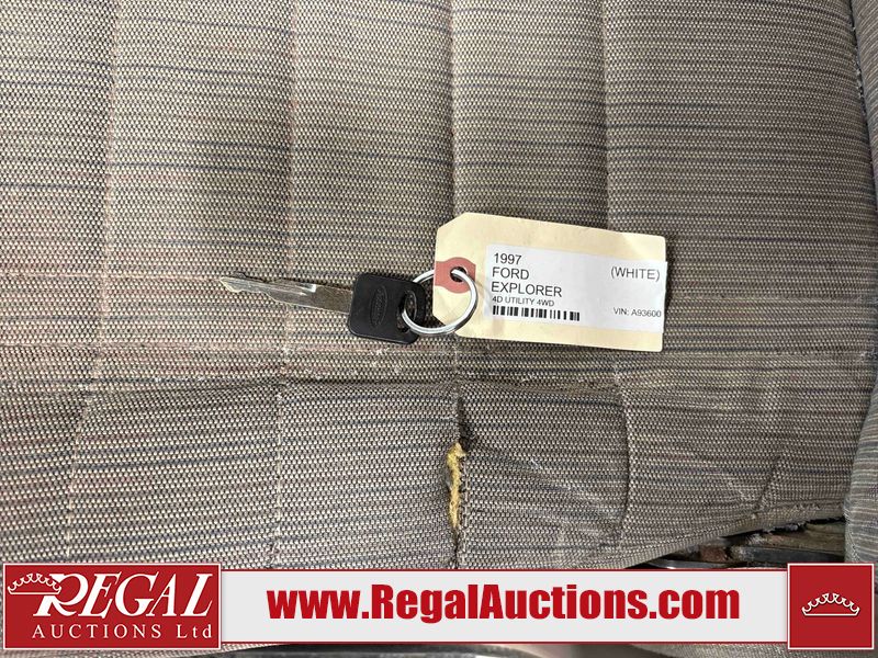 This 1997 FORD EXPLORER 4D UTILITY 4WD is powered by a 4.0 liter 6-cylinder gasoline engine and an automatic transmission. It is equipped with four-wheel drive. The SUV has seats for 5 people. The mileage is average considering the SUV's age. The Check Engine and ABS lights are on. The body looks to be in rough condition overall. There is substantial rust on the left rear fender. There is moderate hail on the hood and roof. There is moderate rust on the left front fender, left rear door, right rear fender, right rear door, and right front fender. There is slight rust on the front bumper, hood, roof, left front door, rear bumper, rear door, and right front door. There is slight hail on the rear door, right rear door, and right front door. There are incidental chips on the right rear fender and right front door. There are chips in many areas around the body. There are scratches in many areas around the body. There is dent damage on the left rear fender. The headlights are loose. The interior looks to be in good condition overall. The driver seat is torn. The windshield is chipped. The rear tires are worn. The front tires have lots of tread remaining. This SUV is being sold by a private individual. Regal Auctions Ltd. makes no guarantee or warranty, either express or implied, with respect to the data provided in this report. The information has been provided from the consignor and from sources generally believed to be reliable, however the accuracy of this information cannot be guaranteed by Regal Auctions.