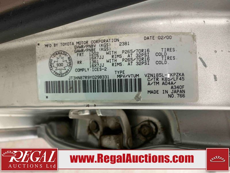 This 2000 TOYOTA 4RUNNER 4D UTILITY 4WD is powered by a 3.4L V6 gasoline engine and an automatic transmission. It is equipped with four-wheel drive. The SUV has seats for 5 people. The SUV has high mileage for its age. The vehicle has high-value options including a sunroof, leather upholstery, and power seats. The body looks to be in rough condition overall. There is extensive hail on the roof. There is moderate paint peeling on the front bumper, hood, and rear bumper. There is a fair amount of rust on the front bumper and rear bumper. There is a fair amount of hail on the left front fender and right rear fender. There are minor chips on the front bumper, grille, hood, and rear bumper. There are minimal scratches on the front bumper, hood, left front fender, left front door, left rear door, left rear fender, rear bumper, rear door, right rear fender, right rear door, right front door, and right front fender. There is slight rust on the hood, left rear fender, and rear door. There is hail on the left front door, left rear door, left rear fender, rear door, and right front fender. There are very minor chips in many areas around the body. There are very minor scratches on the roof. The interior looks to be in good condition overall. The drivers seat is torn. The dashboard is damaged. The driver side mirror is broken. The windshield is cracked. All of the tires have lots of tread remaining. This SUV is being sold by an automotive broker. The vehicle will be sold with the following declarations: Claims Total $10,000 - $14,999 (See Footnote 1) and Hail Damage (See Footnote 2). Footnotes: 1) The vehicle's total recorded insurance claims history is between $10,000 - $14,999. This is the amount of money that was paid out by an insurance company for repairs to cover claims against the vehicle's insurance policy. This information is provided by CarFax. 2) This vehicle shows signs of damage from a hail storm. Hail damage is not always clearly visible in photographs. Regal Auctions Ltd. makes no guarantee or warranty, either express or implied, with respect to the data provided in this report. The information has been provided from the consignor and from sources generally believed to be reliable, however the accuracy of this information cannot be guaranteed by Regal Auctions.