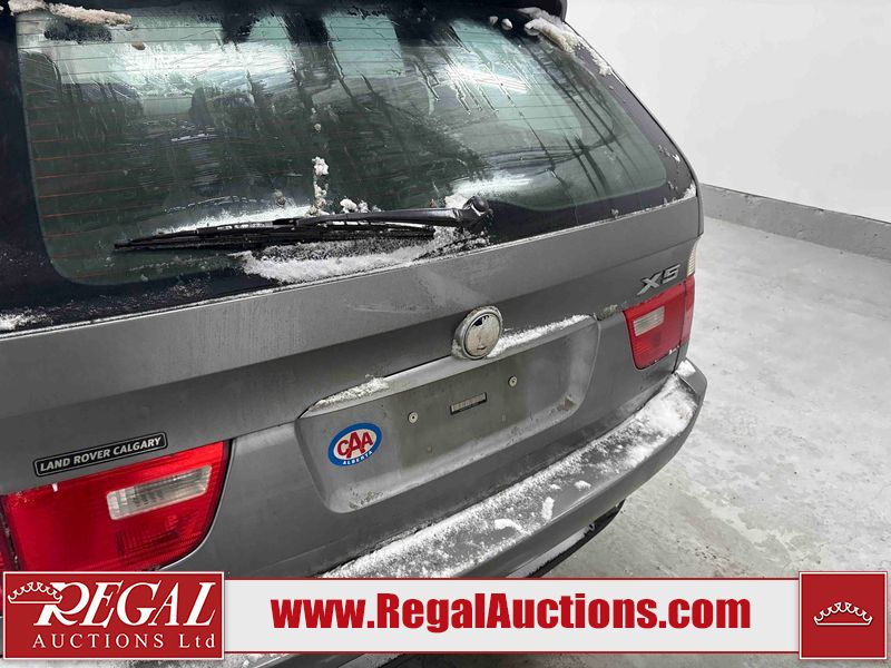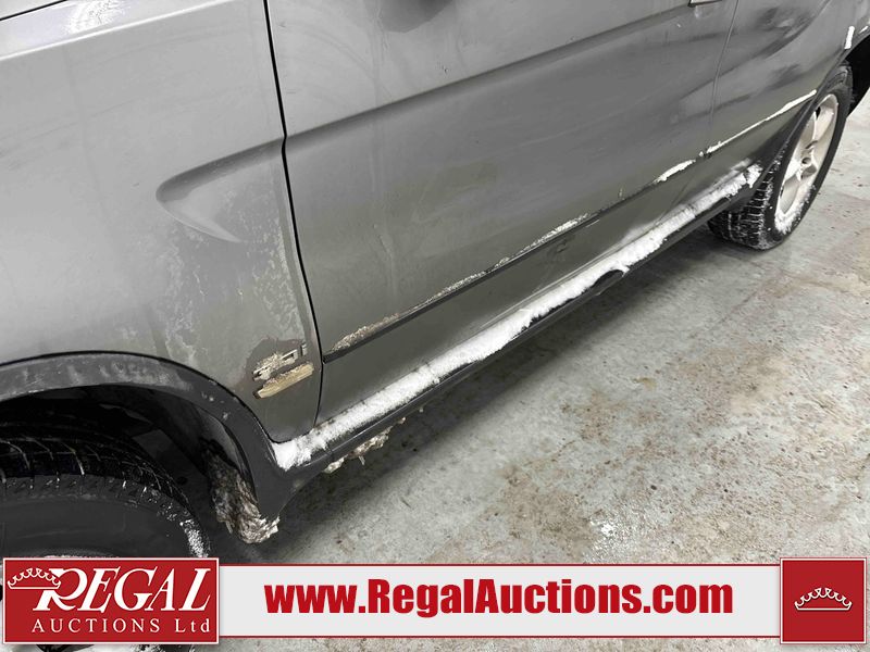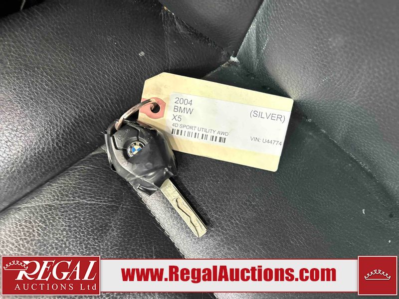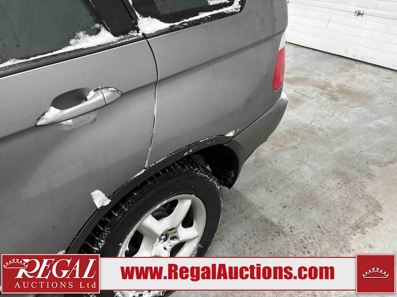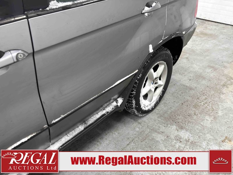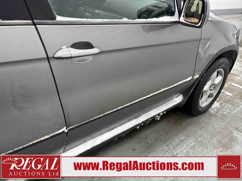 This 2004 BMW X5 4D SPORT UTILITY AWD is powered by a 3.0L 6-cylinder gasoline engine and an automatic transmission. It is equipped with all-wheel drive. The SUV has seats for 5 people. The SUV has high mileage for its age. The vehicle has high-value options including a sunroof, leather upholstery, and power seats. The Check Engine and Airbag lights are on. The body looks to be in fair condition overall. The left front door is broken. There is incidental rust on the hood and right rear fender. There is minor hail on the hood and roof. There are scratches on the rear bumper. There are very minor chips in many areas around the body. There are very minor scratches in many areas around the body. The tail lights are broken. The interior looks to be in good condition overall. The windshield is cracked. All of the tires have lots of tread remaining. This SUV is being sold by an automotive broker. The vehicle will be sold with the following declarations: Auctioneer Announcement "*DRIVERS SIDE DOOR CAN ONLY BE OPEN FROM THE INSIDE* *DISPLAY SCREEN WORKS INTERMITTENTLY*" and Hail Damage (See Footnote 1). Footnotes: 1) This vehicle shows signs of damage from a hail storm. Hail damage is not always clearly visible in photographs. Regal Auctions Ltd. makes no guarantee or warranty, either express or implied, with respect to the data provided in this report. The information has been provided from the consignor and from sources generally believed to be reliable, however the accuracy of this information cannot be guaranteed by Regal Auctions.