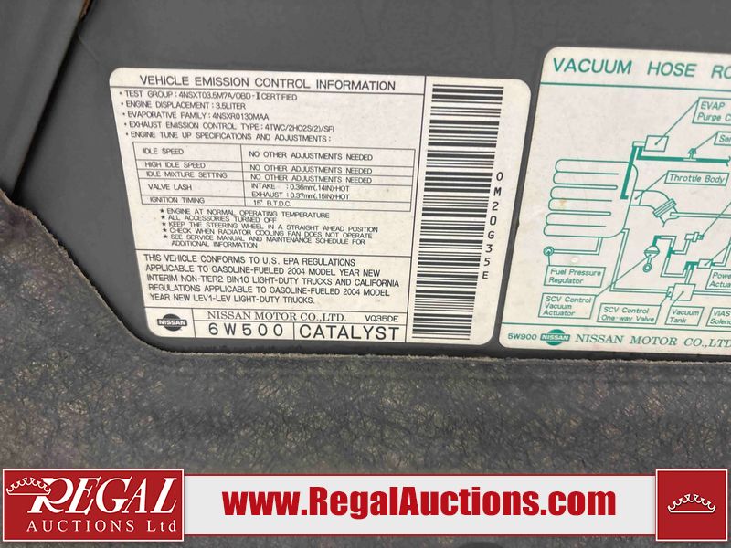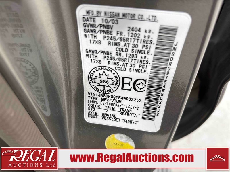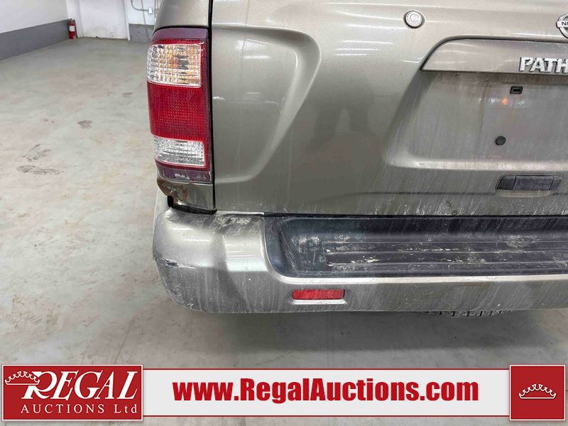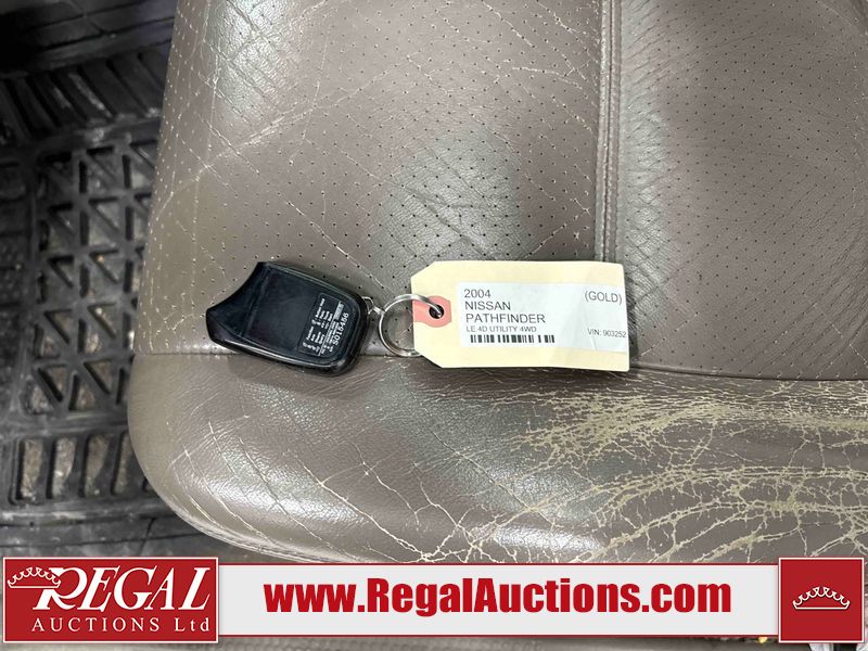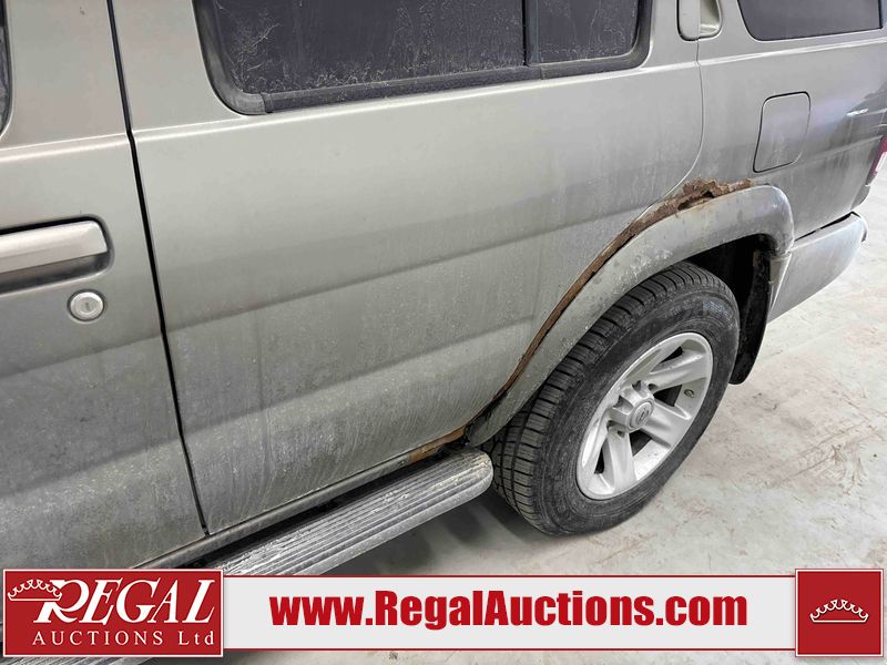 This 2004 NISSAN PATHFINDER LE 4D UTILITY 4WD is powered by a 3.5 liter 6-cylinder gasoline engine and an automatic transmission. It is equipped with four-wheel drive. The SUV has seats for 5 people. The mileage is average considering the SUV's age. The vehicle has high-value options, including a sunroof, leather upholstery, power seats, and heated seats. The Tire Pressure and Service 4wd lights are on. The body looks to be in rough condition overall. There is very bad rust on the left rear door, left rear fender, right rear fender, and right rear door. There is noteworthy rust on the roof. The rear bumper is cracked. There are minimal chips on the hood. There is rust on the hood. There is dent damage on the left rear fender. There are scratches on the rear bumper. There are chips in many areas around the body. There are scratches in many areas around the body. The fog lights are missing. The interior looks to be in good condition overall. The driver seat is worn The windshield is cracked. All of the tires have lots of tread remaining. This SUV is being sold by an automotive broker. Regal Auctions Ltd. makes no guarantee or warranty, either express or implied, with respect to the data provided in this report. The information has been provided from the consignor and from sources generally believed to be reliable, however the accuracy of this information cannot be guaranteed by Regal Auctions.
