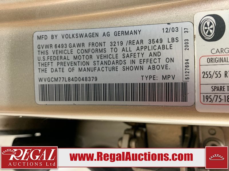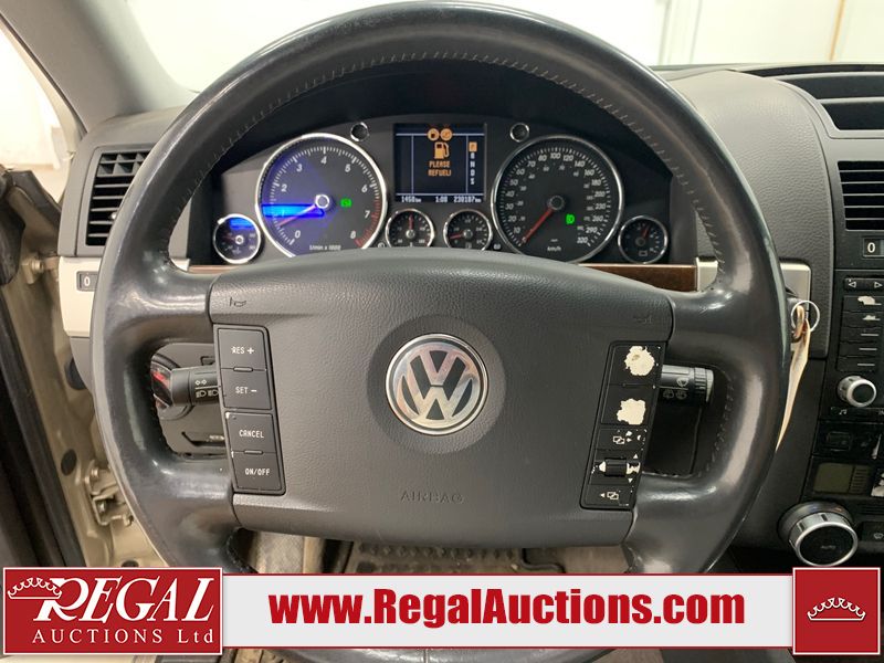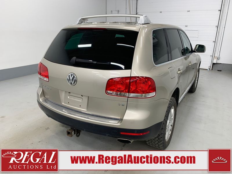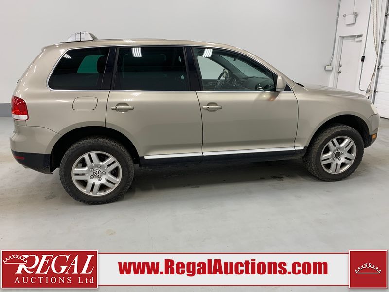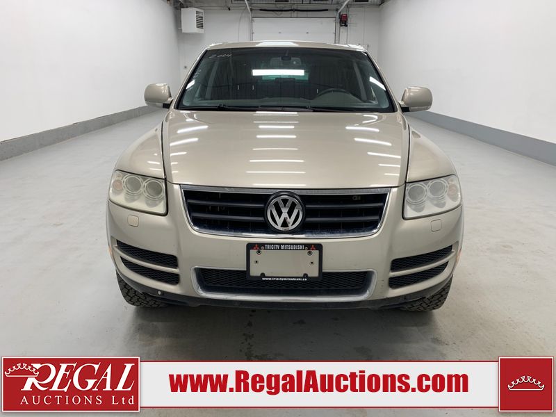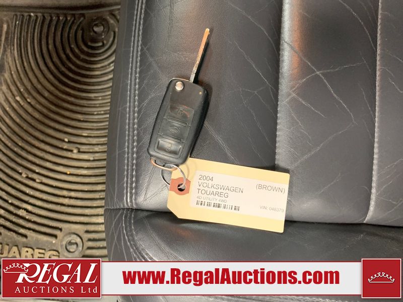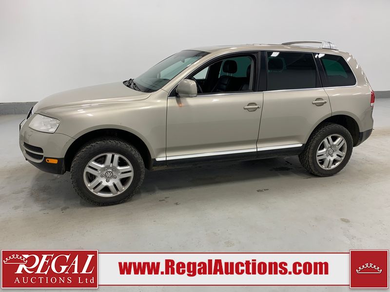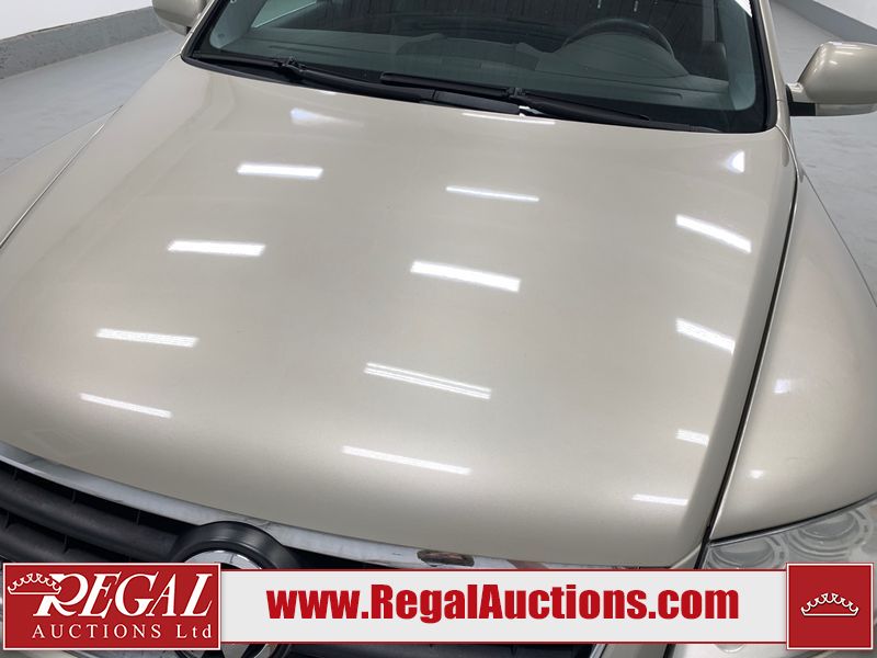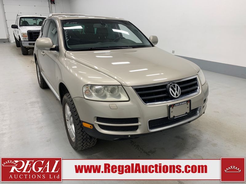 This 2004 VOLKSWAGEN TOUAREG 4D UTILITY 4WD is powered by a 4.2L V8 gasoline engine and an automatic transmission. It is equipped with four-wheel drive. The SUV has seats for 5 people. The mileage is average considering the SUV's age. The vehicle has high-value options including a sunroof, leather upholstery, and power seats. The body looks to be in fair condition overall. There are minor scratches on the front bumper, left front fender, left rear fender, right rear fender, right front door, and right front fender. There is minor rust on the roof and rear door. There are chips on the right rear door. There are very minor chips in many areas around the body. There are very minor scratches in many areas around the body. The interior looks to be in good condition overall. The windshield is chipped. The passenger front tire is worn. The rest of the tires all have lots of tread remaining. This SUV is being sold by an automotive broker. The vehicle will be sold with the following declarations: Out of Province - BC (See Footnote 1). Footnotes: 1) The vehicle's last registered jurisdiction is British Columbia. The purchaser must have the vehicle undergo and pass an Out of Province inspection before it can be registered in Alberta. Regal Auctions Ltd. makes no guarantee or warranty, either express or implied, with respect to the data provided in this report. The information has been provided from the consignor and from sources generally believed to be reliable, however the accuracy of this information cannot be guaranteed by Regal Auctions.