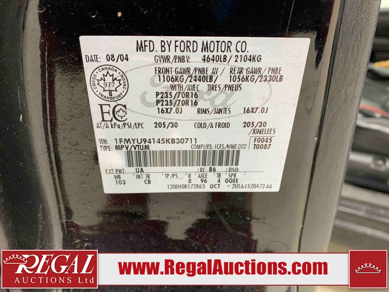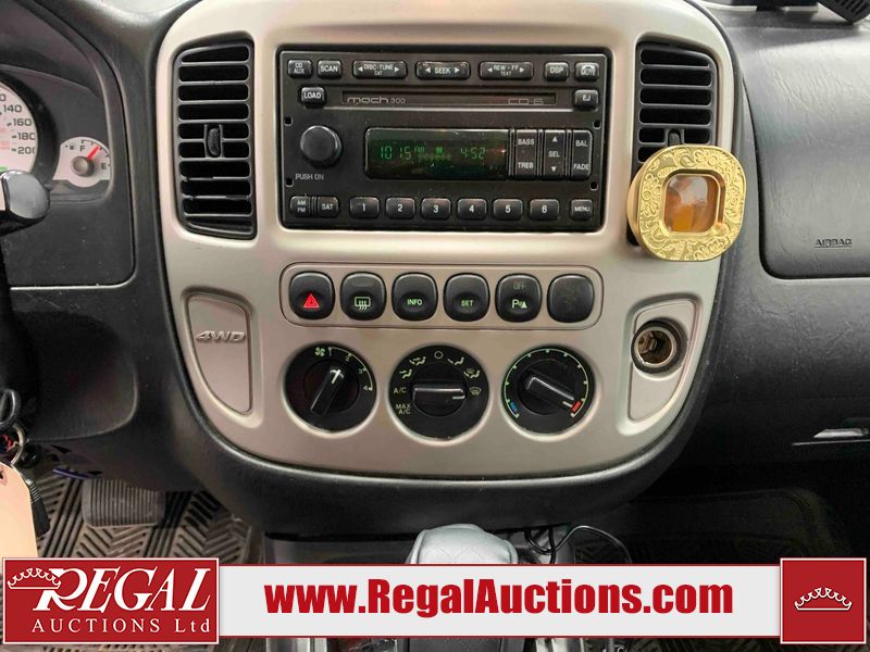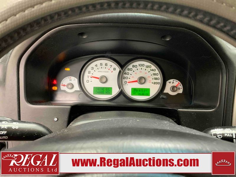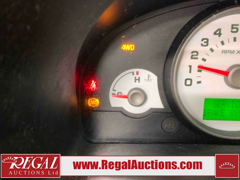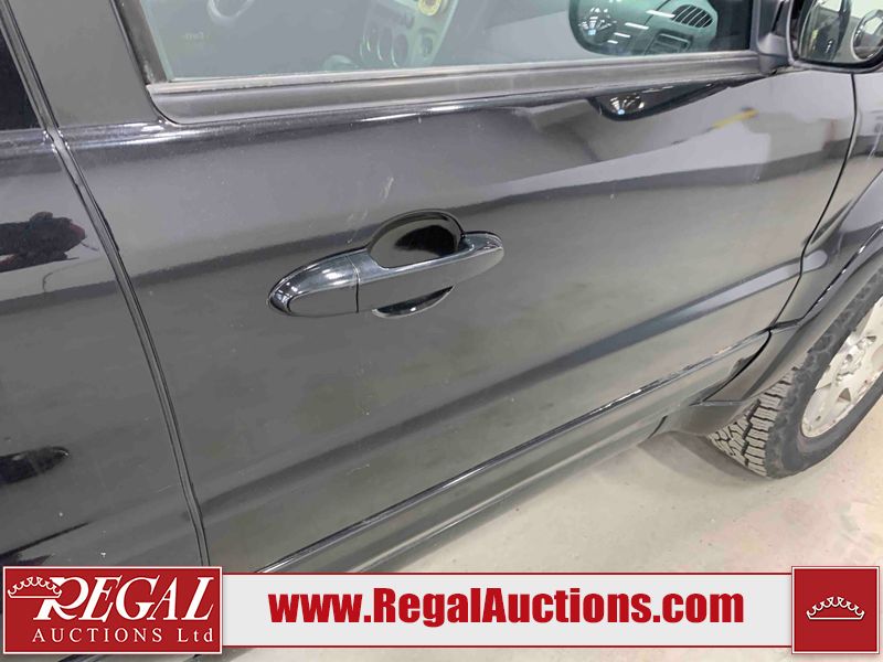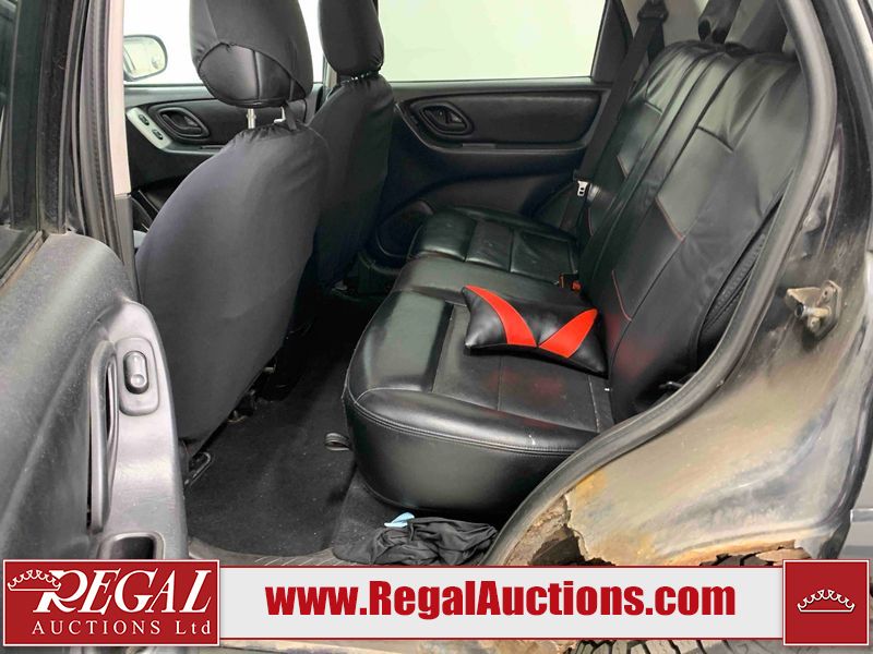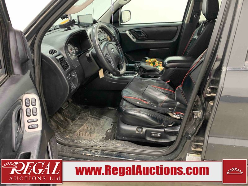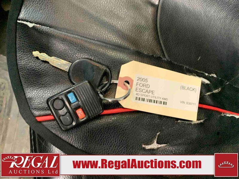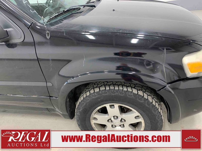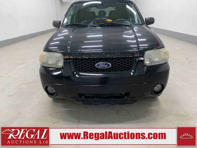 This 2005 FORD ESCAPE 4D SPORT UTILITY 4WD is powered by a 3.0 liter 6-cylinder gasoline engine and an automatic transmission. It is equipped with four-wheel drive. The SUV has seats for 5 people. The SUV has high mileage for its age. The vehicle has high-value options, including a sunroof, leather upholstery, power seats, and heated seats. The 4WD light is flashing. The ABS light is on. The body looks to be in rough condition overall. There is extensive rust on the left rear fender and right rear fender. The front bumper is broken. There is some rust on the hood, roof, and rear door. There are scratches on the front bumper, hood, left front fender, left front door, left rear door, rear bumper, and right rear door. There are incidental chips on the front bumper, hood, left front fender, left front door, left rear door, and right rear door. There is rust on the left rear door and right rear door. There is dent damage on the rear bumper. There are scratches in a few areas around the body. There is dent damage on the right rear door. There are chips in a few areas around the body. The fog lights are broken. The headlight lenses are hazy. The front right door and front right fender have been repainted. The interior looks to be in good condition overall. The driver's seat is worn. The windshield looks to be in good condition. All of the tires have lots of tread remaining. This SUV is being sold by an automotive broker. Regal Auctions Ltd. makes no guarantee or warranty, either express or implied, with respect to the data provided in this report. The information has been provided from the consignor and from sources generally believed to be reliable, however the accuracy of this information cannot be guaranteed by Regal Auctions.