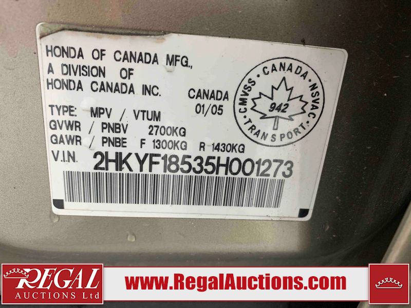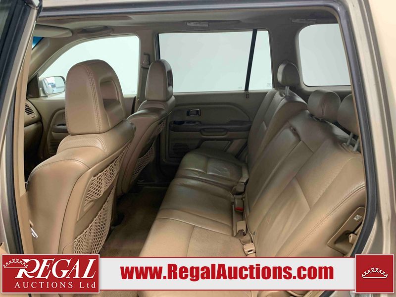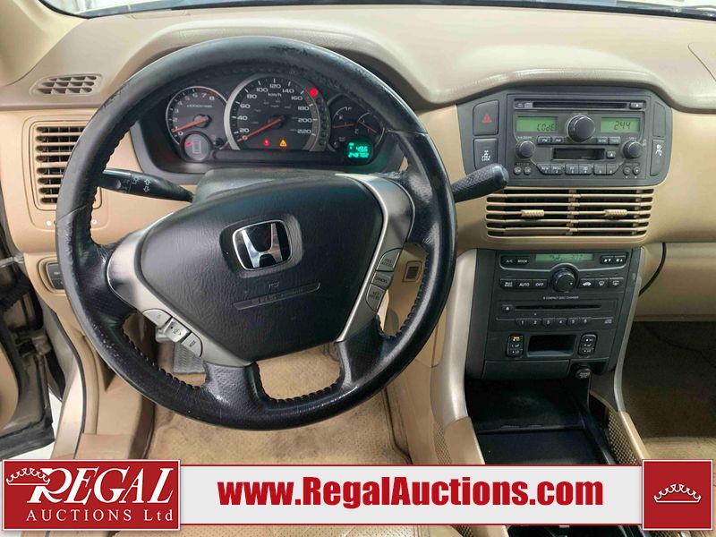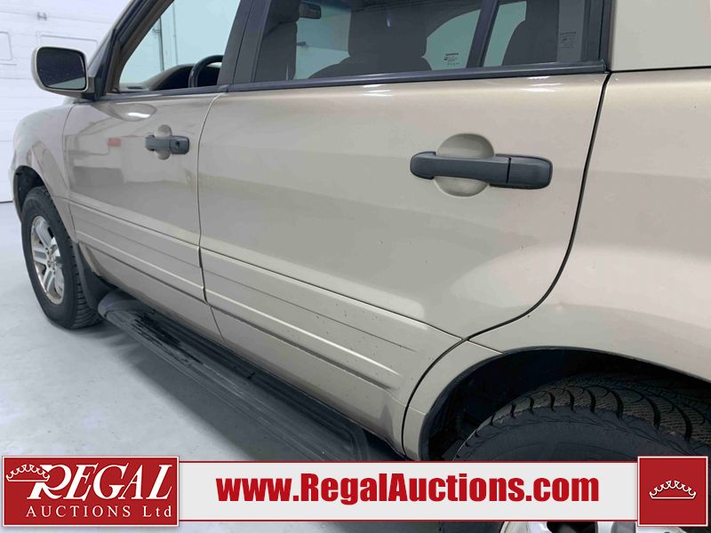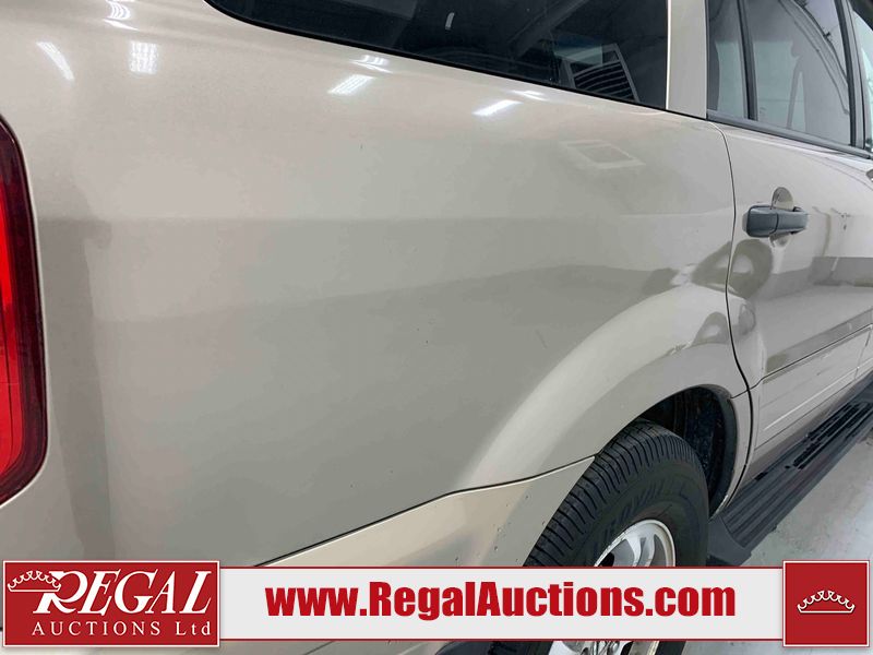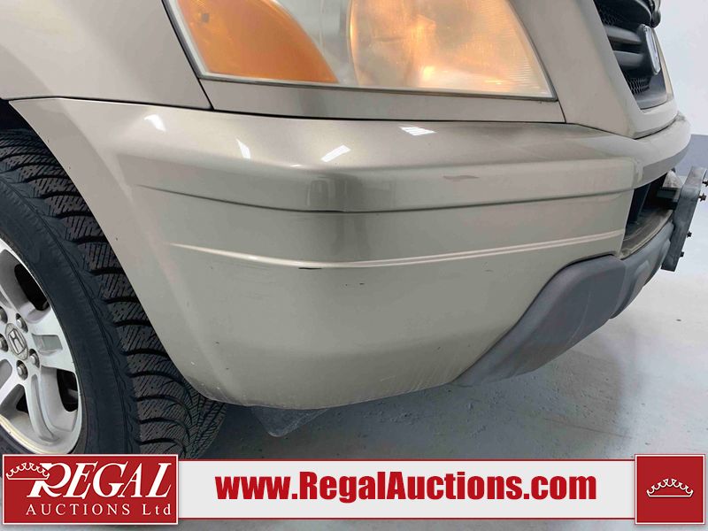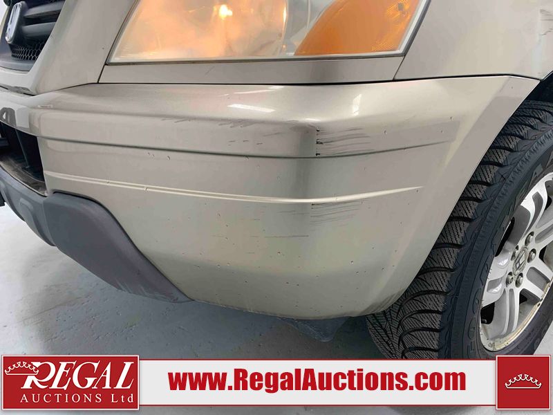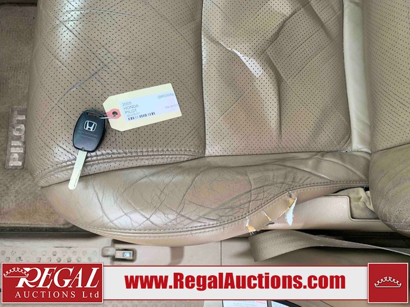 This 2005 HONDA PILOT 4D UTILITY is powered by a 3.5L V6 gasoline engine and an automatic transmission. It is equipped with four-wheel drive. The SUV has seats for 8 people. The mileage is average considering the SUV's age. The vehicle has high-value options including a sunroof, leather upholstery, power seats, and heated seats. The Stability Control light is on. The vehicle has some mechanical problems. The battery is dead. The vehicle requires a boost to start and may require a booster pack in order to stay running. (See Footnote 1) The body looks to be in fair condition overall. There are minor scratches on the front bumper, left front fender, rear bumper, and right rear door. There is dent damage on the left front fender and right front door. There are very minor chips in many areas around the body. There are very minor scratches in many areas around the body. The headlight lenses are hazy. The interior looks to be in fair condition overall. The dashboard, rear seats, and doors are worn. The driver's seat and passenger seat are torn. The windshield is chipped. All of the tires have lots of tread remaining. This SUV is being sold by an automotive broker. The vehicle will be sold with the following declarations: Claims Total Above $20,000 (See Footnote 2), Out of Province - BC (See Footnote 3), and Out of Province - AB OVERRIDE (See Footnote 4). Footnotes: 1) We've identified some mechanical problems with the vehicle. However, the vehicle has not undergone a mechanical inspection and our findings are not to be considered a complete evaluation of the vehicle's mechanical condition. Review our Buyer Protection Policy to see how Regal Auctions protects you from undisclosed mechanical problems. 2) The vehicle's total recorded insurance claims history is above $20,000. This is the amount of money that was paid out by an insurance company for repairs to cover claims against the vehicle's insurance policy. This information is provided by CarFax. 3) The vehicle's last registered jurisdiction is British Columbia. The purchaser must have the vehicle undergo and pass an Out of Province inspection before it can be registered in Alberta. 4) Out of province inspection for registering the vehicle in Alberta has been completed. Regal Auctions Ltd. makes no guarantee or warranty, either express or implied, with respect to the data provided in this report. The information has been provided from the consignor and from sources generally believed to be reliable, however the accuracy of this information cannot be guaranteed by Regal Auctions.