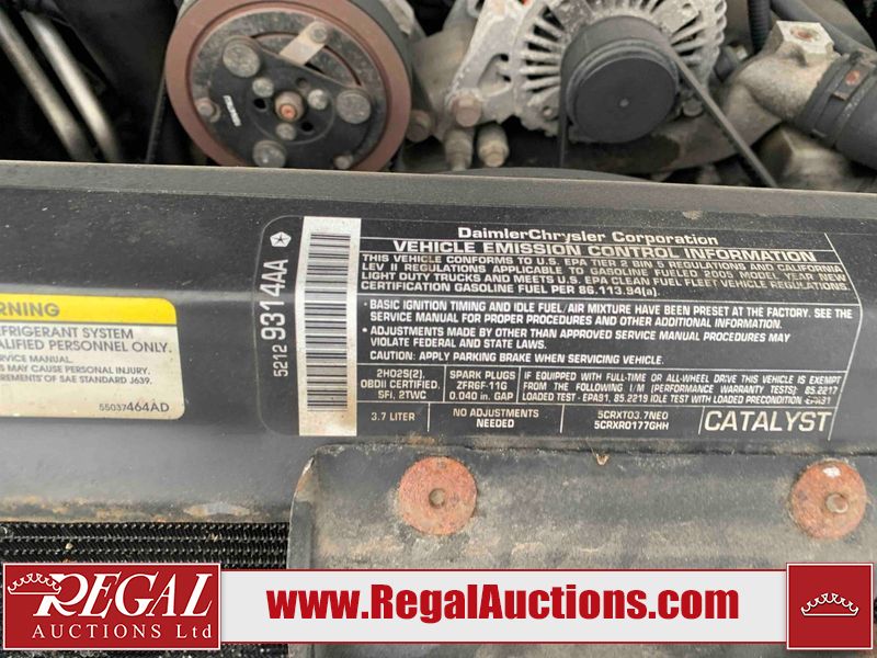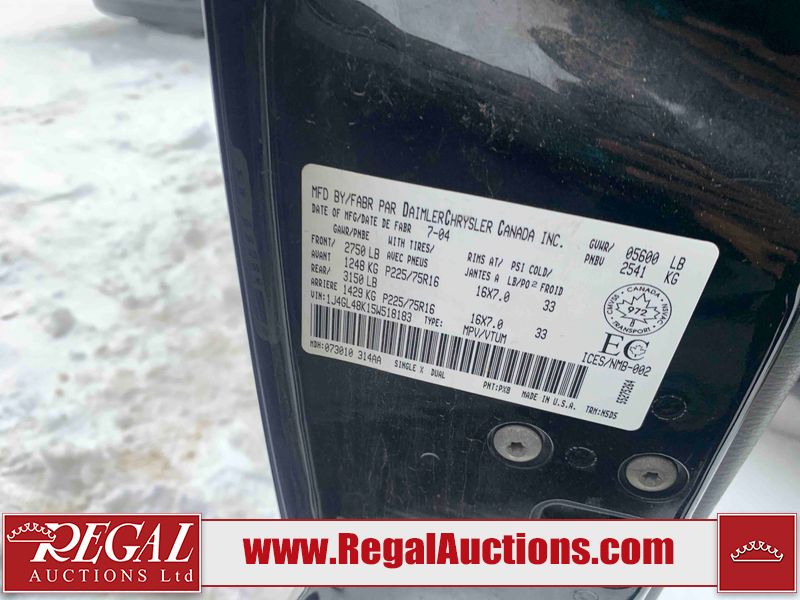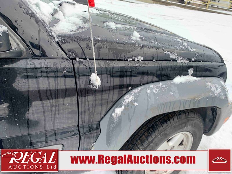 This 2005 JEEP LIBERTY 4D UTILITY 4WD is powered by a 3.7L V6 cylinder gasoline engine and an automatic transmission. It is equipped with four-wheel drive. The SUV has seats for 5 people. The SUV has low mileage for its age. The vehicle has some mechanical problems. The vehicle is not drivable. It will have to be towed. The engine will not start as it has no keys. It's engine, transmission, and drivetrain cannot be confirmed. (See Footnote 1) The body looks to be in rough condition overall. There is extensive rust on the right rear door. There is moderate paint peeling on the right rear door. There are chips on the front bumper, grille, hood, roof, left front fender, left front door, left rear door, left rear fender, rear bumper, rear door, right rear fender, right rear door, right front door, and right front fender. There are minor scratches on the front bumper, hood, left front door, left rear door, left rear fender, rear bumper, rear door, right rear fender, right rear door, right front door, and right front fender. There are very minor scratches on the left front fender. The paint on the grille is fading. This unit is dirty, not all damages can be determined. The interior looks to be in good condition overall. The windshield is cracked. All of the tires have lots of tread remaining. This SUV is being sold by the fleet department of a company or government body. The vehicle will be sold with the following declarations: Abandoned Vehicle (See Footnote 2), As Is - Where Is (See Footnote 3), and True Mileage Unknown (See Footnote 4). Footnotes: 1) We've identified some mechanical problems with the vehicle. However, the vehicle has not undergone a mechanical inspection and our findings are not to be considered a complete evaluation of the vehicle's mechanical condition. Review our Buyer Protection Policy to see how Regal Auctions protects you from undisclosed mechanical problems. 2) This vehicle has been abandoned by its owner and is being sold by the government. The Vehicle Seizure and Removal Regulation of the Traffic Safety Act of Alberta provides that the purchaser will get good title to the vehicle. Any liens registered against the vehicle will be unenforceable by the creditor. However, the vehicle may continue to have lien registrations against it in the Alberta Registries System. It is the the responsibility of the purchaser to have any lien registrations removed. Regal Auctions will not provide any lien discharge or other paperwork with the exception of a letter from the Government of Alberta authorizing the sale of the vehicle. 3) This vehicle will be sold "AS IS and WHERE IS". The sale will be final. The Buyer Protection Policy will not apply to the purchase of this vehicle. This vehicle is not eligible for return. 4) The accuracy and history of the odometer reading cannot be verified and the current odometer reading is not believed to be correct. Regal Auctions Ltd. makes no guarantee or warranty, either express or implied, with respect to the data provided in this report. The information has been provided from the consignor and from sources generally believed to be reliable, however the accuracy of this information cannot be guaranteed by Regal Auctions.