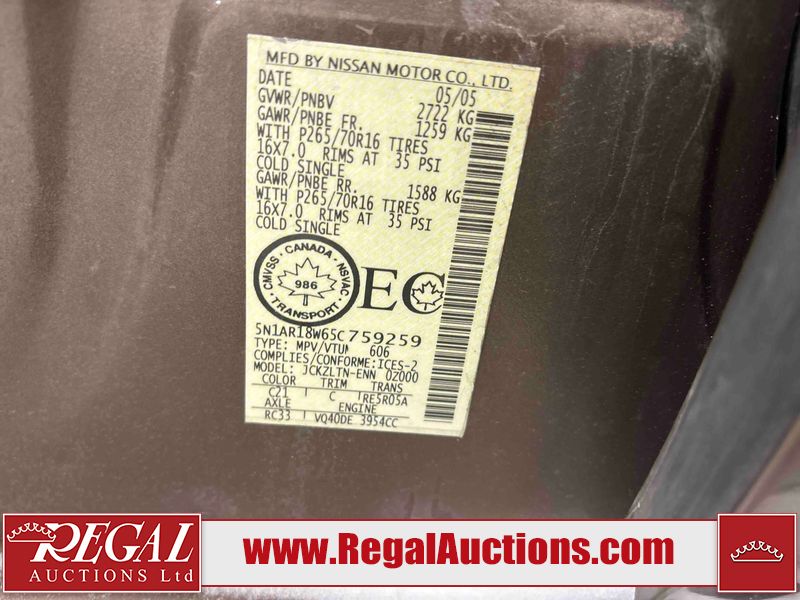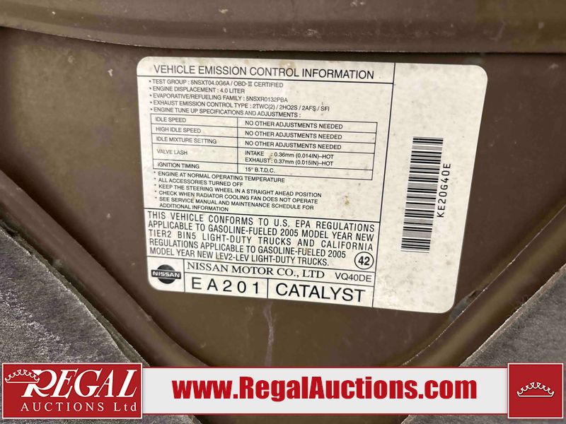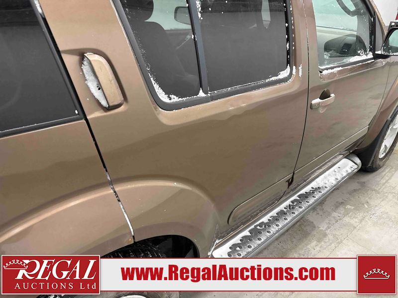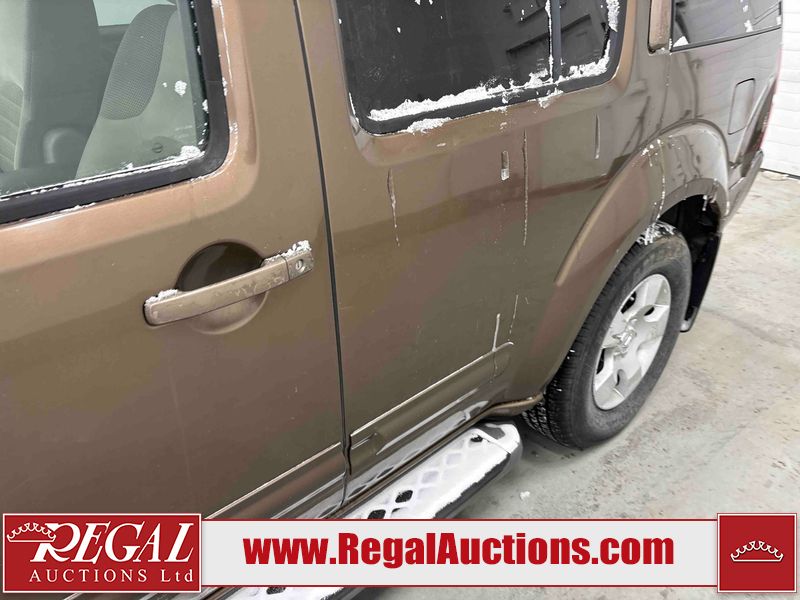 This 2005 NISSAN PATHFINDER SE 4D UTILITY 4WD is powered by a 4.0 liter 6-cylinder gasoline engine and an automatic transmission. It is equipped with four-wheel drive. The SUV has seats for 7 people. The mileage is average considering the SUV's age. The vehicle has high-value options, including power seats. The Airbag and Stability Control lights are on. The vehicle has some mechanical problems. The engine runs rough. (See Footnote 1) The body looks to be in rough condition overall. There is considerable hail on the hood, roof, left front fender, and rear door. There is substantial dent damage on the left rear fender. There is considerable rust on the right rear fender. The front bumper is broken. There is a fair amount of rust on the left rear fender, rear door, and right front fender. There is a fair amount of hail on the right rear door. There is rust on the roof, left front fender, and right rear door. There is minor hail on the left front door, left rear door, right rear fender, and right front door. There are chips in many areas around the body. There are scratches in many areas around the body. There is dent damage on the front bumper. The interior looks to be in good condition overall. The windshield is cracked. All of the tires have lots of tread remaining. This SUV is being sold by an automotive broker. The vehicle will be sold with the following declarations: Auctioneer Announcement "*RUNS ROUGH* *AIRBAG LIGHT ON* ", Hail Damage (See Footnote 2), and Mechanical Problems (See Footnote 1). Footnotes: 1) We've identified some mechanical problems with the vehicle. However, the vehicle has not undergone a mechanical inspection and our findings are not to be considered a complete evaluation of the vehicle's mechanical condition. Review our Buyer Protection Policy to see how Regal Auctions protects you from undisclosed mechanical problems. 2) This vehicle shows signs of damage from a hail storm. Hail damage is not always clearly visible in photographs. Regal Auctions Ltd. makes no guarantee or warranty, either express or implied, with respect to the data provided in this report. The information has been provided from the consignor and from sources generally believed to be reliable, however the accuracy of this information cannot be guaranteed by Regal Auctions.
