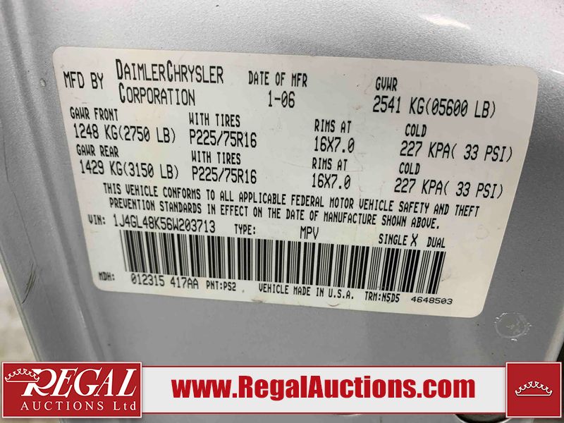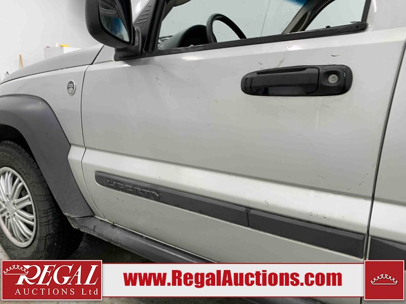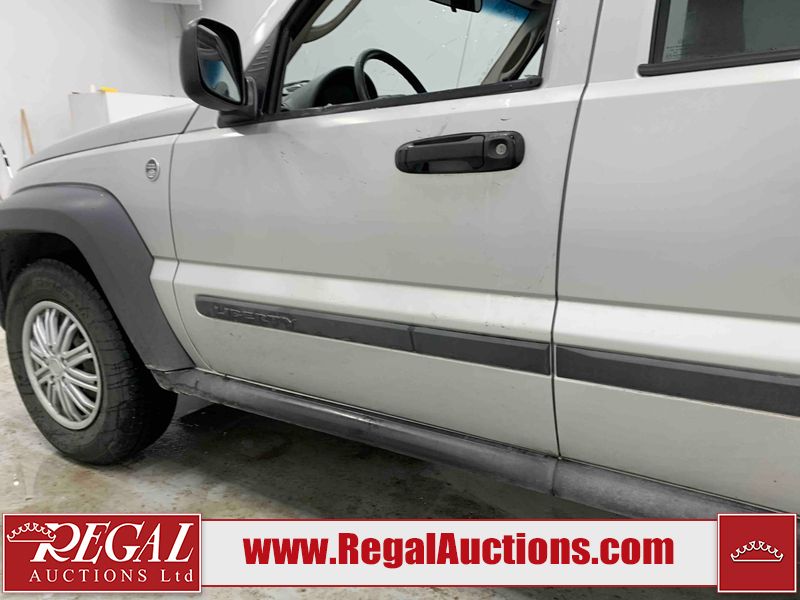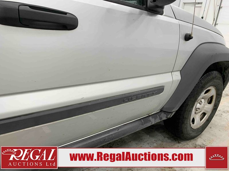 This 2006 JEEP LIBERTY 4D UTILITY 4WD is powered by a 3.7L V6 gasoline engine and an automatic transmission. It is equipped with four-wheel drive. The SUV has seats for 5 people. The SUV has high mileage for its age. The odometer is in miles and its reading, 180,556 miles, translates into 288,889 kilometers. The body looks to be in fair condition overall. There is noteworthy paint peeling on the left front door. There are chips on the grille, hood, roof, left front fender, left front door, and left rear door. There are slight scratches on the hood and roof. There is slight paint peeling on the left front fender. There is rust on the left rear door. There are very minor chips in many areas around the body. There are very minor scratches in many areas around the body. The interior looks to be in fair condition overall. There are pronounced stains on the driver's seat and passenger seat. The rear seats are dirty. The windshield is damaged. All of the tires have lots of tread remaining. This SUV is being sold by an automotive broker. The vehicle will be sold with the following declarations: Odometer in Miles (See Footnote 1). Footnotes: 1) The vehicle's odometer reading is in miles and not kilometers. (1 Mile = 1.6 Kilometers). Regal Auctions Ltd. makes no guarantee or warranty, either express or implied, with respect to the data provided in this report. The information has been provided from the consignor and from sources generally believed to be reliable, however the accuracy of this information cannot be guaranteed by Regal Auctions.