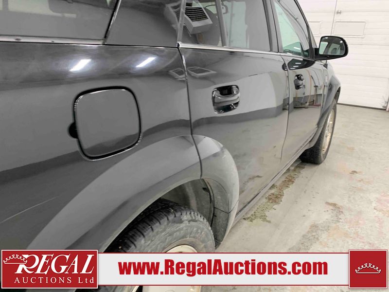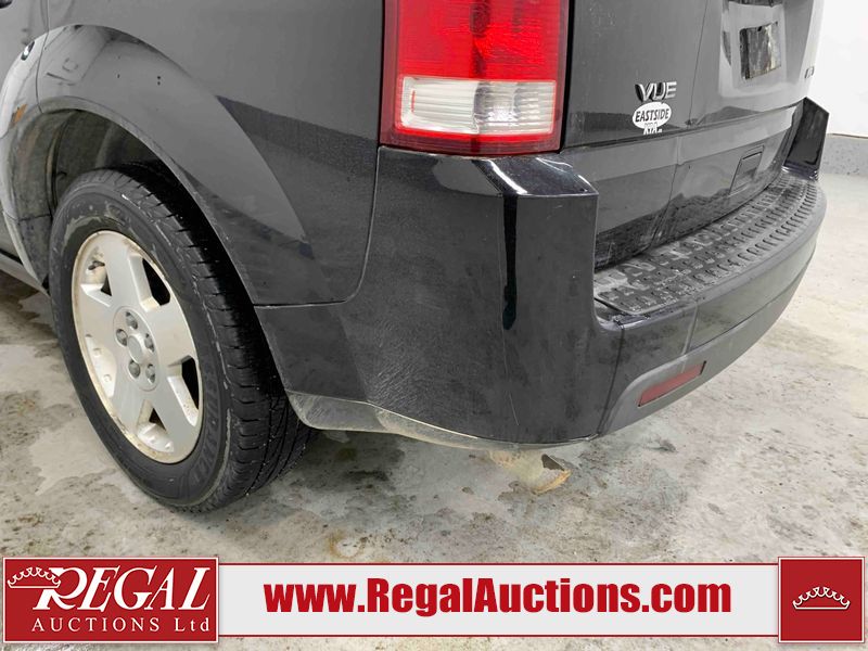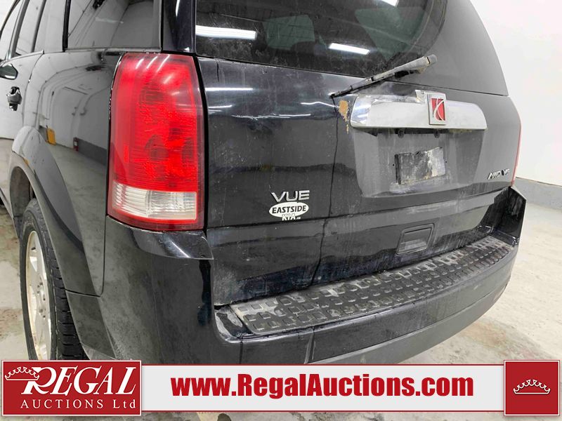 This 2006 SATURN VUE 4D SPORT UTILITY AWD is powered by a V6 gasoline engine and an automatic transmission. It is equipped with all-wheel drive. The SUV has seats for 5 people. The SUV has high mileage for its age. The vehicle has high-value options including leather upholstery, power seats, and heated seats. The Airbag light is on. The vehicle has some mechanical problems.**EXHAUST REQUIRES REPAIR** **FRONT END NOISE** The body looks to be in fair condition overall. There is conspicuous rust on the rear door. There are chips on the front bumper and rear bumper. There are incidental scratches on the front bumper, hood, roof, left front fender, left front door, left rear door, left rear fender, rear bumper, rear door, right rear fender, right rear door, right front door, and right front fender. There is rust on the hood. There are very minor chips in many areas around the body. The interior looks to be in fair condition overall. The driver's seat and passenger seat are torn. The rear seats are stained. The doors are dirty. The windshield is chipped. All of the tires have lots of tread remaining. This SUV is being sold by an automotive broker. The vehicle will be sold with the following declarations: Mechanical Problems (See Footnote 1). Footnotes: 1) We've identified some mechanical problems with the vehicle. However, the vehicle has not undergone a mechanical inspection and our findings are not to be considered a complete evaluation of the vehicle's mechanical condition. Review our Buyer Protection Policy to see how Regal Auctions protects you from undisclosed mechanical problems. Regal Auctions Ltd. makes no guarantee or warranty, either express or implied, with respect to the data provided in this report. The information has been provided from the consignor and from sources generally believed to be reliable, however the accuracy of this information cannot be guaranteed by Regal Auctions.