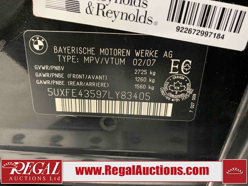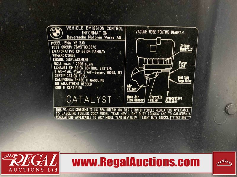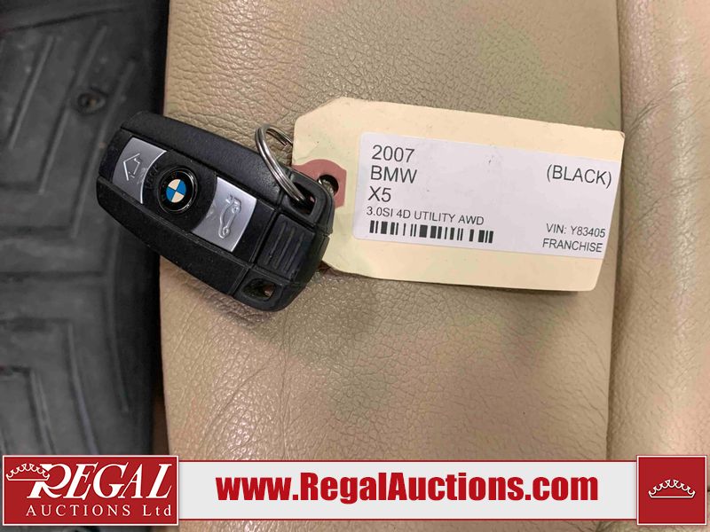 This 2007 BMW X5 4D UTILITY AWD is powered by a 3.0L 6-cylinder gasoline engine and an automatic transmission. It is equipped with all-wheel drive. The SUV has seats for 5 people. The mileage is average considering the SUV's age. The vehicle has high-value options including a sunroof, leather upholstery, power seats, and heated seats. The body looks to be in fair condition overall. There are moderate scratches on the front bumper. There is moderate paint fade on the left front fender, left rear fender, and right front fender. There are minor chips on the front bumper, hood, and right rear door. There are slight scratches on the left front door, left rear door, left rear fender, rear bumper, right rear fender, right rear door, and right front door. The front bumper and rear bumper are missing parts. There are very minor scratches in a few areas around the body. There are very minor chips in a few areas around the body. The headlight lenses are hazy. The interior looks to be in good condition overall. The windshield is cracked. All of the tires have lots of tread remaining. This SUV is being sold by a franchise dealership. The vehicle will be sold with the following declarations: Dealership Trade-In (See Footnote 1). Footnotes: 1) This vehicle is being sold on behalf of a franchise dealership. Franchise Dealerships are automotive sales companies who are directly connected to an automotive manufacturer like Ford, Tesla, Honda, BMW, or similar. Regal Auctions Ltd. makes no guarantee or warranty, either express or implied, with respect to the data provided in this report. The information has been provided from the consignor and from sources generally believed to be reliable, however the accuracy of this information cannot be guaranteed by Regal Auctions.