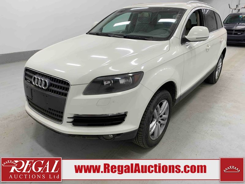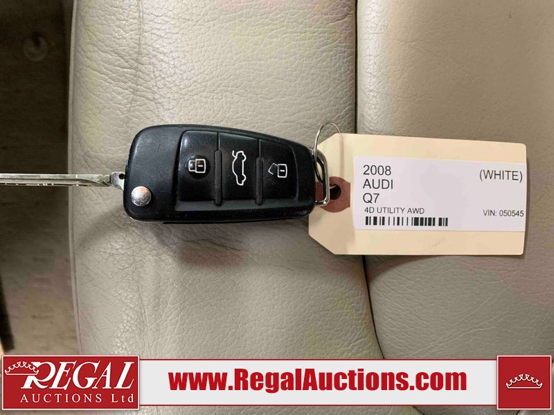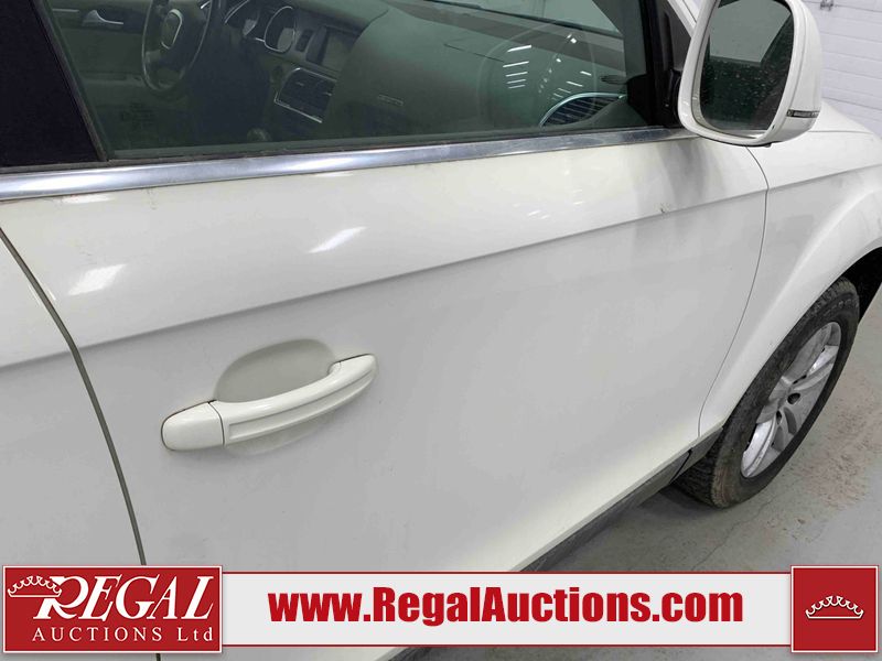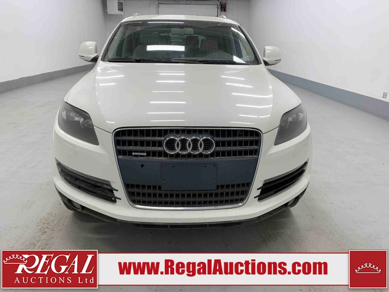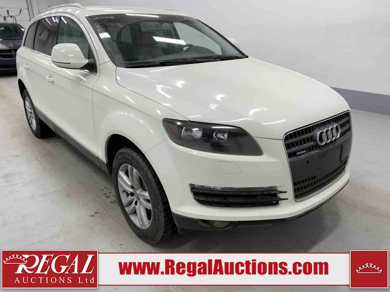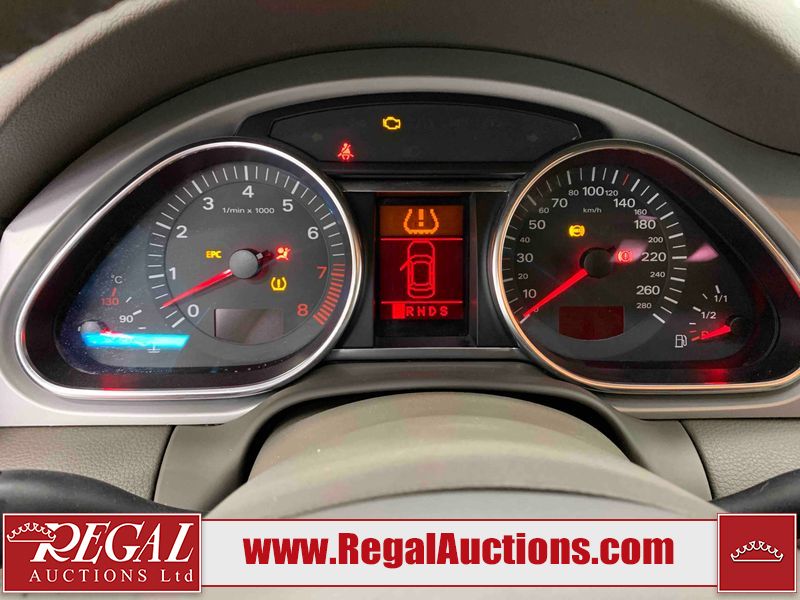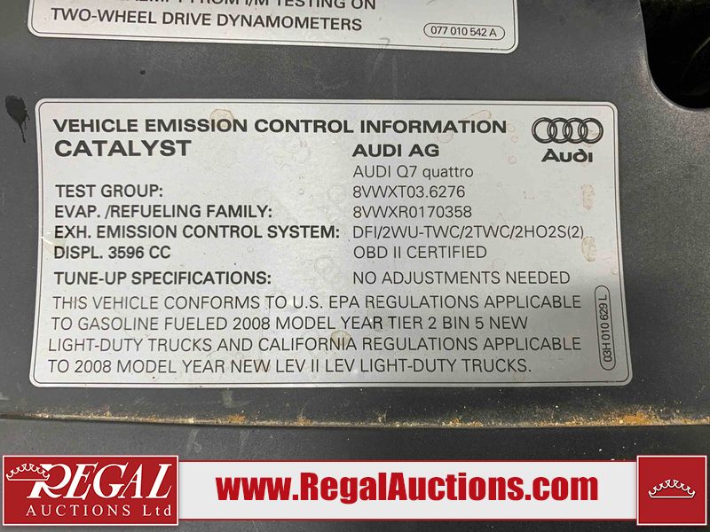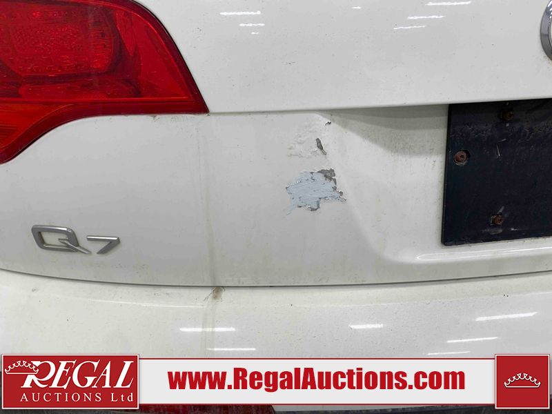 This 2008 AUDI Q7 4D UTILITY is powered by a 3.6L V6 gasoline engine and an automatic transmission. It is equipped with all-wheel drive. The SUV has seats for 7 people. The vehicle has high-value options including leather upholstery, power/heated seats, and a power liftgate. The Airbag, Check Engine, and Brake System lights are on. The body looks to be in fair condition overall. There is extensive hail on the hood. The grille is cracked. There is conspicuous paint peeling on the rear door. There are minimal chips on the front bumper. There is hail on the roof. There is slight rust on the left rear door, right rear fender, right rear door, and right front door. There is paint peeling on the right rear door. There are minor chips in many areas around the body. There are minor scratches in many areas around the body. The interior looks to be in good condition overall. The middle-row seatbelt is damaged and preventing the middle-row seating from folding up. The glove box is inoperable. The windshield looks to be in good condition. All of the tires have lots of tread remaining. This SUV is being sold by an automotive broker. The vehicle will be sold with the following declarations: Out of Province - SK (See Footnote 1), True Mileage Unknown (See Footnote 2), and Hail Damage (See Footnote 3). Footnotes: 1) The vehicle's last registered jurisdiction is Saskatchewan. The purchaser must have the vehicle undergo and pass an Out of Province inspection before it can be registered in Alberta. 2) The accuracy and history of the odometer reading cannot be verified and the current odometer reading is not believed to be correct. 3) This vehicle shows signs of damage from a hail storm. Hail damage is not always clearly visible in photographs. Regal Auctions Ltd. makes no guarantee or warranty, either express or implied, with respect to the data provided in this report. The information has been provided from the consignor and from sources generally believed to be reliable, however the accuracy of this information cannot be guaranteed by Regal Auctions.
