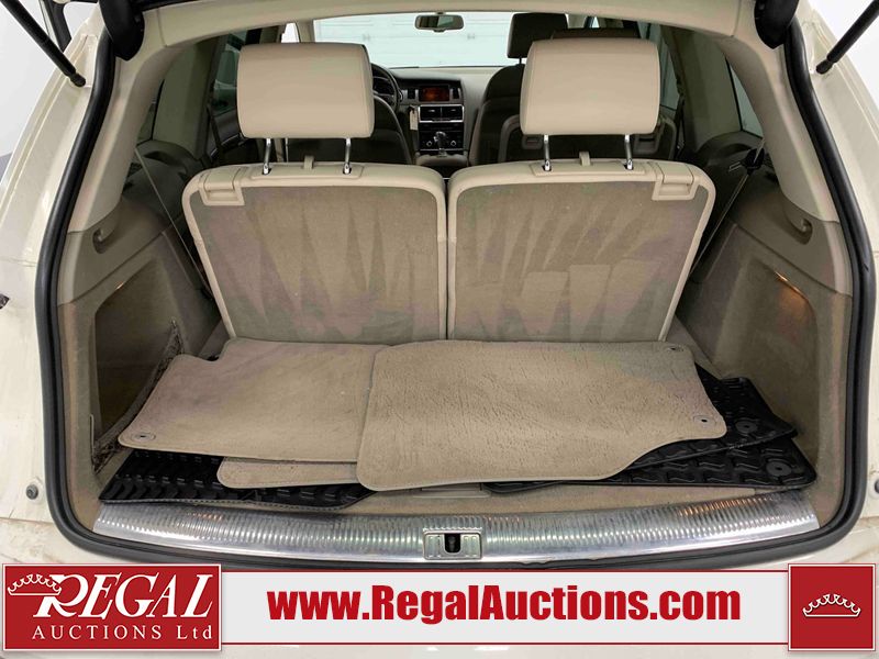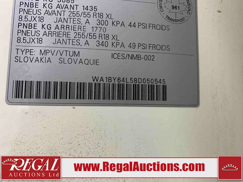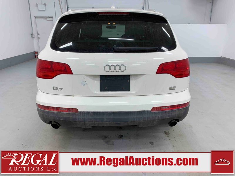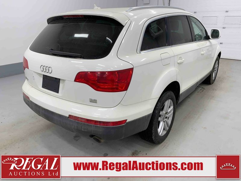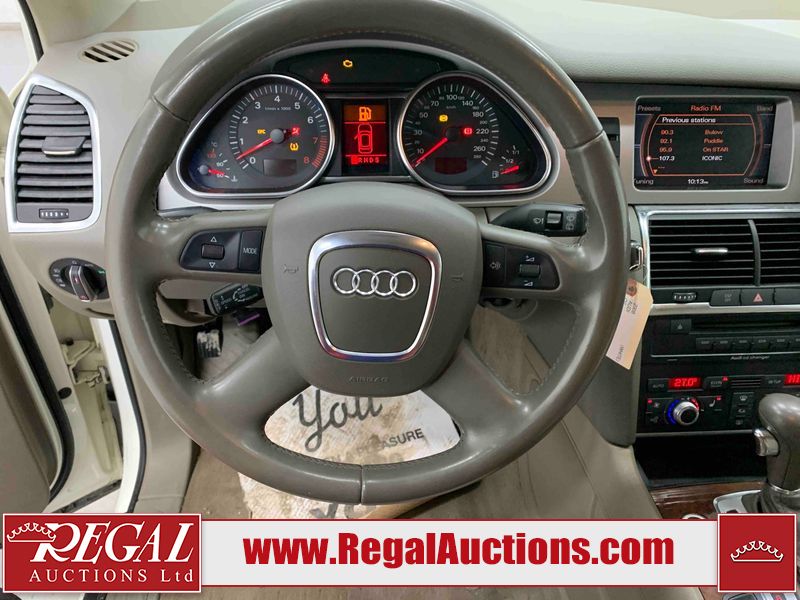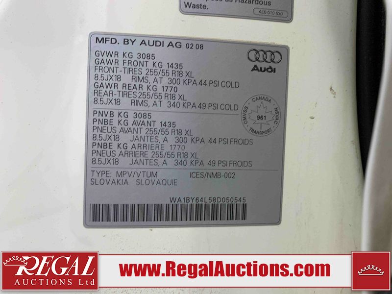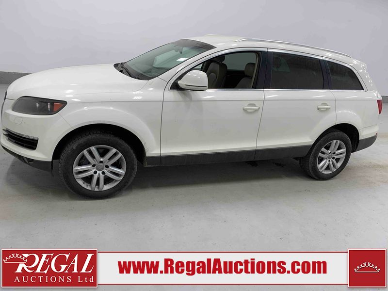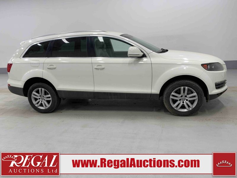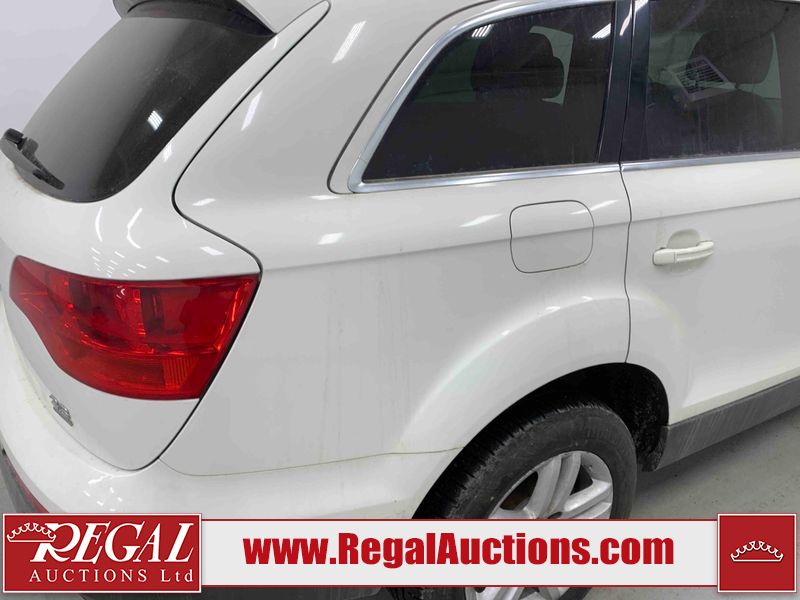 This 2008 AUDI Q7 4D UTILITY is powered by a 3.6L V6 gasoline engine and an automatic transmission. It is equipped with all-wheel drive. The SUV has seats for 7 people. The vehicle has high-value options including leather upholstery, power/heated seats, and a power liftgate. The Airbag, Check Engine, and Brake System lights are on. The body looks to be in fair condition overall. There is extensive hail on the hood. The grille is cracked. There is conspicuous paint peeling on the rear door. There are minimal chips on the front bumper. There is hail on the roof. There is slight rust on the left rear door, right rear fender, right rear door, and right front door. There is paint peeling on the right rear door. There are minor chips in many areas around the body. There are minor scratches in many areas around the body. The interior looks to be in good condition overall. The middle-row seatbelt is damaged and preventing the middle-row seating from folding up. The glove box is inoperable. The windshield looks to be in good condition. All of the tires have lots of tread remaining. This SUV is being sold by an automotive broker. The vehicle will be sold with the following declarations: Out of Province - SK (See Footnote 1), True Mileage Unknown (See Footnote 2), and Hail Damage (See Footnote 3). Footnotes: 1) The vehicle's last registered jurisdiction is Saskatchewan. The purchaser must have the vehicle undergo and pass an Out of Province inspection before it can be registered in Alberta. 2) The accuracy and history of the odometer reading cannot be verified and the current odometer reading is not believed to be correct. 3) This vehicle shows signs of damage from a hail storm. Hail damage is not always clearly visible in photographs. Regal Auctions Ltd. makes no guarantee or warranty, either express or implied, with respect to the data provided in this report. The information has been provided from the consignor and from sources generally believed to be reliable, however the accuracy of this information cannot be guaranteed by Regal Auctions.