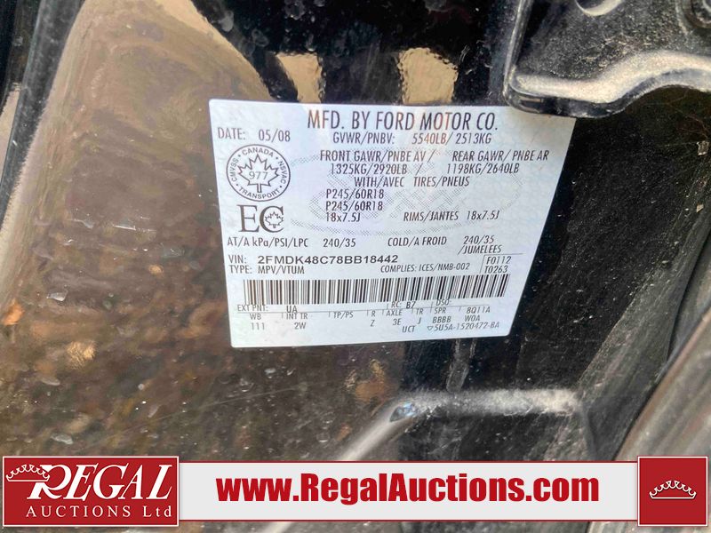 This 2008 FORD EDGE SEL 4D UTILITY AWD is powered by a 3.5L V6 gasoline engine and an automatic transmission. It is equipped with all-wheel drive. The SUV has seats for 5 people. The SUV has high mileage for its age. The vehicle has high-value options including a sunroof, power seats, and heated seats. The Battery light is on. The vehicle has some mechanical problems. The battery is dead. The vehicle requires a boost to start and may require a booster pack in order to stay running. There is white smoke coming from the engine. *ENGINE PROBLEMS - MAY REQUIRE REPAIR OR REPLACEMENT* (See Footnote 1) The body looks to be in rough condition overall. The front bumper is cracked. The right rear door has been repainted poorly. There is conspicuous paint peeling on the roof, left front door, and left rear fender. There are chips on the front bumper, grille, hood, roof, left front door, rear bumper, rear door, and right front fender. There are scratches on the front bumper, hood, left rear door, and right front fender. There is paint peeling on the grille, hood, and rear door. There are very minor chips in many areas around the body. There are very minor scratches in many areas around the body. There is very minor dent damage in a few areas around the body. The interior looks to be in good condition overall. The windshield looks to be in good condition. All of the tires have lots of tread remaining. This SUV is being sold by a franchise dealership. The vehicle will be sold with the following declarations: Dealership Trade-In (See Footnote 2). Footnotes: 1) We've identified some mechanical problems with the vehicle. However, the vehicle has not undergone a mechanical inspection and our findings are not to be considered a complete evaluation of the vehicle's mechanical condition. Review our Buyer Protection Policy to see how Regal Auctions protects you from undisclosed mechanical problems. 2) This vehicle is being sold on behalf of a franchise dealership. Franchise Dealerships are automotive sales companies who are directly connected to an automotive manufacturer like Ford, Tesla, Honda, BMW, or similar. Regal Auctions Ltd. makes no guarantee or warranty, either express or implied, with respect to the data provided in this report. The information has been provided from the consignor and from sources generally believed to be reliable, however the accuracy of this information cannot be guaranteed by Regal Auctions.