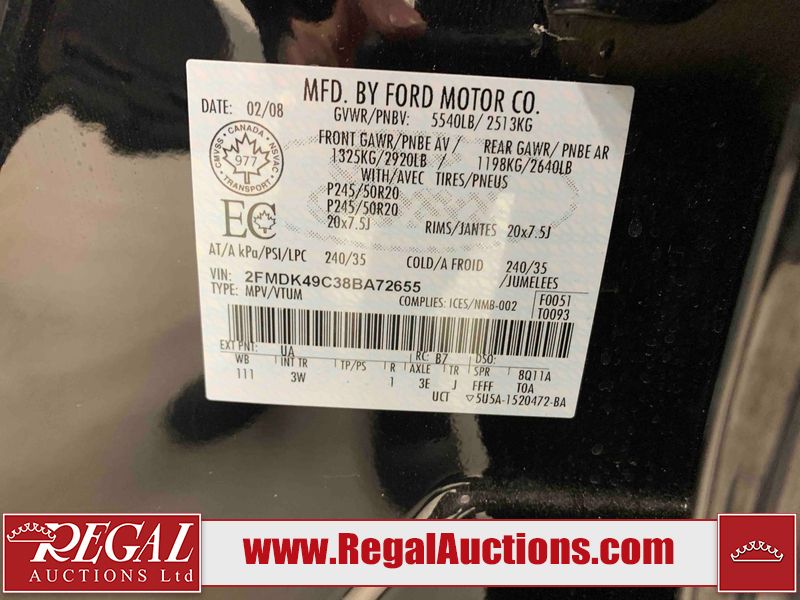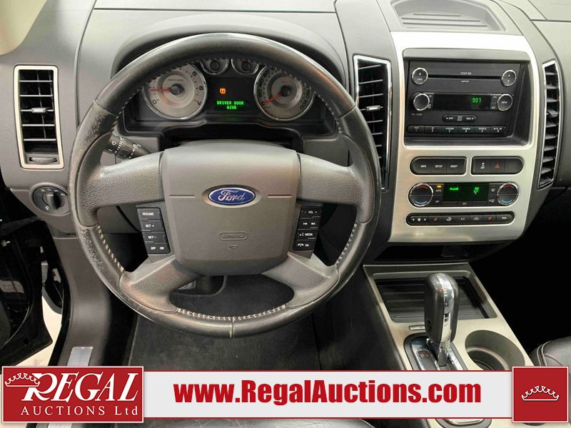 This 2008 FORD EDGE SEL PLUS 4D SPORT UTILITY is powered by a 3.5L V6 gasoline engine and an automatic transmission. It is equipped with all-wheel drive. The SUV has seats for 5 people. The SUV has low mileage for its age. The vehicle has high value options including a sunroof, leather upholstery, power seats, and heated seats. The Tire Pressure light is on. The body looks to be in fair condition overall. There are incidental scratches on the front bumper, left front fender, left front door, left rear door, left rear fender, right rear fender, and right rear door. There is minor dent damage on the right rear fender and right front door. There are very minor chips in many areas around the body. There are very minor scratches in many areas around the body. There is very minor dent damage on the left front fender. The interior looks to be in fair condition overall. The driver's seat and passenger seat are worn. The windshield is chipped. All of the tires have lots of tread remaining. This SUV is being sold by an automotive broker. The vehicle will be sold with the following declarations: Out of Province - BC (See Footnote 1). Footnotes: 1) The vehicle's last registered jurisdiction is British Columbia. The purchaser must have the vehicle undergo and pass an Out of Province inspection before it can be registered in Alberta. Regal Auctions Ltd. makes no guarantee or warranty, either express or implied, with respect to the data provided in this report. The information has been provided from the consignor and from sources generally believed to be reliable, however the accuracy of this information cannot be guaranteed by Regal Auctions.