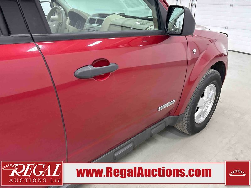 This 2008 FORD ESCAPE 4D UTILITY 4WD is powered by a 3.0 liter 6-cylinder gasoline engine and an automatic transmission. It is equipped with four-wheel drive. The SUV has seats for 5 people. The mileage is average considering the SUV's age. The vehicle has high-value options, including power seats. The body looks to be in good condition overall. There are minimal scratches on the left front door. There is rust on the left rear fender. There are chips on the right front door. There are chips in many areas around the body. There are scratches in many areas around the body. There is dent damage in a few areas around the body. The interior looks to be in good condition overall. There are some stains on the rear seats. The windshield is chipped. The tires are all worn. This SUV is being sold by an automotive broker. The vehicle will be sold with the following declarations: Claims Total $10,000 - $14,999 (See Footnote 1). Footnotes: 1) The vehicle's total recorded insurance claims history is between $10,000 - $14,999. This is the amount of money that was paid out by an insurance company for repairs to cover claims against the vehicle's insurance policy. This information is provided by CarFax. Regal Auctions Ltd. makes no guarantee or warranty, either express or implied, with respect to the data provided in this report. The information has been provided from the consignor and from sources generally believed to be reliable, however the accuracy of this information cannot be guaranteed by Regal Auctions.