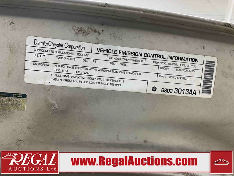 This 2008 JEEP GRAND CHEROKEE OVERLAND 4D UTILITY 4WD is powered by a turbocharged 3.0L 6CYL DIESEL 6 cylinder diesel engine and an automatic transmission. It is equipped with four-wheel drive. The SUV has seats for 5 people. The SUV has high mileage for its age. OVERLAND is a very popular trim level. The vehicle has high-value options including a sunroof, leather upholstery, power seats, heated seats, and a backup camera. The body looks to be in good condition overall. There are minor chips on the front bumper, hood, and roof. There are minor scratches on the front bumper and right rear fender. There are very minor chips in many areas around the body. There are very minor scratches in many areas around the body. The interior looks to be in good condition overall. The drivers seat is torn. The windshield looks to be in good condition. All of the tires have lots of tread remaining. This SUV is being sold by a private individual. Regal Auctions Ltd. makes no guarantee or warranty, either express or implied, with respect to the data provided in this report. The information has been provided from the consignor and from sources generally believed to be reliable, however the accuracy of this information cannot be guaranteed by Regal Auctions.