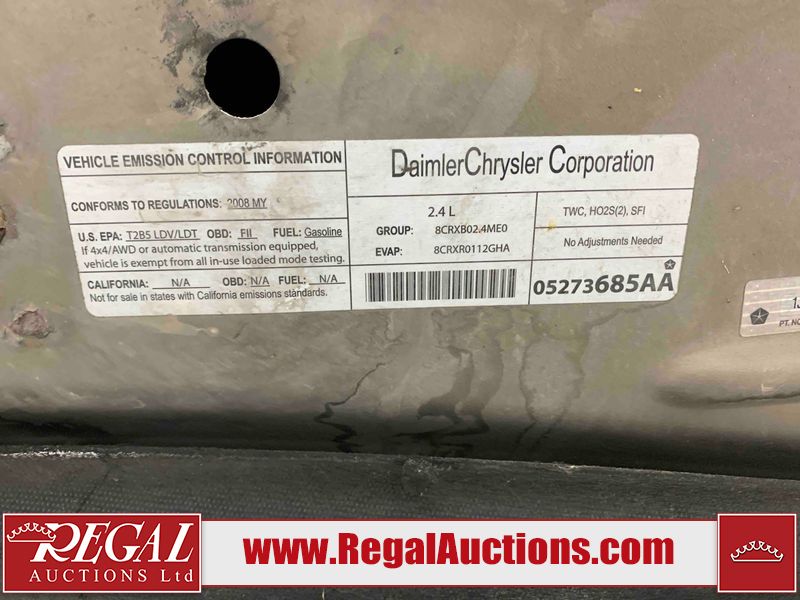 This 2008 JEEP PATRIOT NORTH 4D UTILITY is powered by a 2.4L 4-cylinder gasoline engine and an automatic transmission. It is equipped with four-wheel drive. The SUV has seats for 5 people. The mileage is average considering the SUV's age. The vehicle has high-value options including heated seats. The Check Engine and Tire Pressure lights are on. The body looks to be in rough condition overall. There is extensive rust on the left rear fender and right rear fender. There is conspicuous dent damage on the right rear door. There is moderate rust on the right front fender. There are chips on the front bumper, hood, left front fender, left rear door, right rear door, right front door, and right front fender. There are scratches on the left front fender, left front door, left rear door, rear bumper, and right front door. There are very minor scratches in a few areas around the body. There is very minor dent damage on the hood. There are very minor chips on the left front door. The interior looks to be in fair condition overall. There are minor cigarette burns on the driver's seat. There are stains on the driver's seat, passenger seat and rear seats. The carpet is dirty. The windshield is cracked. All of the tires have lots of tread remaining. This SUV is being sold by an automotive broker. Regal Auctions Ltd. makes no guarantee or warranty, either express or implied, with respect to the data provided in this report. The information has been provided from the consignor and from sources generally believed to be reliable, however the accuracy of this information cannot be guaranteed by Regal Auctions.