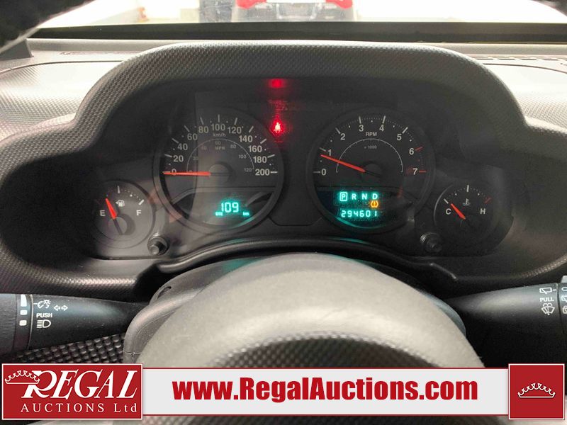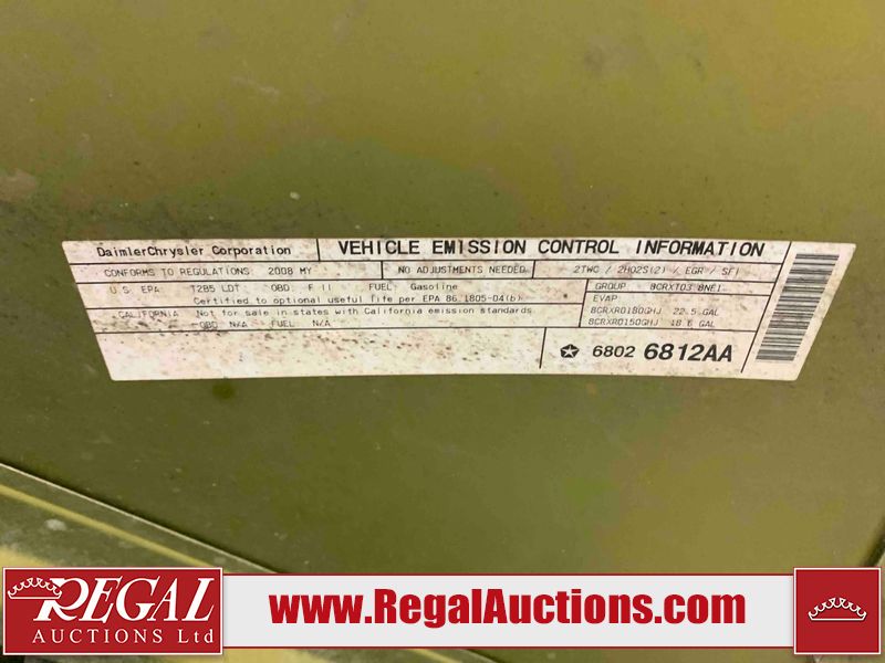 This 2008 JEEP WRANGLER 4D UTILITY 4WD is powered by a 3.8L 6 cylinder gasoline engine and an automatic transmission. It is equipped with four wheel drive. The SUV has seats for 5 people. The SUV has high mileage for its age. The Tire Pressure light is on. The body looks to be in fair condition overall. There is conspicuous rust on the front bumper. There are slight chips on the front bumper. There are scratches on the front bumper, hood, roof, left front door, left rear door, left rear fender, rear bumper, right rear fender, right rear door, and right front door. There is slight dent damage on the hood and left front door. There is incidental rust on the roof. There are very minor chips in many areas around the body. There are very minor scratches in a few areas around the body. The interior looks to be in fair condition overall. There are some stained on the driver's seat, passenger seat, and rear seats. The windshield is cracked. All of the tires have lots of tread remaining. This SUV is being sold by an automotive broker. Regal Auctions Ltd. makes no guarantee or warranty, either express or implied, with respect to the data provided in this report. The information has been provided from the consignor and from sources generally believed to be reliable, however the accuracy of this information cannot be guaranteed by Regal Auctions.