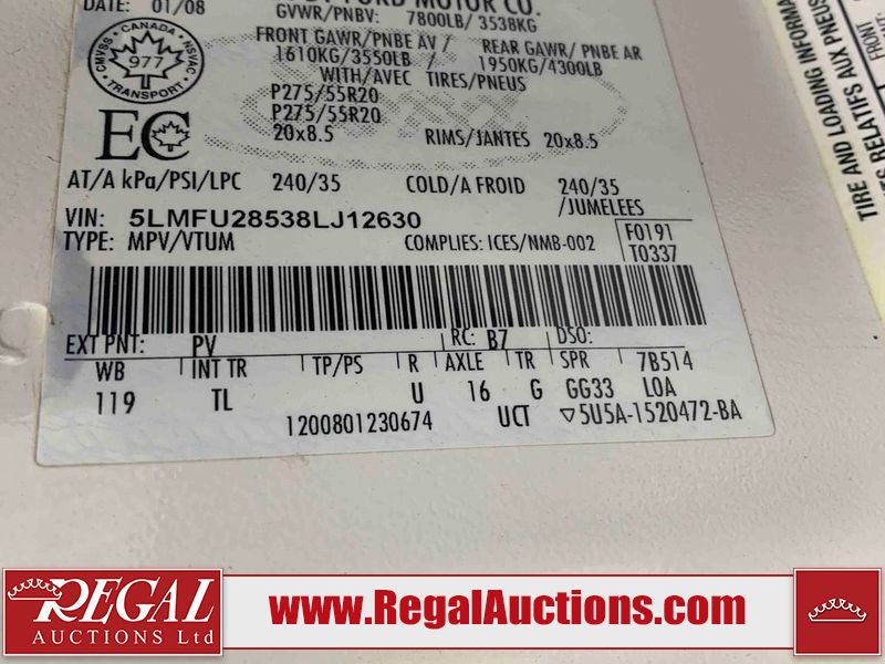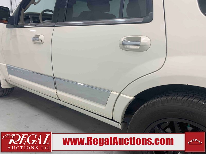 This 2008 LINCOLN NAVIGATOR 4D UTILITY 4WD is powered by a 5.4L V8 gasoline engine and an automatic transmission. It is equipped with four-wheel drive. The SUV has seats for 7 people. The SUV has high mileage for its age. The vehicle has high value options including a sunroof, leather upholstery, power seats, heated seats, a DVD Player, a backup camera, and a power lift gate. The body looks to be in rough condition overall. There is considerable hail on the roof, left rear fender, and right rear fender. There is moderate paint peeling on the rear door. The front bumper is drill holes. There is minor hail on the left front door, left rear door, right rear door, and right front door. There are minor scratches on the left rear door. There is rust on the rear door and right rear fender. There are very minor chips in many areas around the body. There are very minor scratches in many areas around the body. The tail lights are broken. The interior looks to be in fair condition overall. The dashboard, driver's seat, passenger seat, rear seats, and doors are worn. The windshield is chipped. All of the tires have lots of tread remaining. This SUV is being sold by an automotive broker. The vehicle will be sold with the following declarations: Claims Total $15,000 - $19,999 (See Footnote 1) and Hail Damage (See Footnote 2). Footnotes: 1) The vehicle's total recorded insurance claims history is between $15,000 - $19,999. This is the amount of money that was paid out by an insurance company for repairs to cover claims against the vehicle's insurance policy. This information is provided by CarFax. 2) This vehicle shows signs of damage from a hail storm. Hail damage is not always clearly visible in photographs. Regal Auctions Ltd. makes no guarantee or warranty, either express or implied, with respect to the data provided in this report. The information has been provided from the consignor and from sources generally believed to be reliable, however the accuracy of this information cannot be guaranteed by Regal Auctions.
