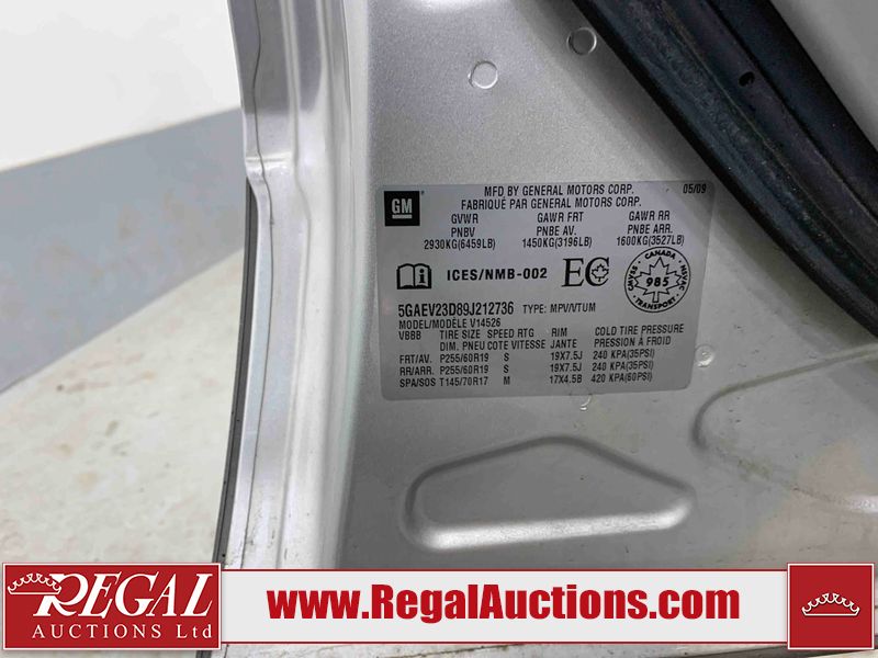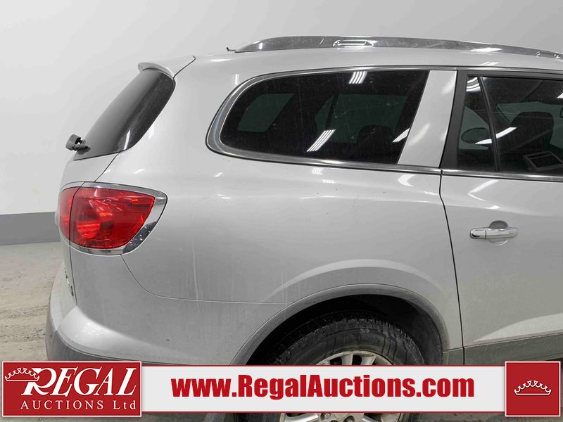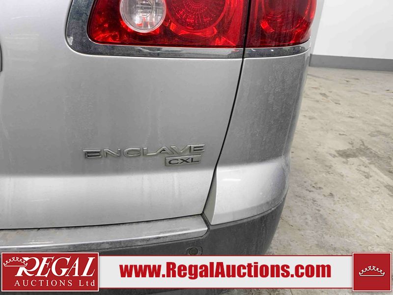 This 2009 BUICK ENCLAVE CXL 4D UTILITY AWD is powered by a 3.6L V6 gasoline engine and an automatic transmission. It is equipped with all-wheel drive. The SUV has seats for 5 people. The mileage is average considering the SUV's age. The vehicle has high-value options, including leather upholstery, power seats, heated seats, and a backup camera. The Tire Pressure light is on. The vehicle has some mechanical problems. *ENGINE MISFIRE* (See Footnote 1) The body looks to be in rough condition overall. There are slight chips on the front bumper, grille, hood, roof, left front fender, left front door, left rear door, left rear fender, rear bumper, trunk lid, rear door, tail gate, pickup bed, right rear fender, right rear door, right front door, and right front fender. There are scratches on the front bumper, hood, roof, left front fender, left front door, left rear door, left rear fender, rear bumper, trunk lid, rear door, tail gate, pickup bed, right rear fender, right rear door, right front door, and right front fender. The interior looks to be in good condition overall. The dashboard, driver's seat, passenger seat, rear seats, and doors are dirty. The carpet is dirty. The windshield is chipped. The tires are all worn. This SUV is being sold by an automotive broker. The vehicle will be sold with the following declarations: Mechanical Problems (See Footnote 1). Footnotes: 1) We've identified some mechanical problems with the vehicle. However, the vehicle has not undergone a mechanical inspection and our findings are not to be considered a complete evaluation of the vehicle's mechanical condition. Review our Buyer Protection Policy to see how Regal Auctions protects you from undisclosed mechanical problems. Regal Auctions Ltd. makes no guarantee or warranty, either express or implied, with respect to the data provided in this report. The information has been provided from the consignor and from sources generally believed to be reliable, however the accuracy of this information cannot be guaranteed by Regal Auctions.