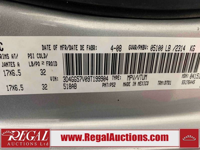 This 2009 DODGE JOURNEY SXT 4D UTILITY is powered by a 3.5L V6 gasoline engine and an automatic transmission. It is a two-wheel drive model. The SUV has seats for 5 people. The mileage is average considering the SUV's age. The vehicle has high-value options including power seats. The Tire Pressure light is on. The body looks to be in fair condition overall. There is conspicuous rust on the left rear fender and right rear fender. There are noteworthy scratches on the right rear door. There are chips on the front bumper, hood, left rear door, and right rear door. There is minimal paint peeling on the front bumper. There is minimal rust on the left front fender, left rear door, and right rear door. There are minimal scratches on the rear bumper and right rear fender. There is dent damage on the right rear fender. There are very minor chips in many areas around the body. There are very minor scratches in some areas around the body. There is very minor dent damage on the left front door. The interior looks to be in good condition overall. The windshield looks to be in good condition. All of the tires have lots of tread remaining. This SUV is being sold by an automotive broker. Regal Auctions Ltd. makes no guarantee or warranty, either express or implied, with respect to the data provided in this report. The information has been provided from the consignor and from sources generally believed to be reliable, however the accuracy of this information cannot be guaranteed by Regal Auctions.
