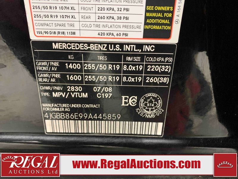 This 2009 MERCEDES-BENZ ML350 4D UTILITY AWD is powered by a 3.5L V6 gasoline engine and an automatic transmission. It is equipped with all-wheel drive. The SUV has seats for 5 people. The SUV has low mileage for its age. The vehicle has high-value options including a sunroof, leather upholstery, power seats, heated seats, navigation, a backup camera, and a power lift gate. The vehicle does not have a radio. The body looks to be in good condition overall. There are chips on the front bumper. There are very minor chips in a few areas around the body. There are very minor scratches in many areas around the body. The interior looks to be in good condition overall. The windshield looks to be in good condition. The driver side mirror is loose. All of the tires have lots of tread remaining. This SUV is being sold by an automotive broker. The vehicle will be sold with the following declarations: Claims Total Above $20,000 (See Footnote 1). Footnotes: 1) The vehicle's total recorded insurance claims history is above $20,000. This is the amount of money that was paid out by an insurance company for repairs to cover claims against the vehicle's insurance policy. This information is provided by CarFax. Regal Auctions Ltd. makes no guarantee or warranty, either express or implied, with respect to the data provided in this report. The information has been provided from the consignor and from sources generally believed to be reliable, however the accuracy of this information cannot be guaranteed by Regal Auctions.