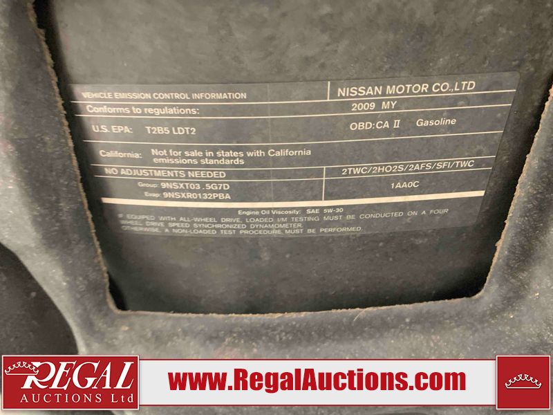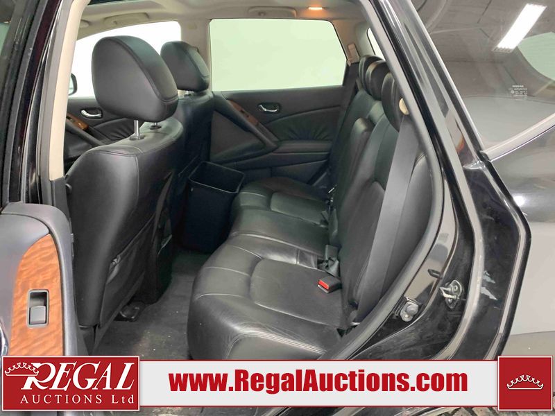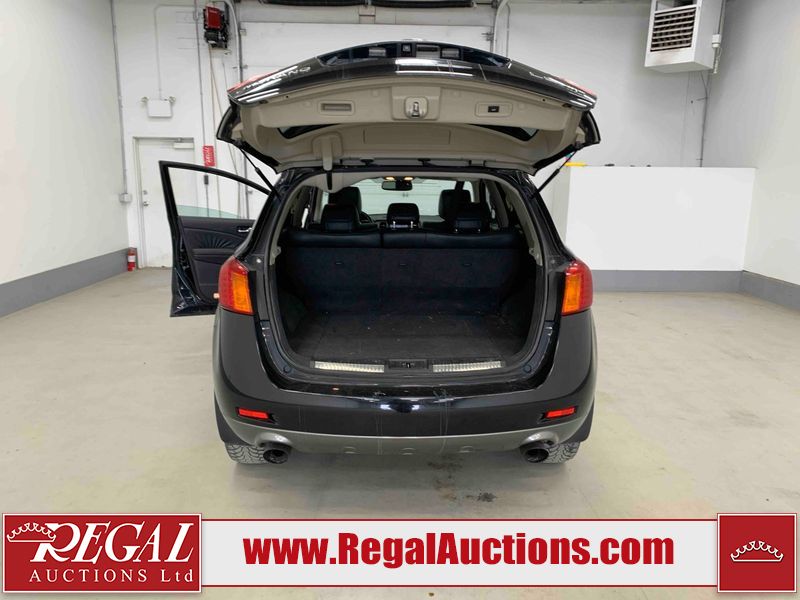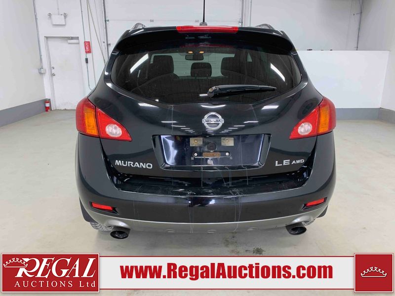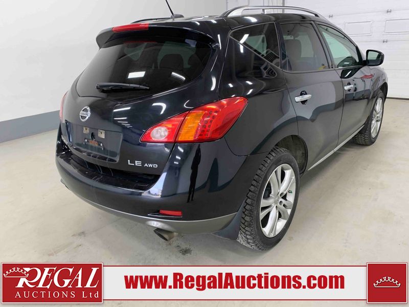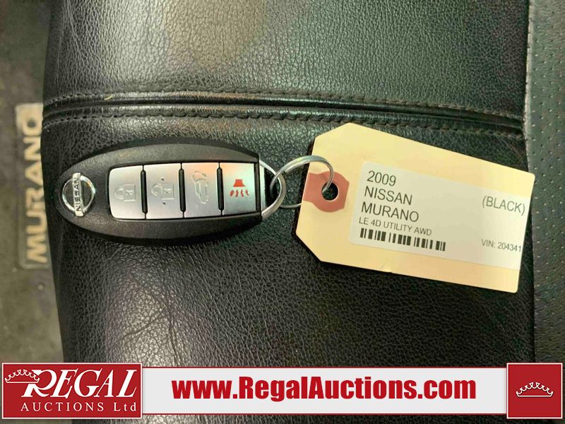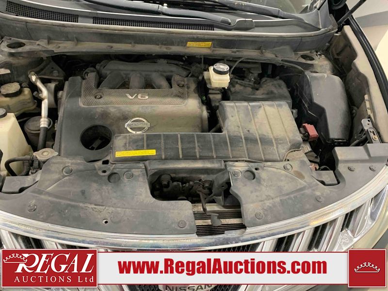 This 2009 NISSAN MURANO LE 4D UTILITY AWD is powered by a 3.5 liter 6 cylinder gasoline engine and an automatic transmission. It is equipped with all wheel drive. The SUV has seats for 5 people. The SUV has high mileage for its age. The vehicle has high value options including a sunroof, leather upholstery, power seats, heated seats, a backup camera, and a power lift gate. The body looks to be in rough condition overall. There is considerable rust on the right front fender. There is a fair amount of rust on the left front fender, left rear fender, and right rear fender. There are chips on the front bumper, hood, left front fender, left front door, left rear door, right rear door, and right front door. There are slight scratches on the front bumper, hood, left front fender, left front door, left rear door, left rear fender, rear bumper, right rear fender, right rear door, and right front door. There are chips on the right front fender. The fog lights are broken. The interior looks to be in good condition overall. The driver's seat is worn. The windshield is cracked. All of the tires have lots of tread remaining. This SUV is being sold by an automotive broker. Regal Auctions Ltd. makes no guarantee or warranty, either express or implied, with respect to the data provided in this report. The information has been provided from the consignor and from sources generally believed to be reliable, however the accuracy of this information cannot be guaranteed by Regal Auctions.