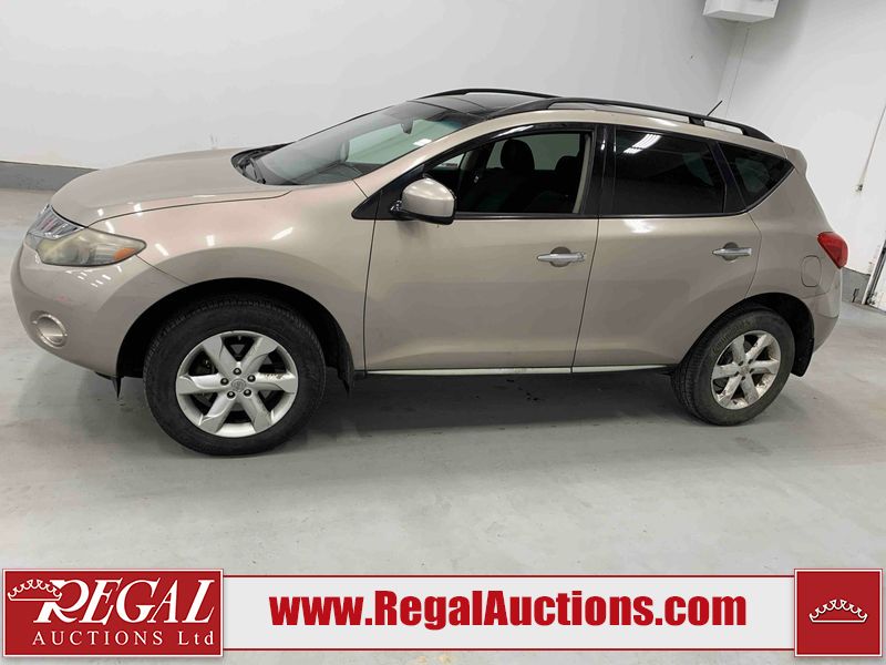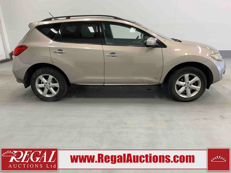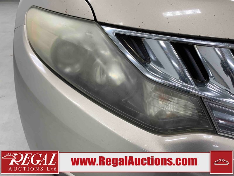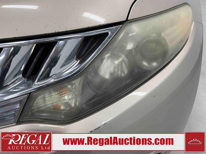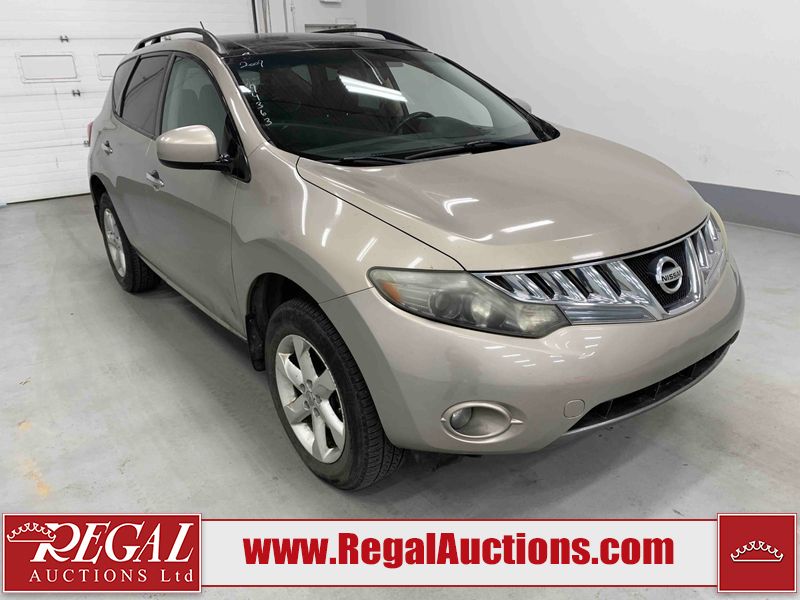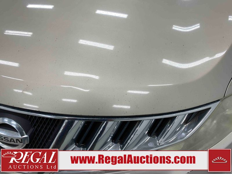 This 2009 NISSAN MURANO SL 4D UTILITY is powered by a 3.5L V6 gasoline engine and an automatic transmission. It is equipped with all-wheel drive. The SUV has seats for 5 people. The mileage is average considering the SUV's age. The vehicle has high-value options including a sunroof, power seats, and heated seats. The body looks to be in fair condition overall. There is pronounced dent damage on the front bumper. There is a fair amount of rust on the left rear fender. There are incidental chips on the front bumper, hood, and left front fender. There is rust on the hood, roof, and right rear door. There is slight dent damage on the hood. There are incidental scratches on the left front fender, left front door, left rear door, left rear fender, and rear bumper. There are very minor chips in many areas around the body. There are very minor scratches in some areas around the body. There is very minor dent damage on the right front fender. The headlight lenses are hazy. The interior looks to be in good condition overall. There are incidental cigarette burns on the driver's seat. The passenger seat and rear seats are dirty. The windshield looks to be in good condition. The rear tires are worn. The front tires have lots of tread remaining. This SUV is being sold by an automotive broker. The vehicle will be sold with the following declarations: Claims Total $5000 - $9999 (See Footnote 1). Footnotes: 1) The vehicle's total recorded insurance claims history is between $5,000 - $9,999. This is the amount of money that was paid out by an insurance company for repairs to cover claims against the vehicle's insurance policy. This information is provided by CarFax. Regal Auctions Ltd. makes no guarantee or warranty, either express or implied, with respect to the data provided in this report. The information has been provided from the consignor and from sources generally believed to be reliable, however the accuracy of this information cannot be guaranteed by Regal Auctions.