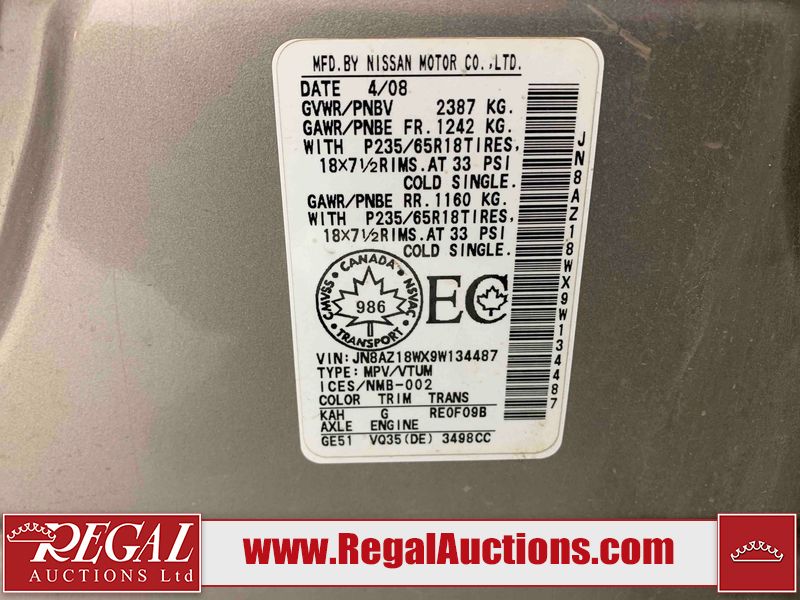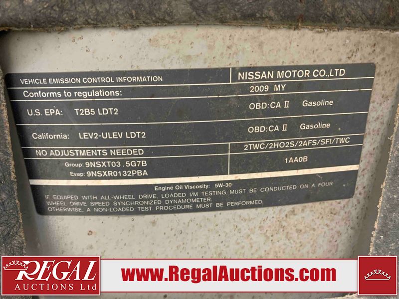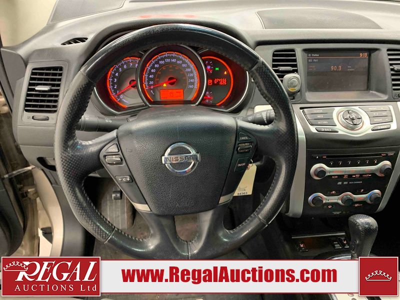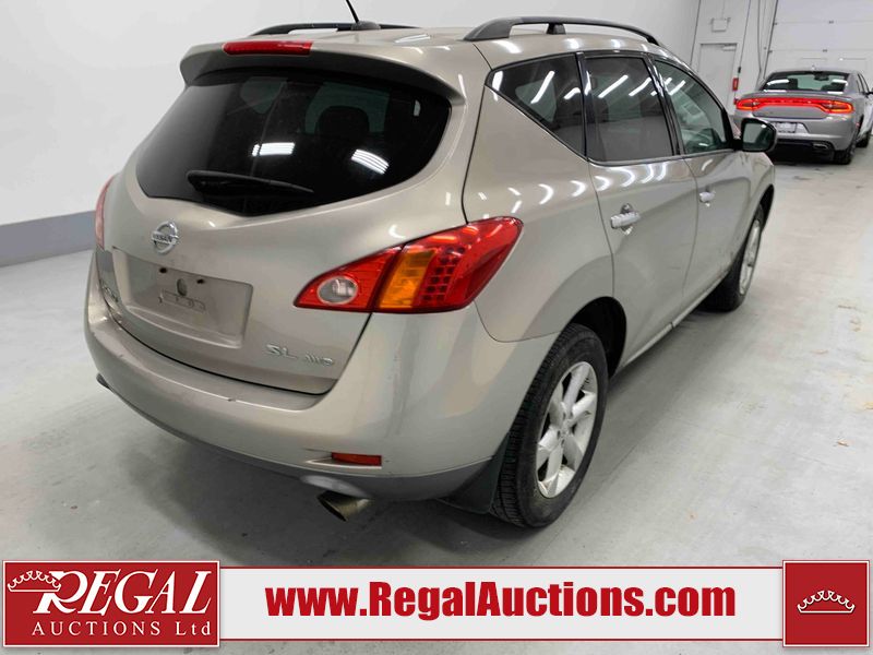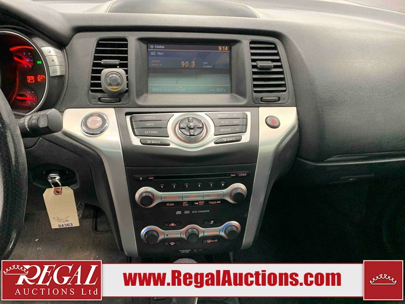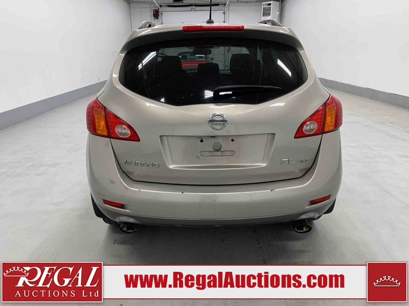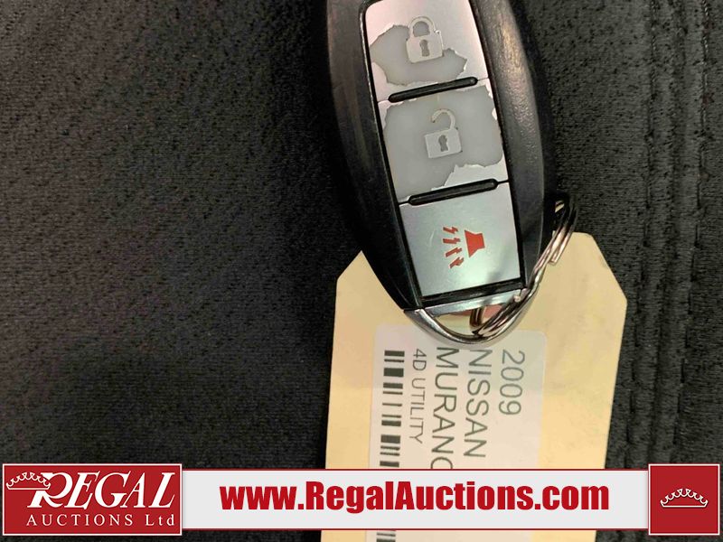 This 2009 NISSAN MURANO SL 4D UTILITY is powered by a 3.5L V6 gasoline engine and an automatic transmission. It is equipped with all-wheel drive. The SUV has seats for 5 people. The mileage is average considering the SUV's age. The vehicle has high-value options including a sunroof, power seats, and heated seats. The body looks to be in fair condition overall. There is pronounced dent damage on the front bumper. There is a fair amount of rust on the left rear fender. There are incidental chips on the front bumper, hood, and left front fender. There is rust on the hood, roof, and right rear door. There is slight dent damage on the hood. There are incidental scratches on the left front fender, left front door, left rear door, left rear fender, and rear bumper. There are very minor chips in many areas around the body. There are very minor scratches in some areas around the body. There is very minor dent damage on the right front fender. The headlight lenses are hazy. The interior looks to be in good condition overall. There are incidental cigarette burns on the driver's seat. The passenger seat and rear seats are dirty. The windshield looks to be in good condition. The rear tires are worn. The front tires have lots of tread remaining. This SUV is being sold by an automotive broker. The vehicle will be sold with the following declarations: Claims Total $5000 - $9999 (See Footnote 1). Footnotes: 1) The vehicle's total recorded insurance claims history is between $5,000 - $9,999. This is the amount of money that was paid out by an insurance company for repairs to cover claims against the vehicle's insurance policy. This information is provided by CarFax. Regal Auctions Ltd. makes no guarantee or warranty, either express or implied, with respect to the data provided in this report. The information has been provided from the consignor and from sources generally believed to be reliable, however the accuracy of this information cannot be guaranteed by Regal Auctions.