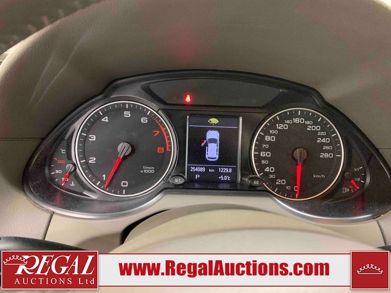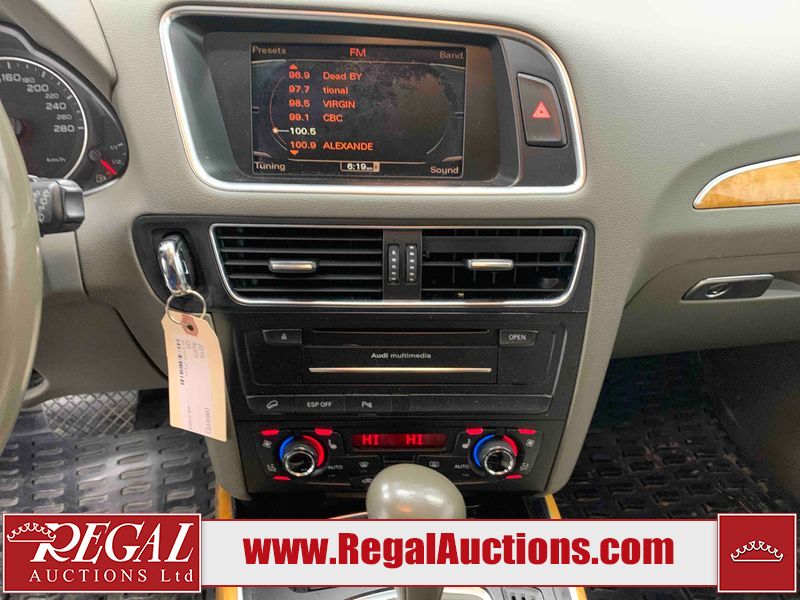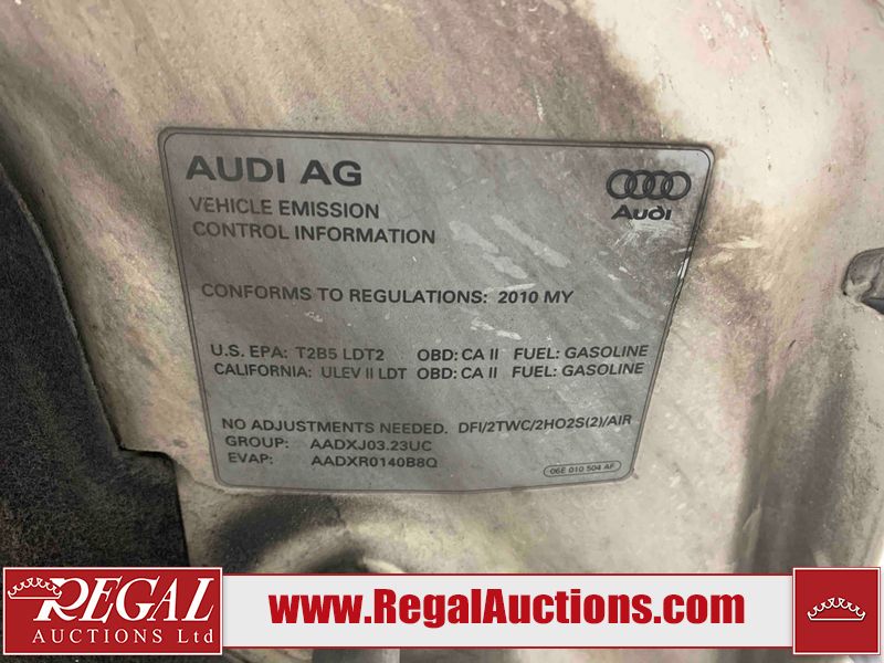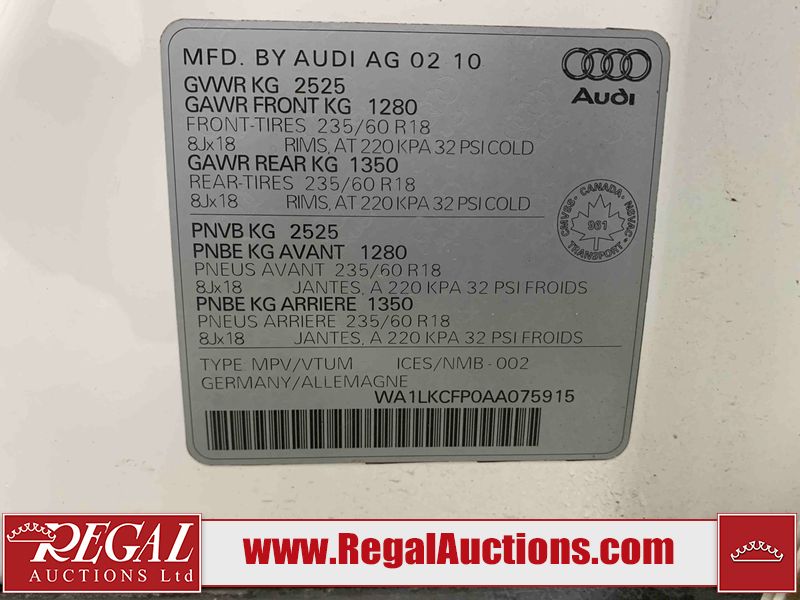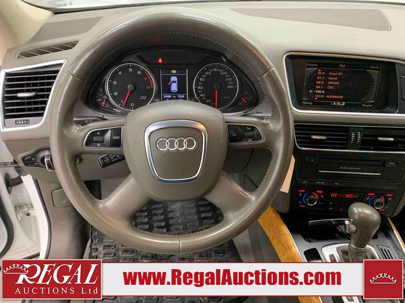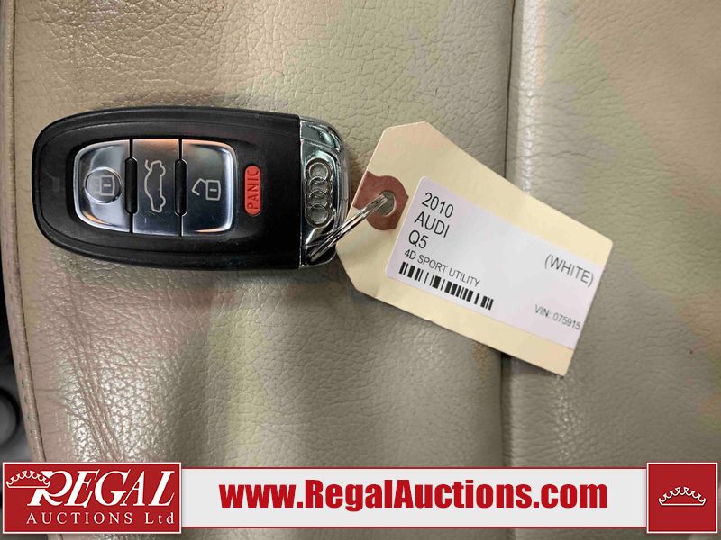This 2010 AUDI Q5 4D SPORT UTILITY is powered by a 3.2L V6 gasoline engine and an automatic transmission. It is equipped with all-wheel drive. The SUV has seats for 5 people. The SUV has high mileage for its age. The vehicle has high-value options including a sunroof, leather upholstery, power seats, heated seats, a backup camera, and a power liftgate. The body looks to be in fair condition overall. There is considerable dent damage on the left front fender. There are moderate scratches on the front bumper. There are incidental chips on the front bumper and hood. There are scratches on the left front door, left rear door, left rear fender, rear bumper, right rear door, and right front door. There is minor rust on the right rear door. There are very minor scratches in a few areas around the body. There are very minor chips on the right front fender. The interior looks to be in good condition overall. The windshield is cracked. All of the tires have lots of tread remaining. This SUV is being sold by an automotive broker. Regal Auctions Ltd. makes no guarantee or warranty, either express or implied, with respect to the data provided in this report. The information has been provided from the consignor and from sources generally believed to be reliable, however the accuracy of this information cannot be guaranteed by Regal Auctions.