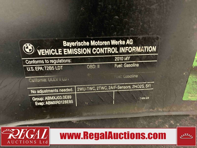 This 2010 BMW X3 XDRIVE30I 4D UTILITY AWD is powered by a 3.0L V6 gasoline engine and an automatic transmission. It is equipped with all-wheel drive. The SUV has seats for 5 people. The SUV has high mileage for its age. The vehicle has high-value options, including a sunroof, leather upholstery, power seats, heated seats, and a power lift gate. The Check Engine, Tire Pressure, Airbag, and Maintenance lights are on. The vehicle has some mechanical problems. The battery is dead. The vehicle requires a boost to start and may require a booster pack in order to stay running. The engine runs rough. (See Footnote 1) The body looks to be in fair condition overall. There are chips on the front bumper, hood, and rear bumper. There are slight scratches on the front bumper, hood, roof, left front fender, left front door, left rear door, left rear fender, rear bumper, rear door, right rear fender, right rear door, right front door, and right front fender. There are very minor chips in many areas around the body. The interior looks to be in good condition overall. The windshield is cracked. All of the tires have lots of tread remaining. This SUV is being sold by an automotive broker. The vehicle will be sold with the following declarations: Auctioneer Announcement "**RUNS ROUGH**BOOST** *CHECK ENGINE & AIRBAG LIGHTS ARE ON* *TAILGATE INOPERABLE*", Claims Total $5000 - $9999 (See Footnote 2), Out of Province - BC (See Footnote 3), and Rebuilt Status (See Footnote 4). Footnotes: 1) We've identified some mechanical problems with the vehicle. However, the vehicle has not undergone a mechanical inspection and our findings are not to be considered a complete evaluation of the vehicle's mechanical condition. Review our Buyer Protection Policy to see how Regal Auctions protects you from undisclosed mechanical problems. 2) The vehicle's total recorded insurance claims history is between $5,000 - $9,999. This is the amount of money that was paid out by an insurance company for repairs to cover claims against the vehicle's insurance policy. This information is provided by CarFax. 3) The vehicle's last registered jurisdiction is British Columbia. The purchaser must have the vehicle undergo and pass an Out of Province inspection before it can be registered in Alberta. 4) This vehicle has been rebuilt from salvage. Regal Auctions Ltd. makes no guarantee or warranty, either express or implied, with respect to the data provided in this report. The information has been provided from the consignor and from sources generally believed to be reliable, however the accuracy of this information cannot be guaranteed by Regal Auctions.