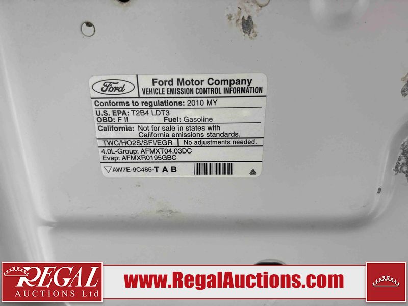 This 2010 FORD EXPLORER XLT 4D UTILITY is powered by a 4.0L V6 gasoline engine and an automatic transmission. It is equipped with four-wheel drive. The SUV has seats for 5 people. The SUV has low mileage for its age. The Airbag light is on. The body looks to be in rough condition overall. There is extensive rust on the left front fender and right front fender. There are noteworthy scratches on the rear bumper. There is noteworthy rust on the rear door. There are incidental chips on the front bumper, hood, rear door, right rear door, and right front door. There is minor paint peeling on the front bumper. There is incidental rust on the roof, left front door, right rear fender, right rear door, and right front door. The rear bumper is cracked. There are very minor scratches in many areas around the body. There are very minor chips in many areas around the body. The interior looks to be in good condition overall. The windshield is chipped. All of the tires have lots of tread remaining. This SUV is being sold by an automotive broker. The vehicle will be sold with the following declarations: Auctioneer Announcement "* AIRBAG LIGHT ON * ". Regal Auctions Ltd. makes no guarantee or warranty, either express or implied, with respect to the data provided in this report. The information has been provided from the consignor and from sources generally believed to be reliable, however the accuracy of this information cannot be guaranteed by Regal Auctions.