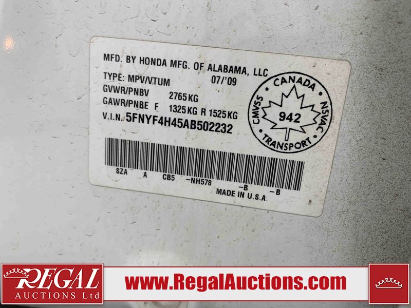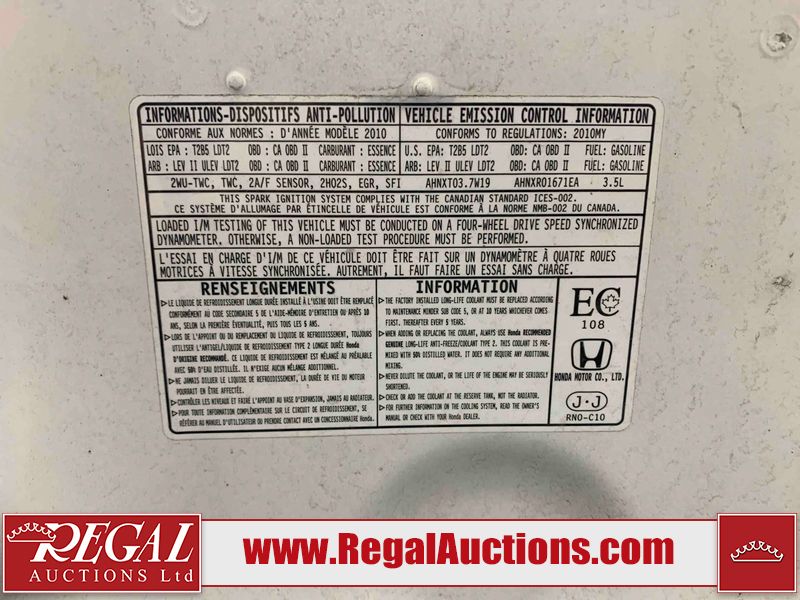 This 2010 HONDA PILOT EX 4D UTILITY is powered by a 3.5L V6 gasoline engine and an automatic transmission. It is equipped with four0wheel drive. The SUV has seats for 8 people. The SUV has low mileage for its age. The vehicle has high-value options including power seats and heated seats. The body looks to be in fair condition overall. There are scratches on the front bumper, left front fender, and right front door. There are chips on the front bumper. There is dent damage on the left front fender. There are very minor chips in many areas around the body. There are very minor scratches in many areas around the body. There is very minor dent damage on the left rear fender. The headlight lenses are hazy. The interior looks to be in fair condition overall. The dashboard and doors are worn. The driver's seat is stained. The windshield looks to be in good condition. The driver's side rear tire is worn. All of the other tires have lots of tread remaining. This SUV is being sold by a franchise dealership. The vehicle will be sold with the following declarations: Dealership Trade-In (See Footnote 1). Footnotes: 1) This vehicle is being sold on behalf of a franchise dealership. Franchise Dealerships are automotive sales companies who are directly connected to an automotive manufacturer like Ford, Tesla, Honda, BMW, or similar. Regal Auctions Ltd. makes no guarantee or warranty, either express or implied, with respect to the data provided in this report. The information has been provided from the consignor and from sources generally believed to be reliable, however the accuracy of this information cannot be guaranteed by Regal Auctions.