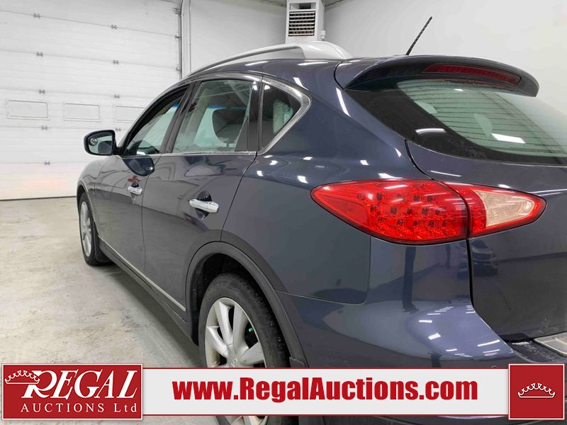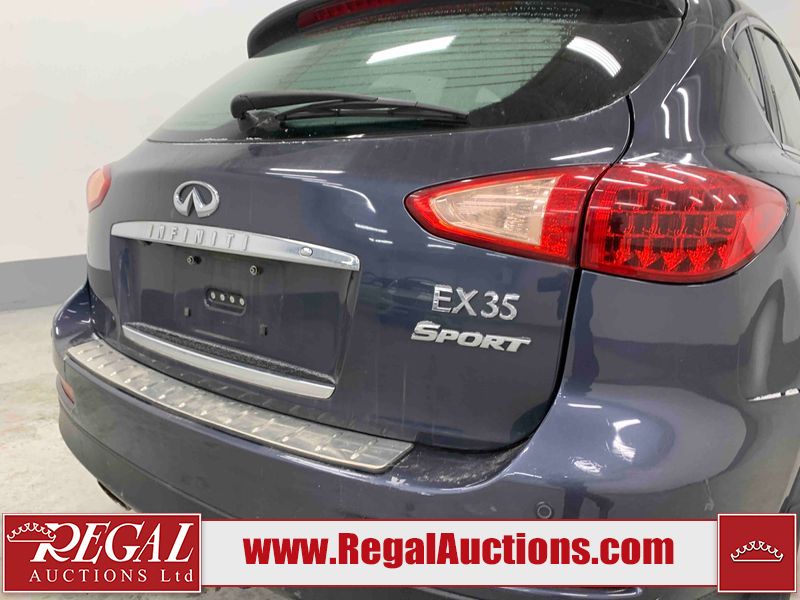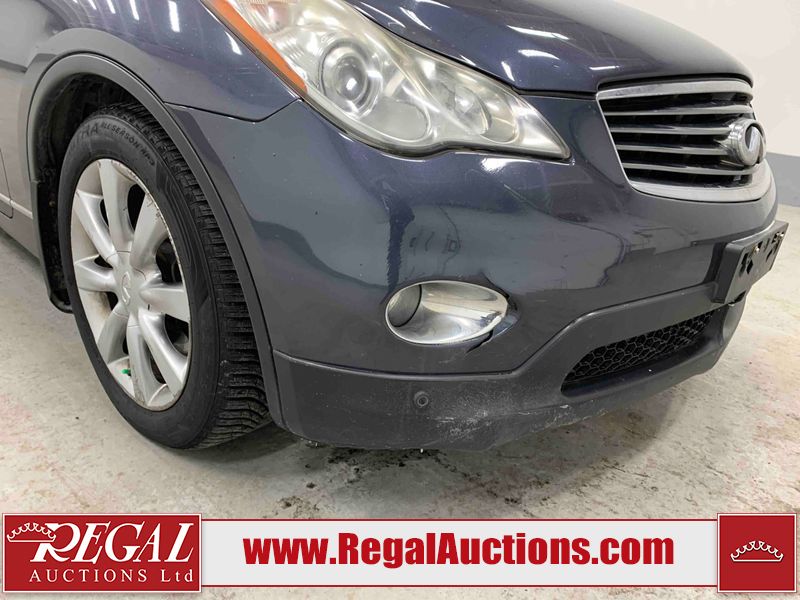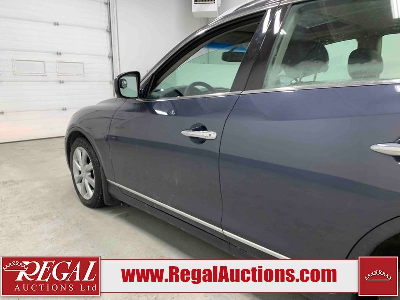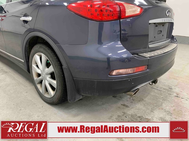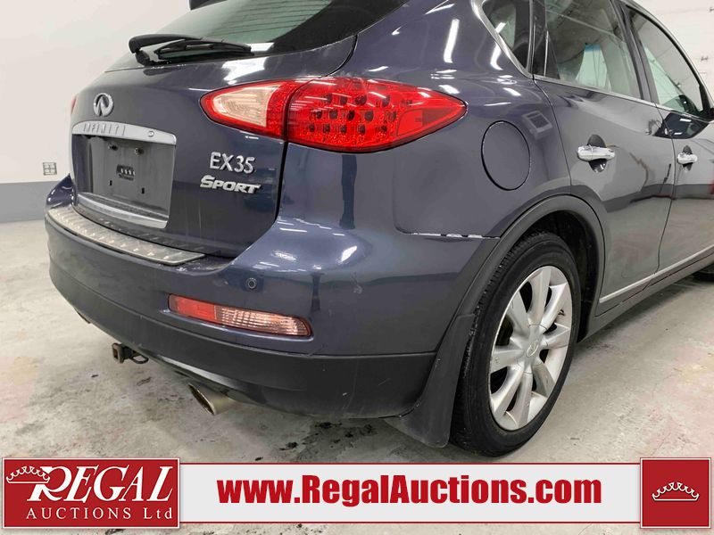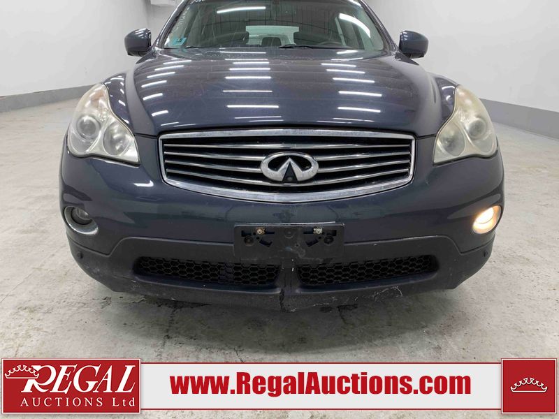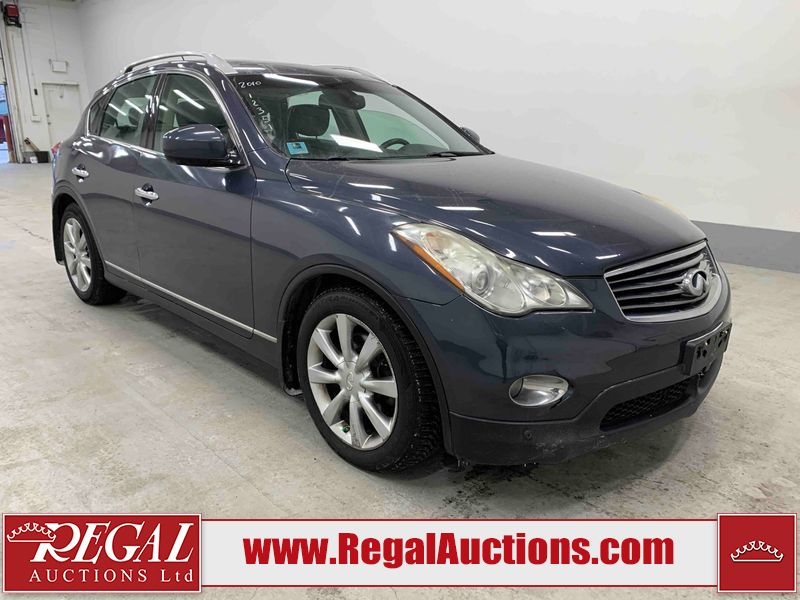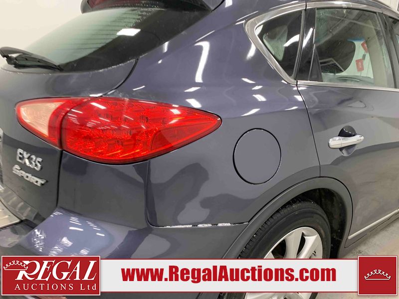 This 2010 INFINITI EX 4D UTILITY AWD is powered by a 3.50L 6CYL GAS 6 cylinder gasoline engine and an automatic transmission. It is equipped with four wheel drive. The SUV has seats for 5 people. The mileage is average considering the SUV's age. The vehicle has high value options including a sunroof, leather upholstery, power seats, heated seats, navigation, and a backup camera. The Tire Pressure and Stability Control lights are on. The body looks to be in rough condition overall. The front bumper is cracked. There are minor scratches on the front bumper, hood, left front fender, left front door, left rear fender, rear bumper, rear door, right rear fender, right rear door, and right front door. There are incidental chips on the front bumper, hood, left front door, rear bumper, rear door, and right rear fender. There is dent damage on the left front fender, right rear fender, right rear door, and right front fender. There are very minor chips in many areas around the body. There are very minor scratches in a few areas around the body. The interior looks to be in good condition overall. The dashboard, driver's seat, passenger seat, and rear seats are dirty. The carpet is dirty. The windshield looks to be in good condition. The passenger side rear tire is worn. All of the other tires have lots of tread remaining. This SUV is being sold by an automotive broker. The vehicle will be sold with the following declarations: Claims Total $10,000 - $14,999 (See Footnote 1), Footnotes: 1) The vehicle's total recorded insurance claims history is between $10,000 - $14,999. This is the amount of money that was paid out by an insurance company for repairs to cover claims against the vehicle's insurance policy. This information is provided by CarFax. 2) Out of province inspection for registering the vehicle in Alberta has been completed. Regal Auctions Ltd. makes no guarantee or warranty, either express or implied, with respect to the data provided in this report. The information has been provided from the consignor and from sources generally believed to be reliable, however the accuracy of this information cannot be guaranteed by Regal Auctions.