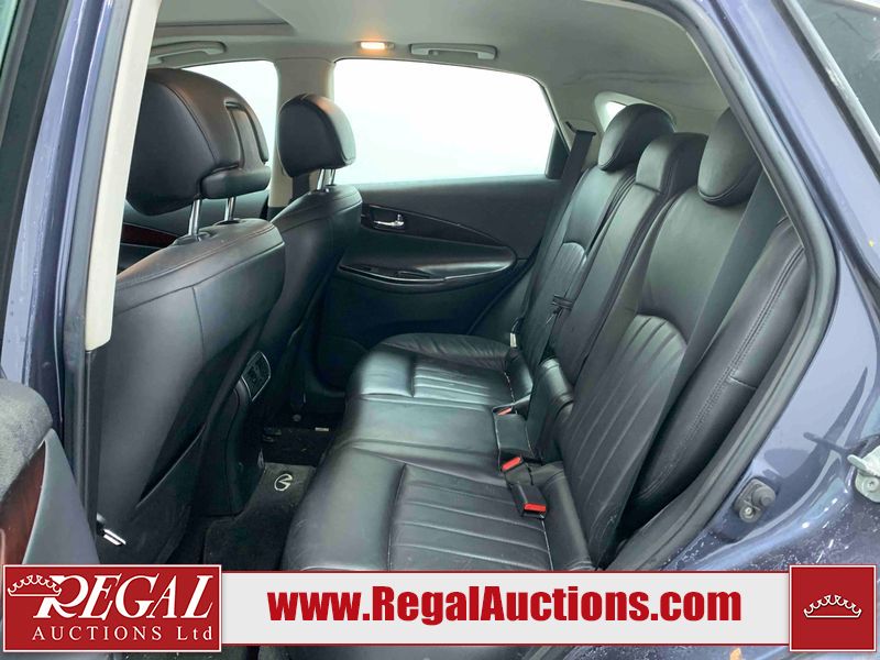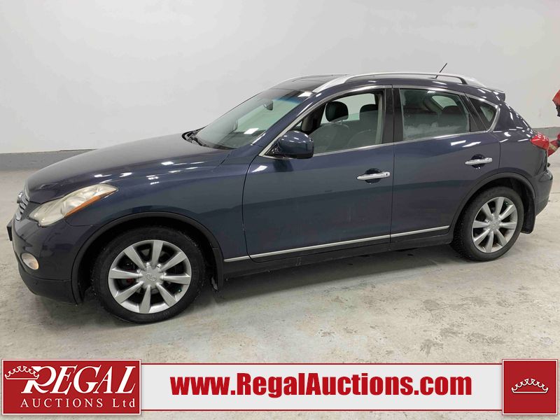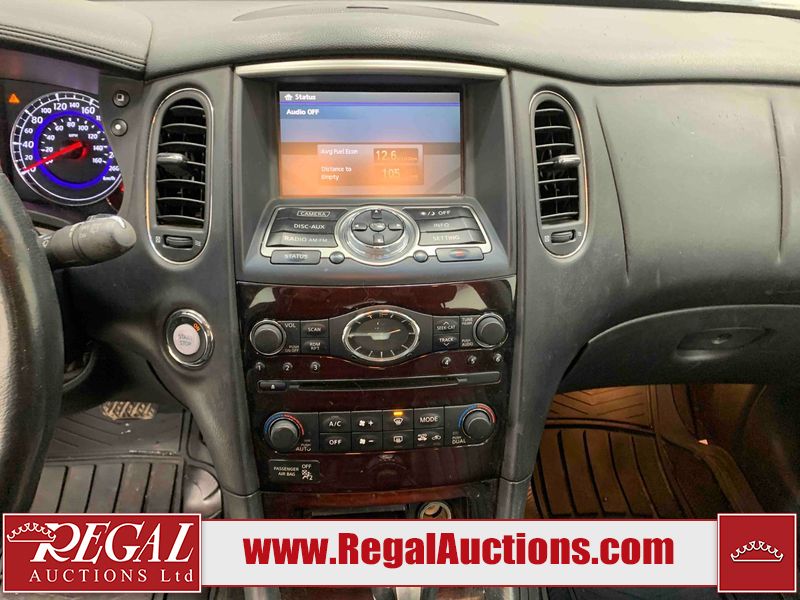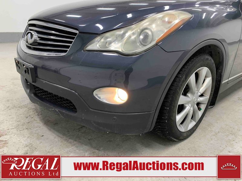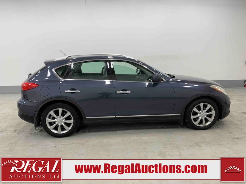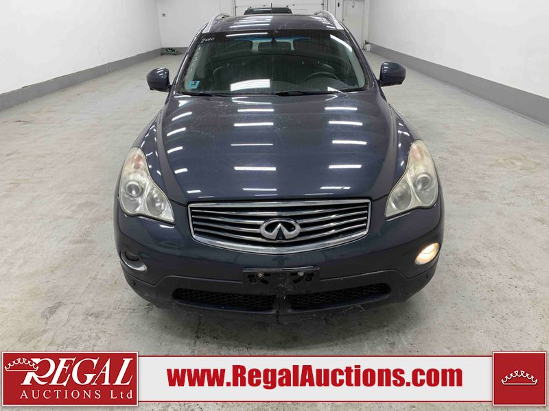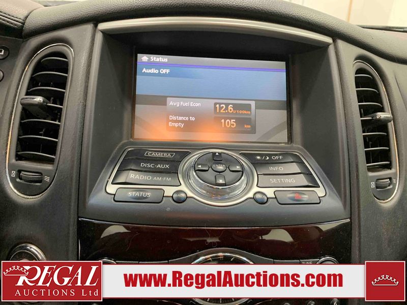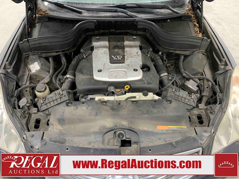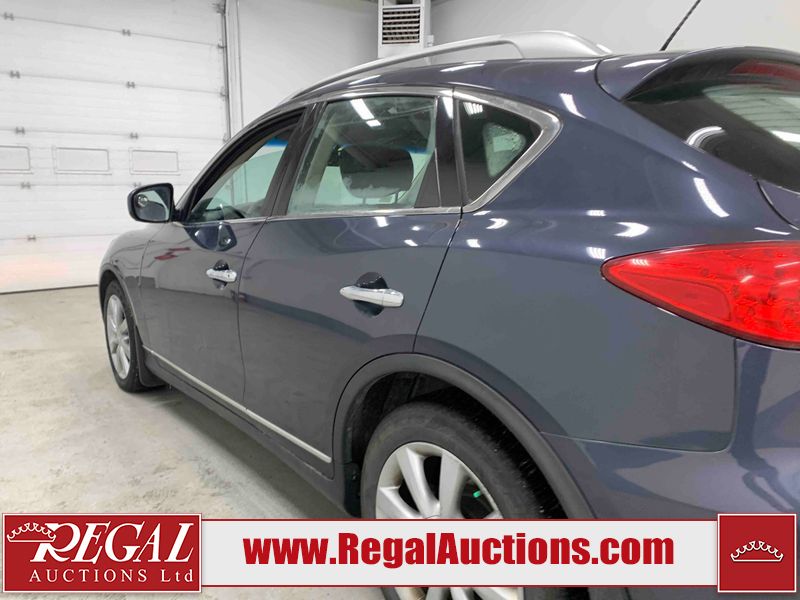 This 2010 INFINITI EX 4D UTILITY AWD is powered by a 3.50L 6CYL GAS 6 cylinder gasoline engine and an automatic transmission. It is equipped with four wheel drive. The SUV has seats for 5 people. The mileage is average considering the SUV's age. The vehicle has high value options including a sunroof, leather upholstery, power seats, heated seats, navigation, and a backup camera. The Tire Pressure and Stability Control lights are on. The body looks to be in rough condition overall. The front bumper is cracked. There are minor scratches on the front bumper, hood, left front fender, left front door, left rear fender, rear bumper, rear door, right rear fender, right rear door, and right front door. There are incidental chips on the front bumper, hood, left front door, rear bumper, rear door, and right rear fender. There is dent damage on the left front fender, right rear fender, right rear door, and right front fender. There are very minor chips in many areas around the body. There are very minor scratches in a few areas around the body. The interior looks to be in good condition overall. The dashboard, driver's seat, passenger seat, and rear seats are dirty. The carpet is dirty. The windshield looks to be in good condition. The passenger side rear tire is worn. All of the other tires have lots of tread remaining. This SUV is being sold by an automotive broker. The vehicle will be sold with the following declarations: Claims Total $10,000 - $14,999 (See Footnote 1), Footnotes: 1) The vehicle's total recorded insurance claims history is between $10,000 - $14,999. This is the amount of money that was paid out by an insurance company for repairs to cover claims against the vehicle's insurance policy. This information is provided by CarFax. 2) Out of province inspection for registering the vehicle in Alberta has been completed. Regal Auctions Ltd. makes no guarantee or warranty, either express or implied, with respect to the data provided in this report. The information has been provided from the consignor and from sources generally believed to be reliable, however the accuracy of this information cannot be guaranteed by Regal Auctions.