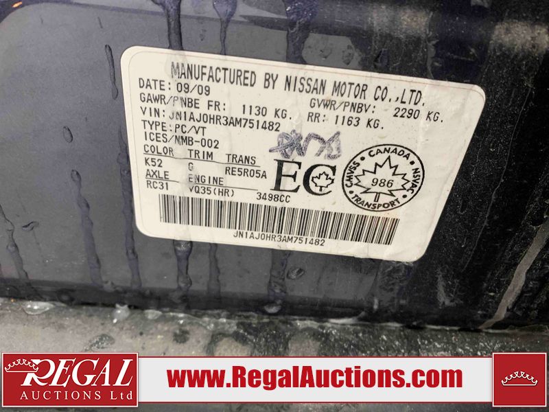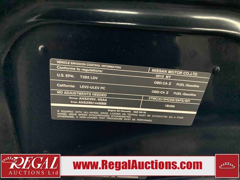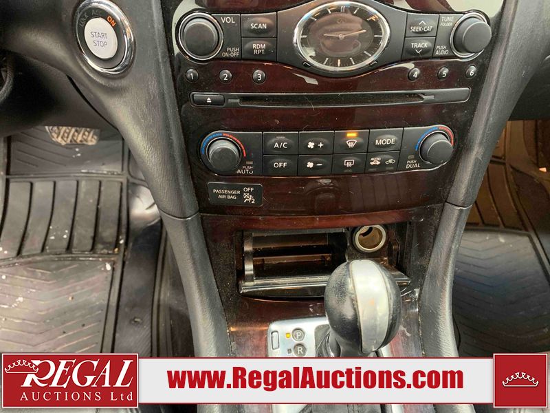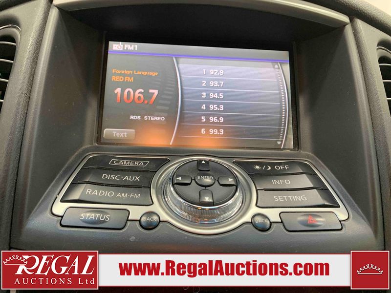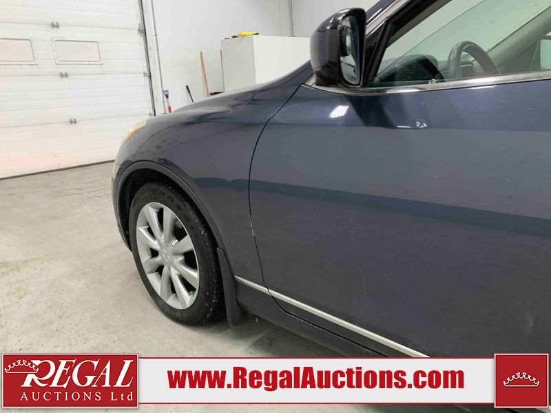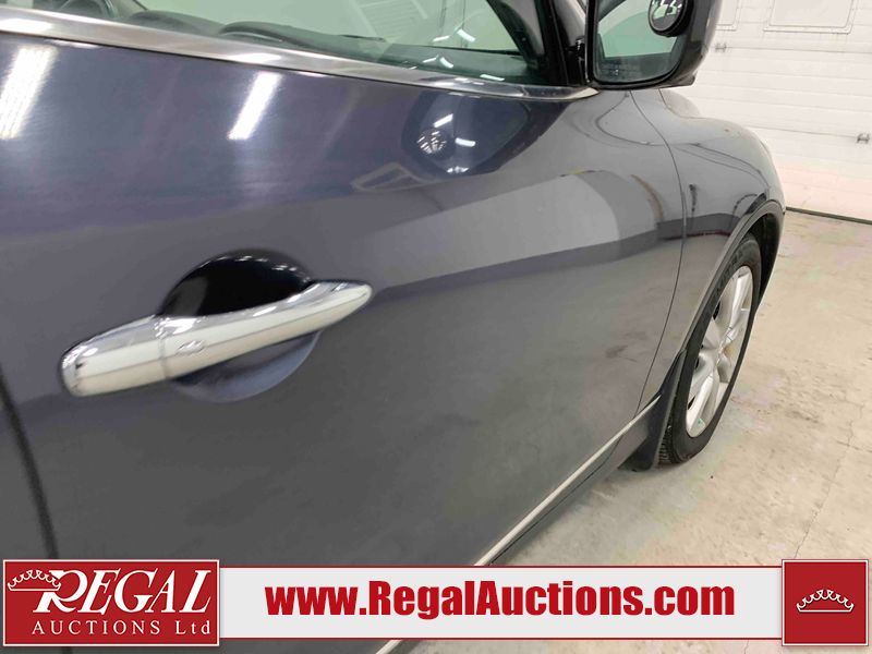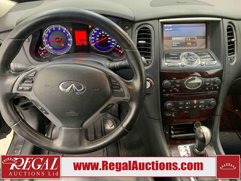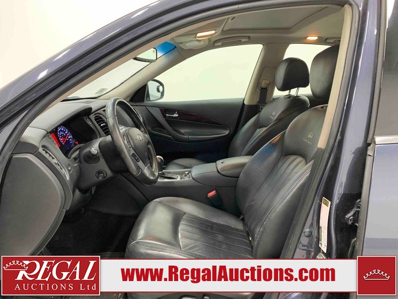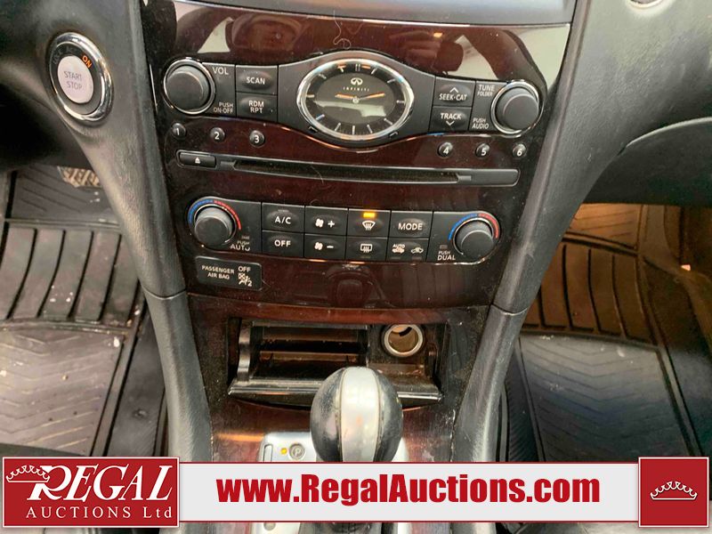This 2010 INFINITI EX 4D UTILITY AWD is powered by a 3.50L 6CYL GAS 6 cylinder gasoline engine and an automatic transmission. It is equipped with four wheel drive. The SUV has seats for 5 people. The mileage is average considering the SUV's age. The vehicle has high value options including a sunroof, leather upholstery, power seats, heated seats, navigation, and a backup camera. The Tire Pressure and Stability Control lights are on. The body looks to be in rough condition overall. The front bumper is cracked. There are minor scratches on the front bumper, hood, left front fender, left front door, left rear fender, rear bumper, rear door, right rear fender, right rear door, and right front door. There are incidental chips on the front bumper, hood, left front door, rear bumper, rear door, and right rear fender. There is dent damage on the left front fender, right rear fender, right rear door, and right front fender. There are very minor chips in many areas around the body. There are very minor scratches in a few areas around the body. The interior looks to be in good condition overall. The dashboard, driver's seat, passenger seat, and rear seats are dirty. The carpet is dirty. The windshield looks to be in good condition. The passenger side rear tire is worn. All of the other tires have lots of tread remaining. This SUV is being sold by an automotive broker. The vehicle will be sold with the following declarations: Claims Total $10,000 - $14,999 (See Footnote 1), Footnotes: 1) The vehicle's total recorded insurance claims history is between $10,000 - $14,999. This is the amount of money that was paid out by an insurance company for repairs to cover claims against the vehicle's insurance policy. This information is provided by CarFax. 2) Out of province inspection for registering the vehicle in Alberta has been completed. Regal Auctions Ltd. makes no guarantee or warranty, either express or implied, with respect to the data provided in this report. The information has been provided from the consignor and from sources generally believed to be reliable, however the accuracy of this information cannot be guaranteed by Regal Auctions.